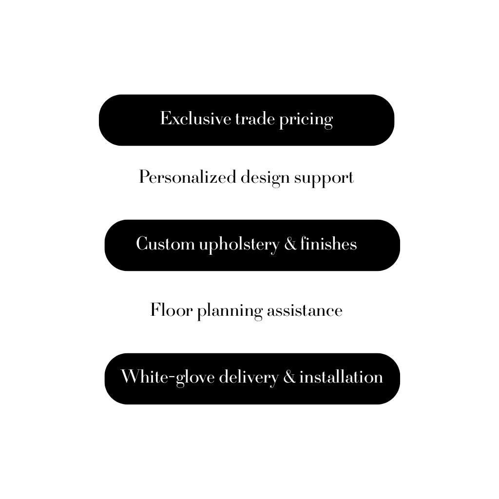 Our exclusive trade program offers architects, interior designers, and builders access to: