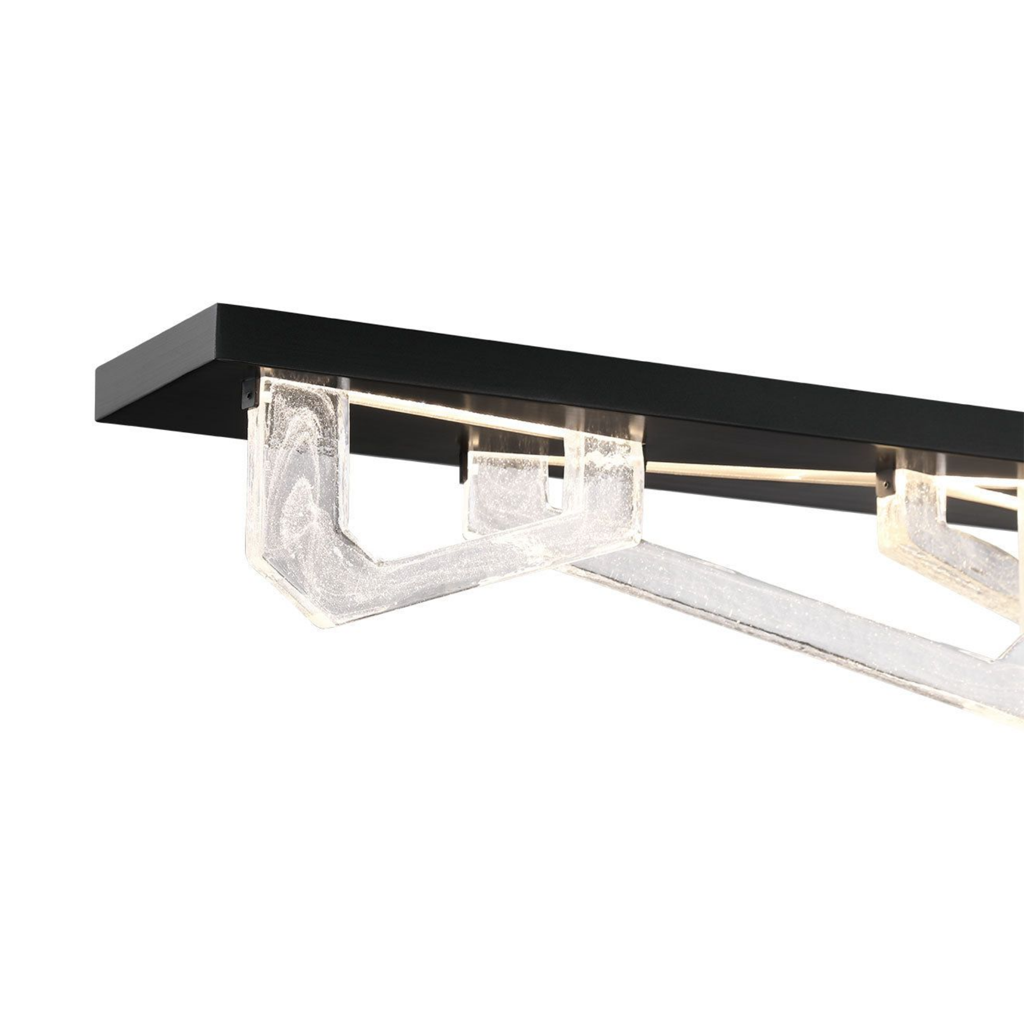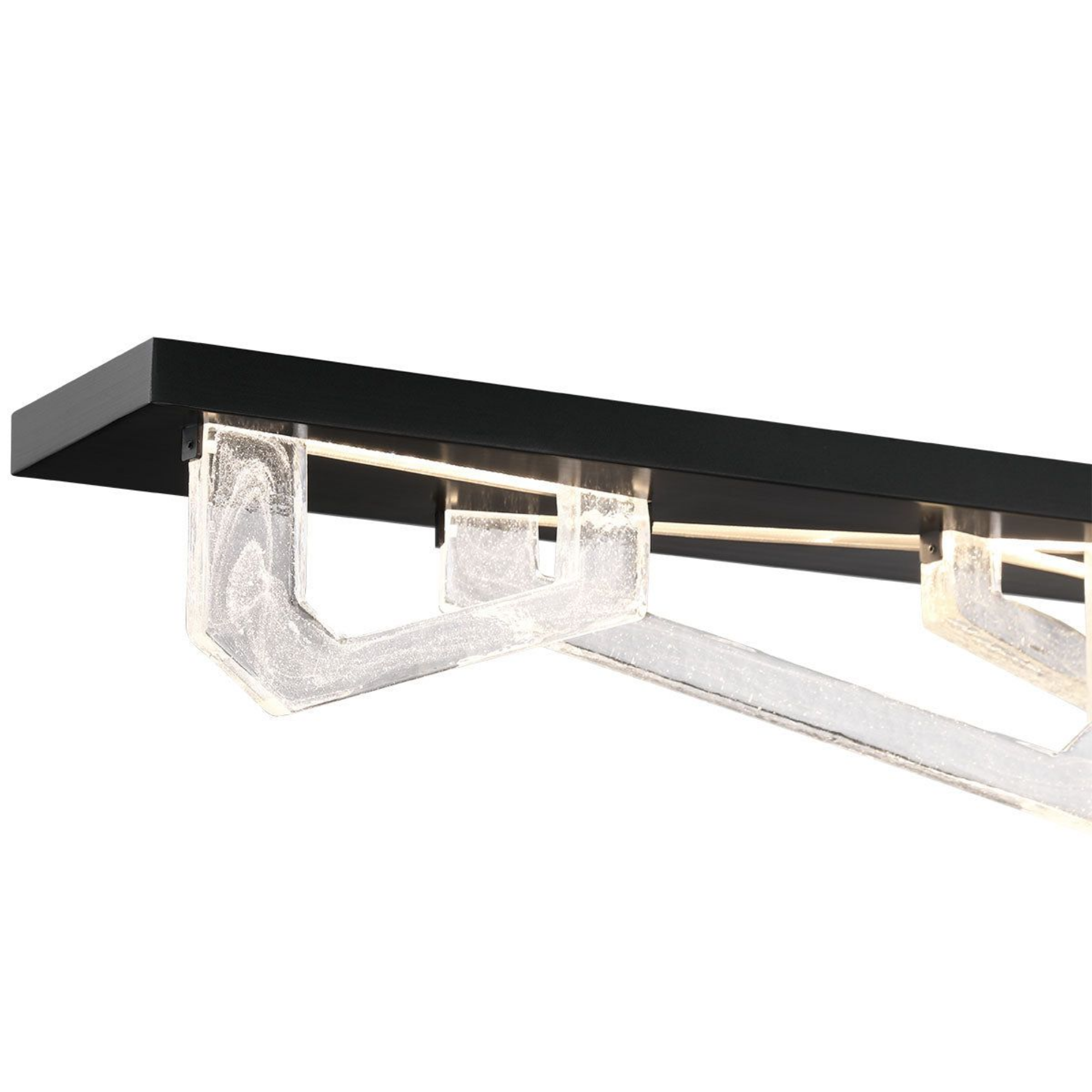 La lumière émise par le cadre supérieur met subtilement en valeur les éléments en verre fabriqués à la main.