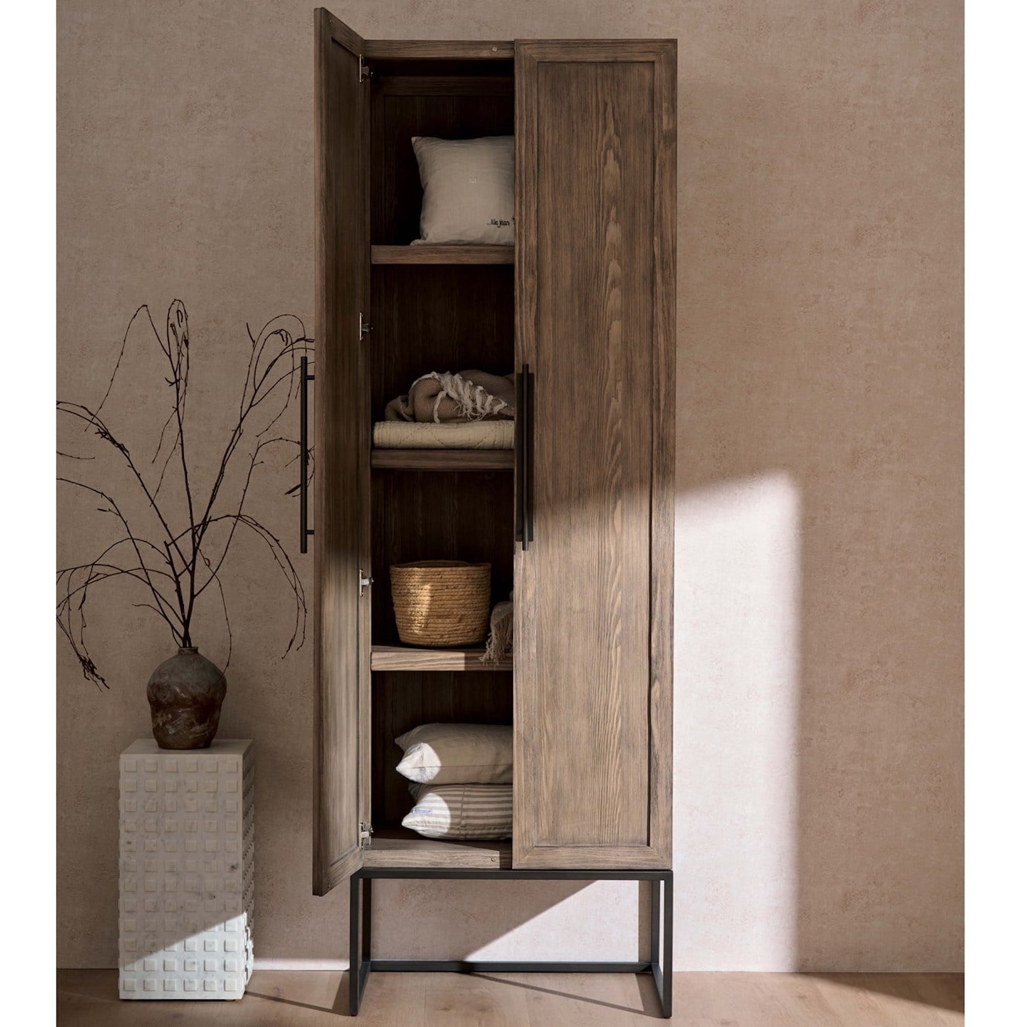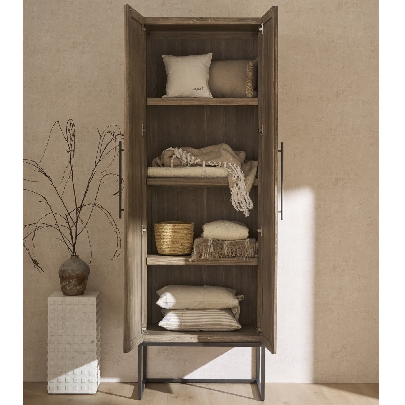 Présentant une finition chaude en brun moyen de Boulder, l’armoire utilitaire apporte un rangement raffiné à n’importe quelle pièce. Sa base métallique élégante surplombe des étagères en bois réglables, accentuées par un verre encastré, offrant un mélange de design moderne et d’affichage pratique. Cette pièce ajoute une touche de sophistication architecturale, ce qui en fait un ajout polyvalent et élégant à votre maison.