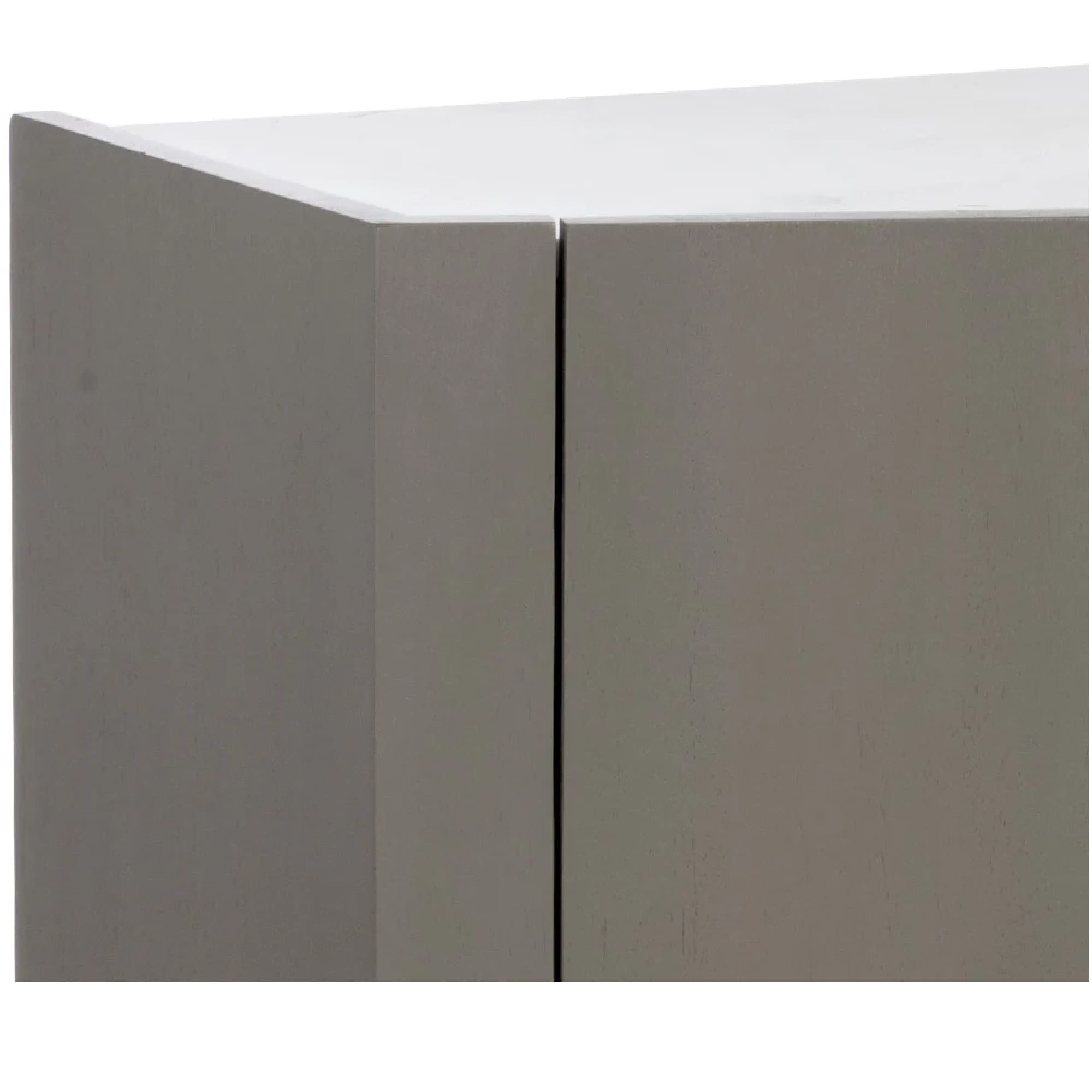 Fabriqué avec un cadre en bois de manguier massif gris et un dessus en marbre blanc.