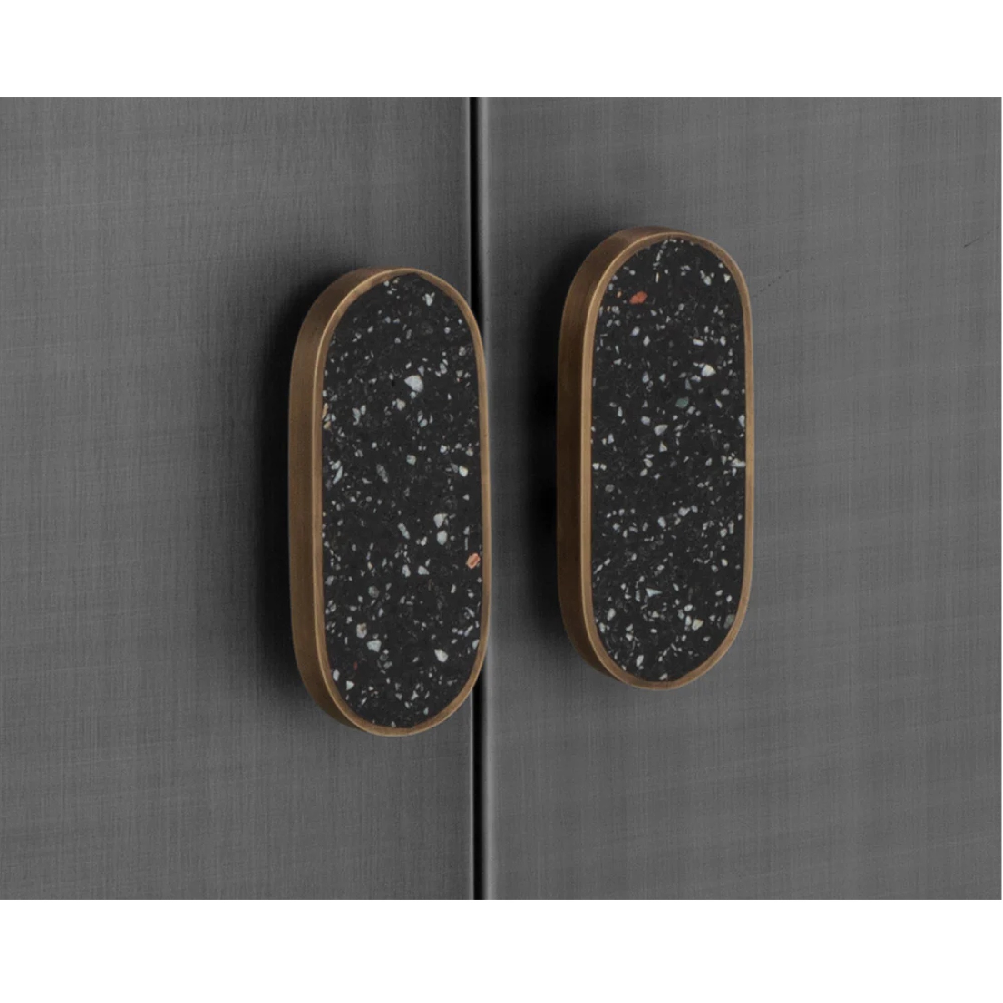 Doté d’un cadre revêtu de poudre noire et de poignées en marbre terrazzo noir