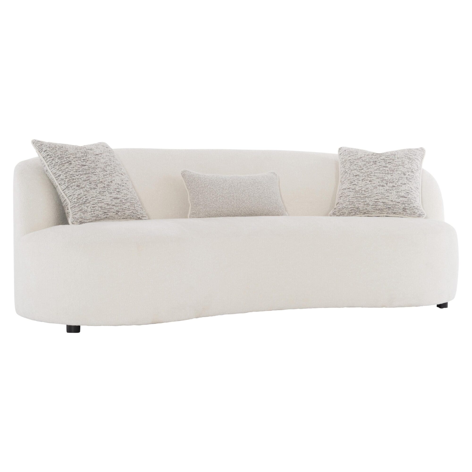 Le canapé Elle s’inspire d’un design classique en forme de rein, avec un dossier large qui crée une sensation de confort et d’abri. Montré dans le tissu 1273-002, il est disponible dans une sélection de tissus, avec l’option de trois coussins coordonnés.