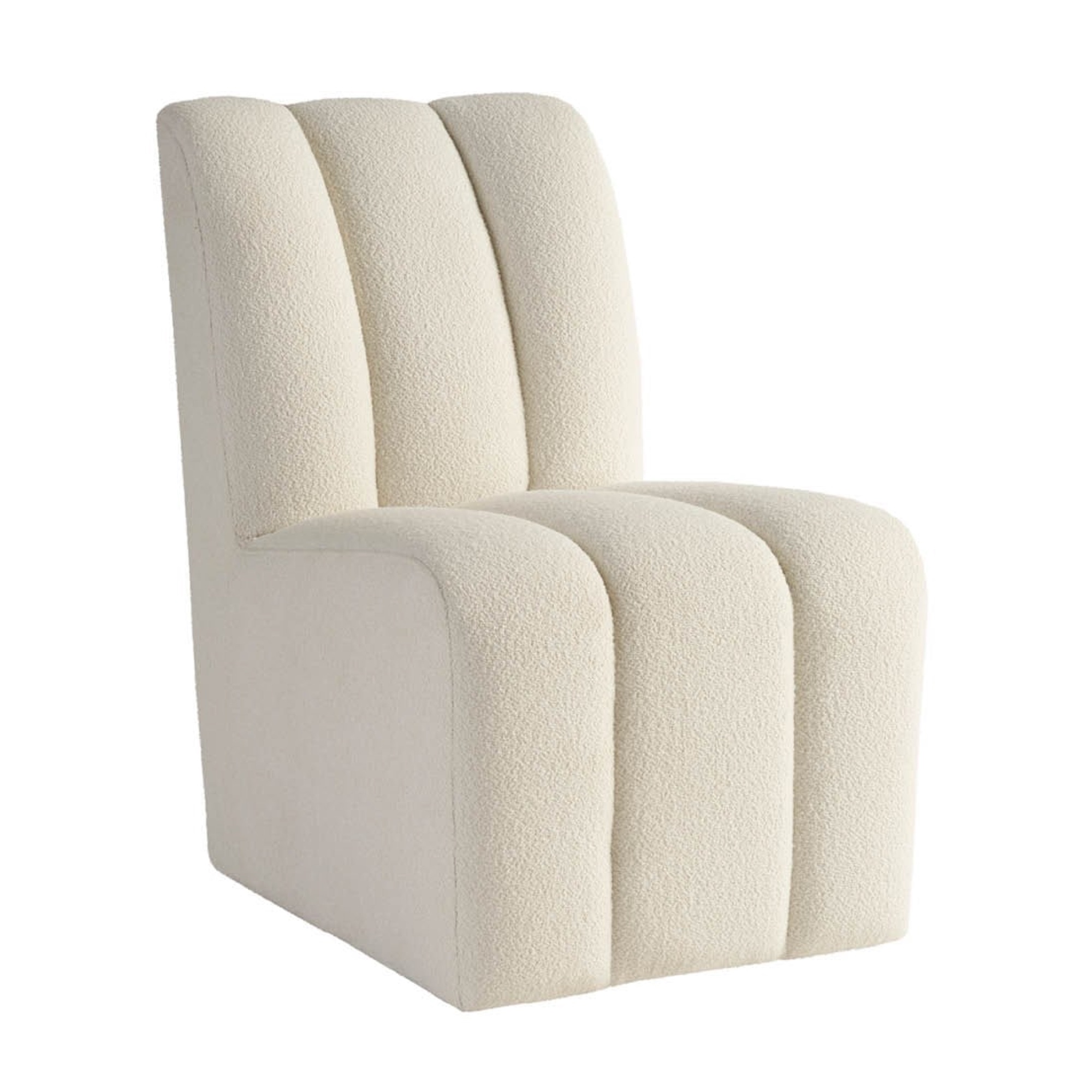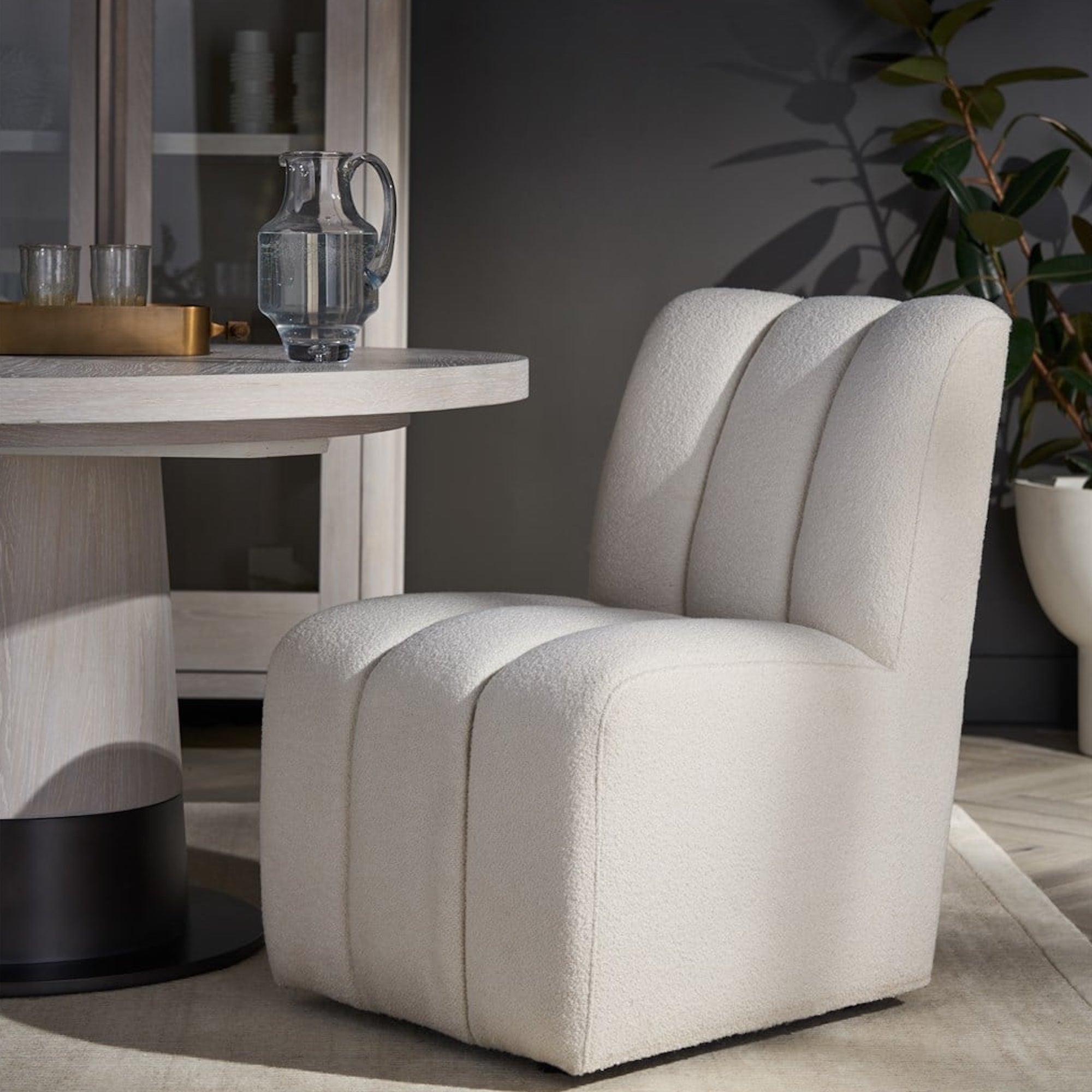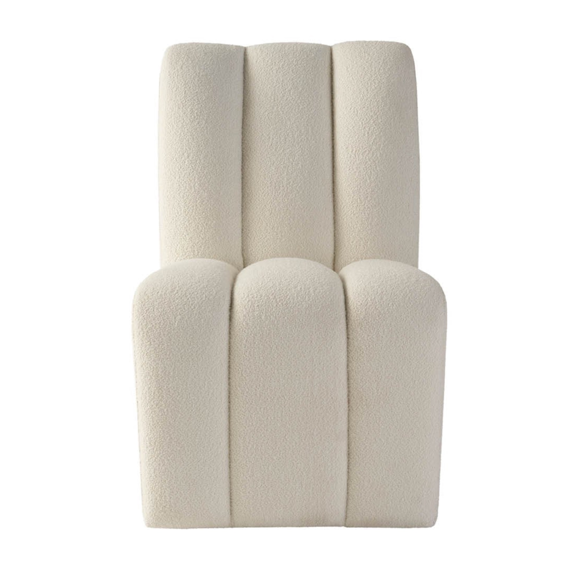 La chaise Kylo Side Chair offre une réinterprétation audacieuse du luxe contemporain, avec une assise au capitonnage prononcé qui crée une riche tapisserie de crêtes profondes et un confort somptueux. Revêtu du tissu sophistiqué Canberra Ivory, le design de la chaise est accentué par trois sections verticales élégamment rembourrées, chacune contribuant à son allure visuelle. Montée sur des roulettes élégantes, elle allie une mobilité sans effort à une esthétique moderne et raffinée.