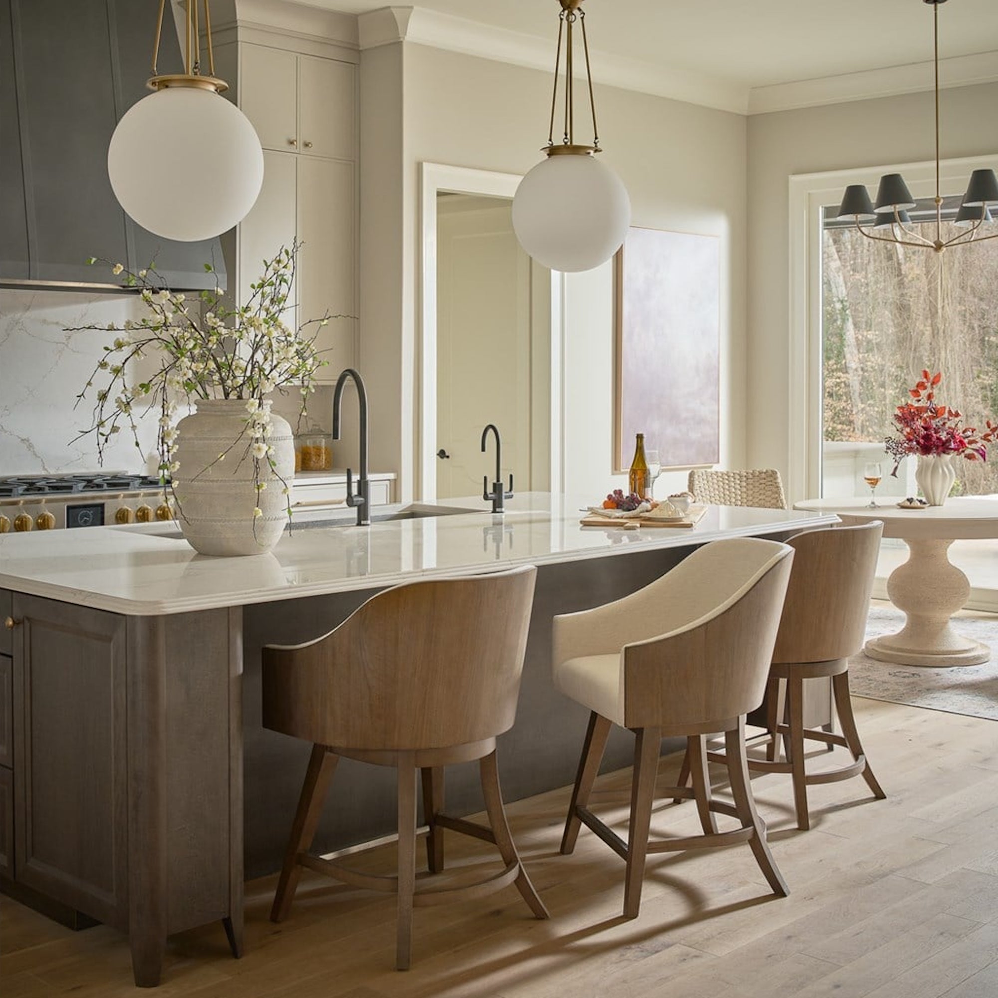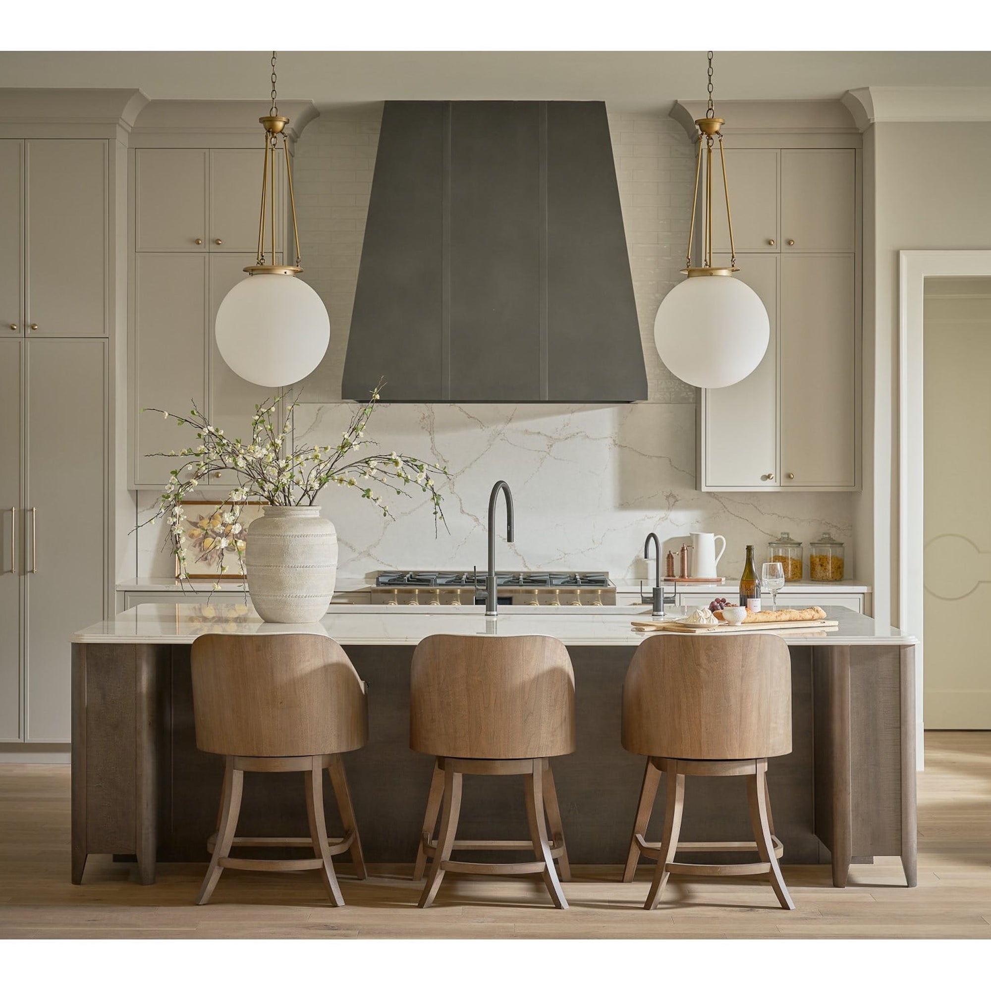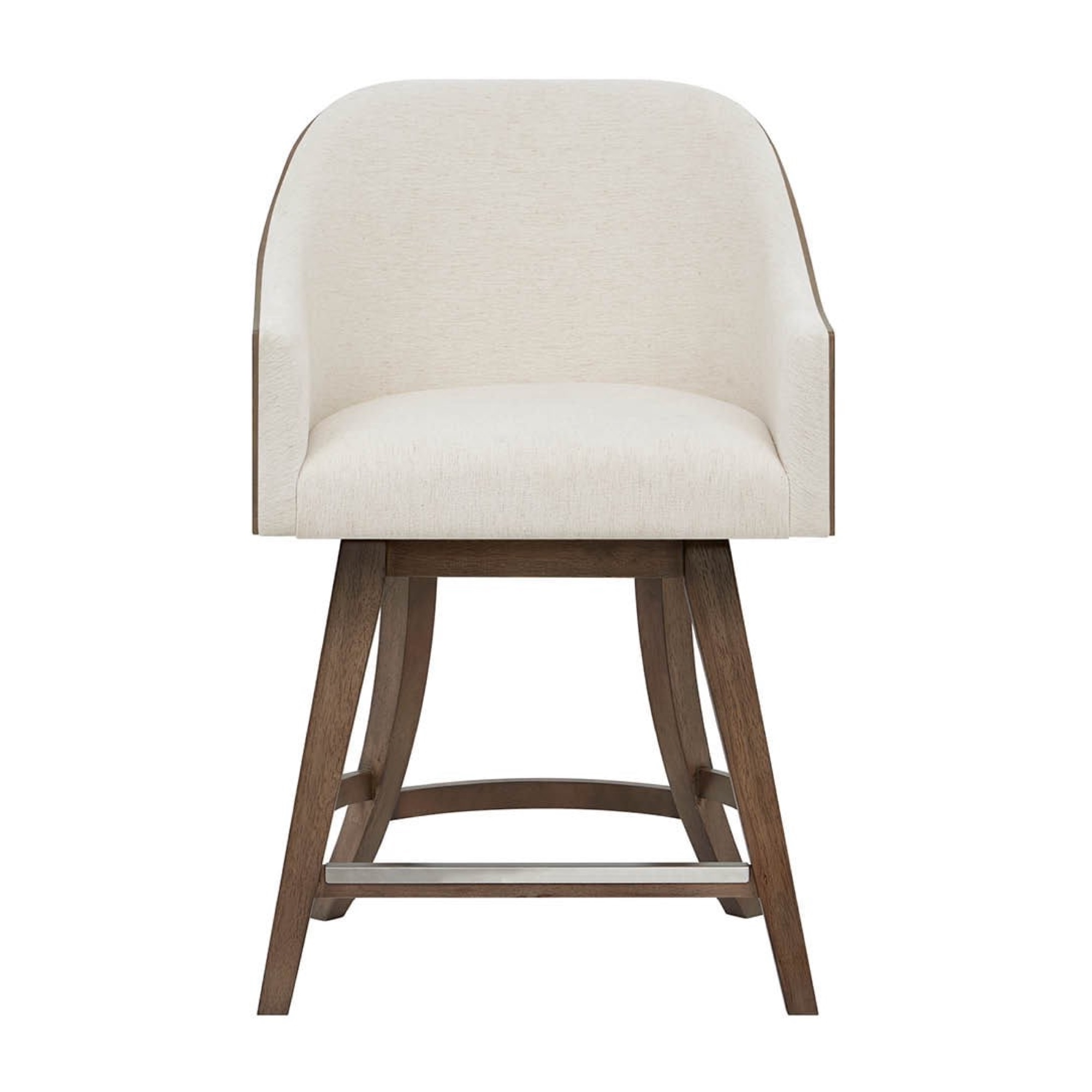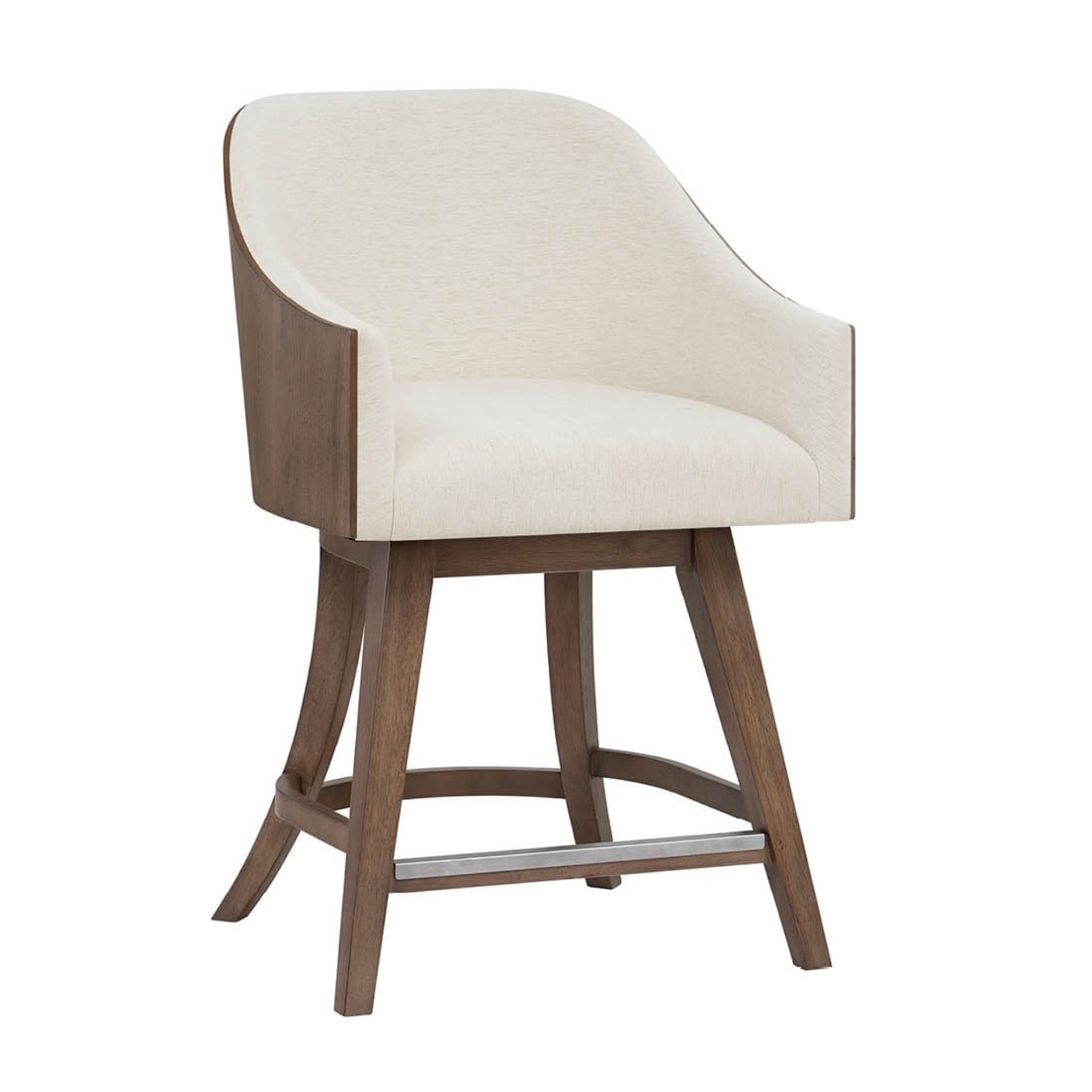 La chaise de comptoir pivotante Haze est dotée d’un cadre en bois sculpté dans un riche noyer Haze et d’une assise et d’un dossier rembourrés dans un doux tissu Levi Oyster. Cette chaise offre un mouvement fonctionnel et un confort élégant pour une salle à manger ou un comptoir.
