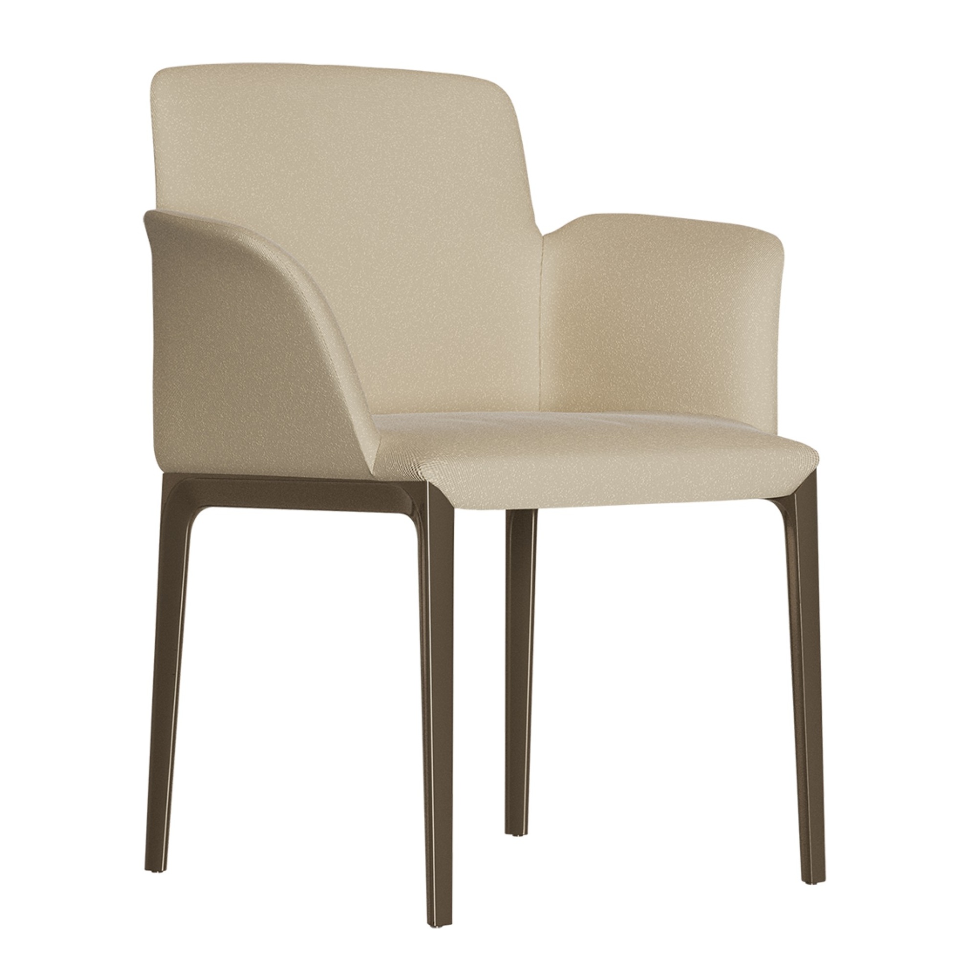 Disponible dans différents tissus ou cuirs, avec des pieds en métal dans différentes finitions, avec ou sans accoudoirs.
