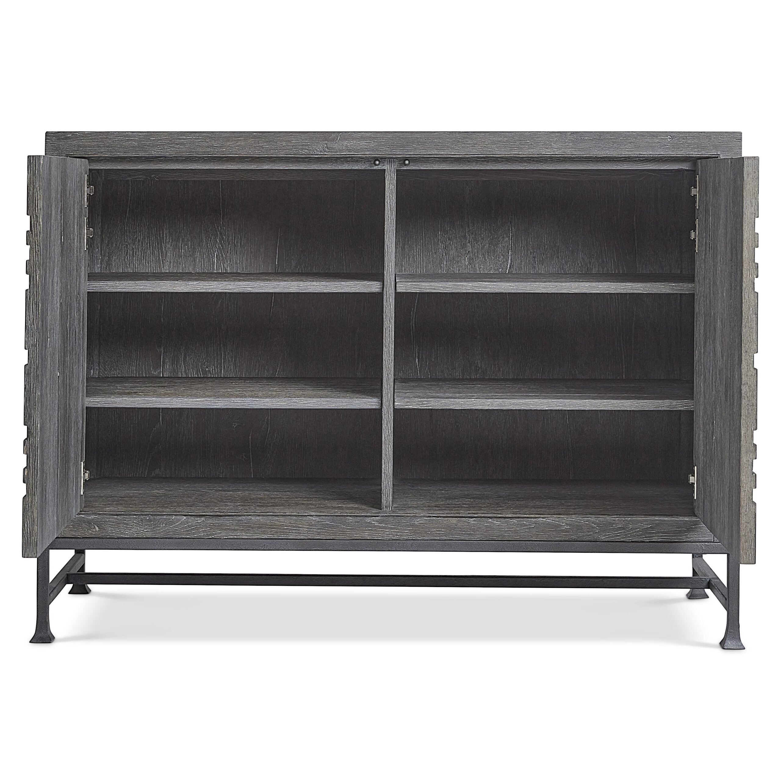 Caractéristiques de l’armoire à portes Tribeca:Bois massif et placage de chêne blanc au fini Tadon sur la caisse et base en acier texturé au fini Barlow