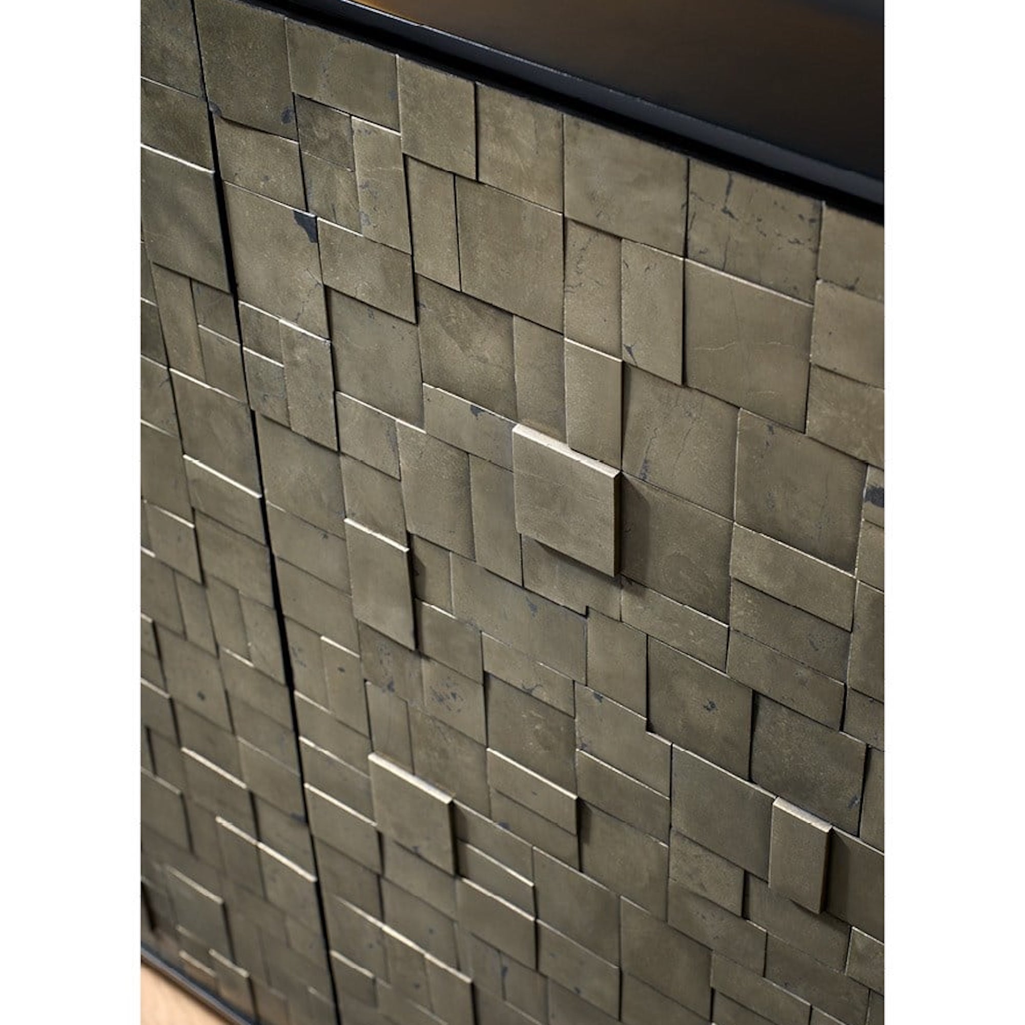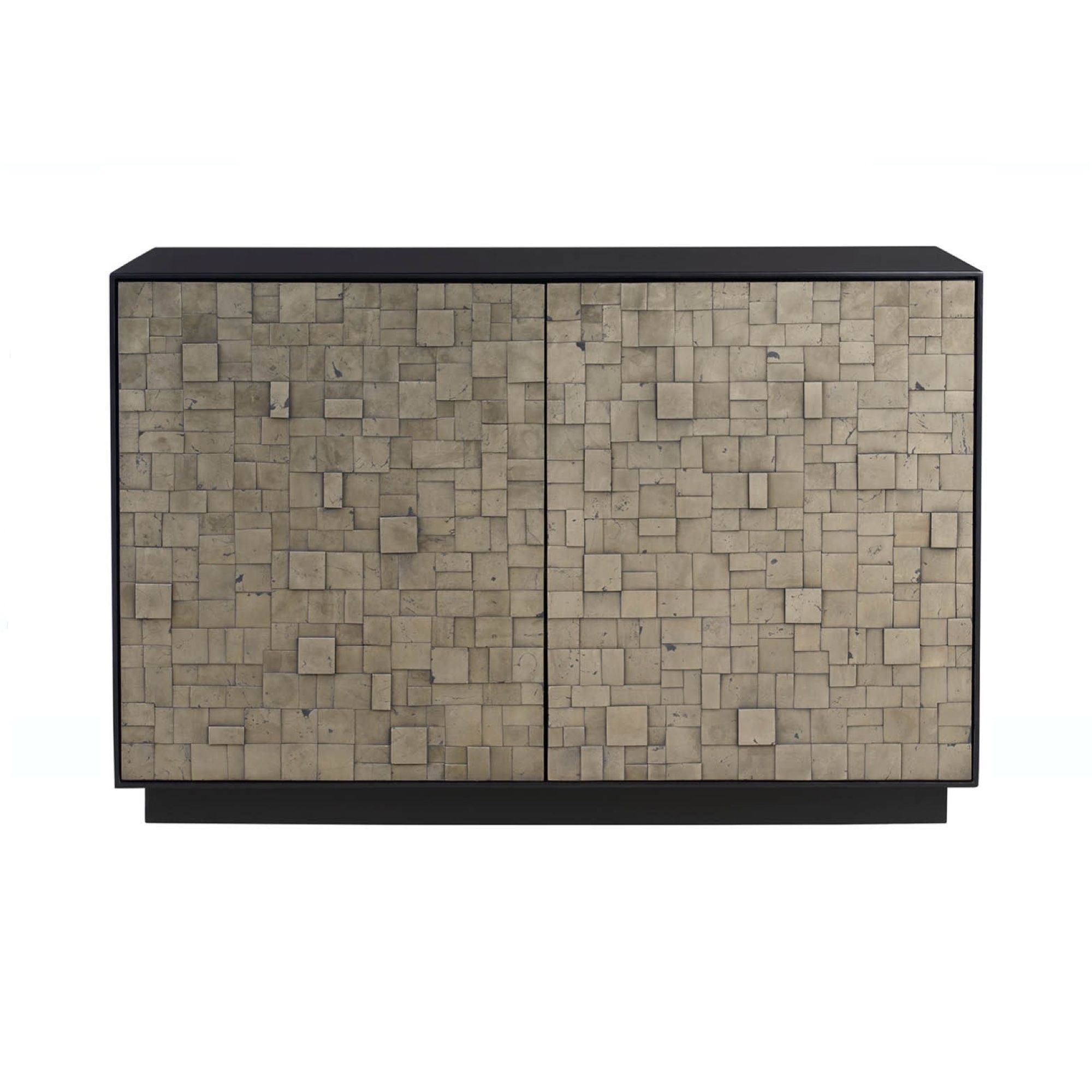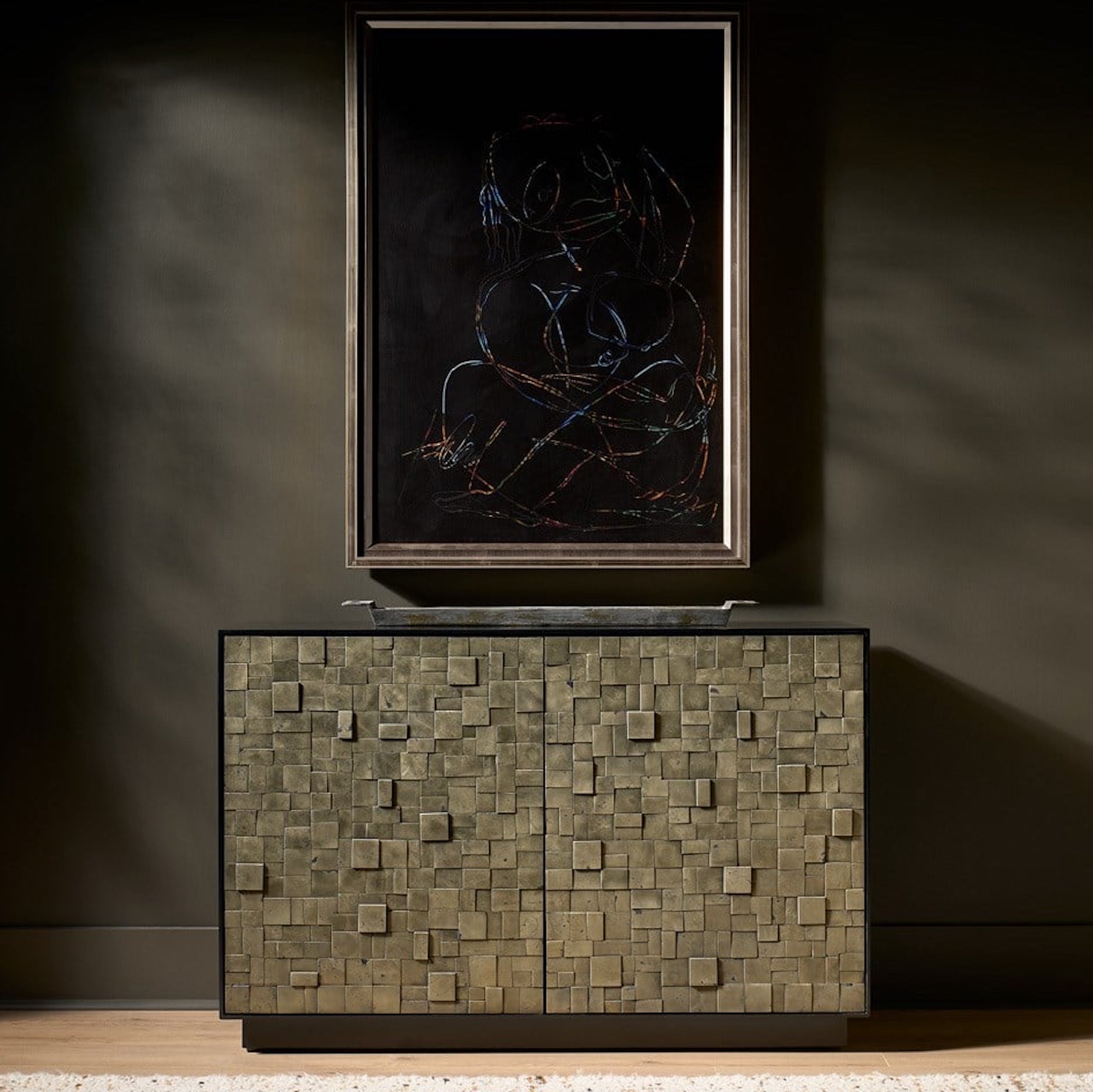 La commode Cosmo est une commode spectaculaire à deux portes dont le corps et les portes sont peints en noir mat et recouverts d’une texture de pyrite scintillante. Le coffre Cosmo comporte des découpes pour la gestion des câbles, ce qui en fait une pièce fonctionnelle pour le rangement des médias.
