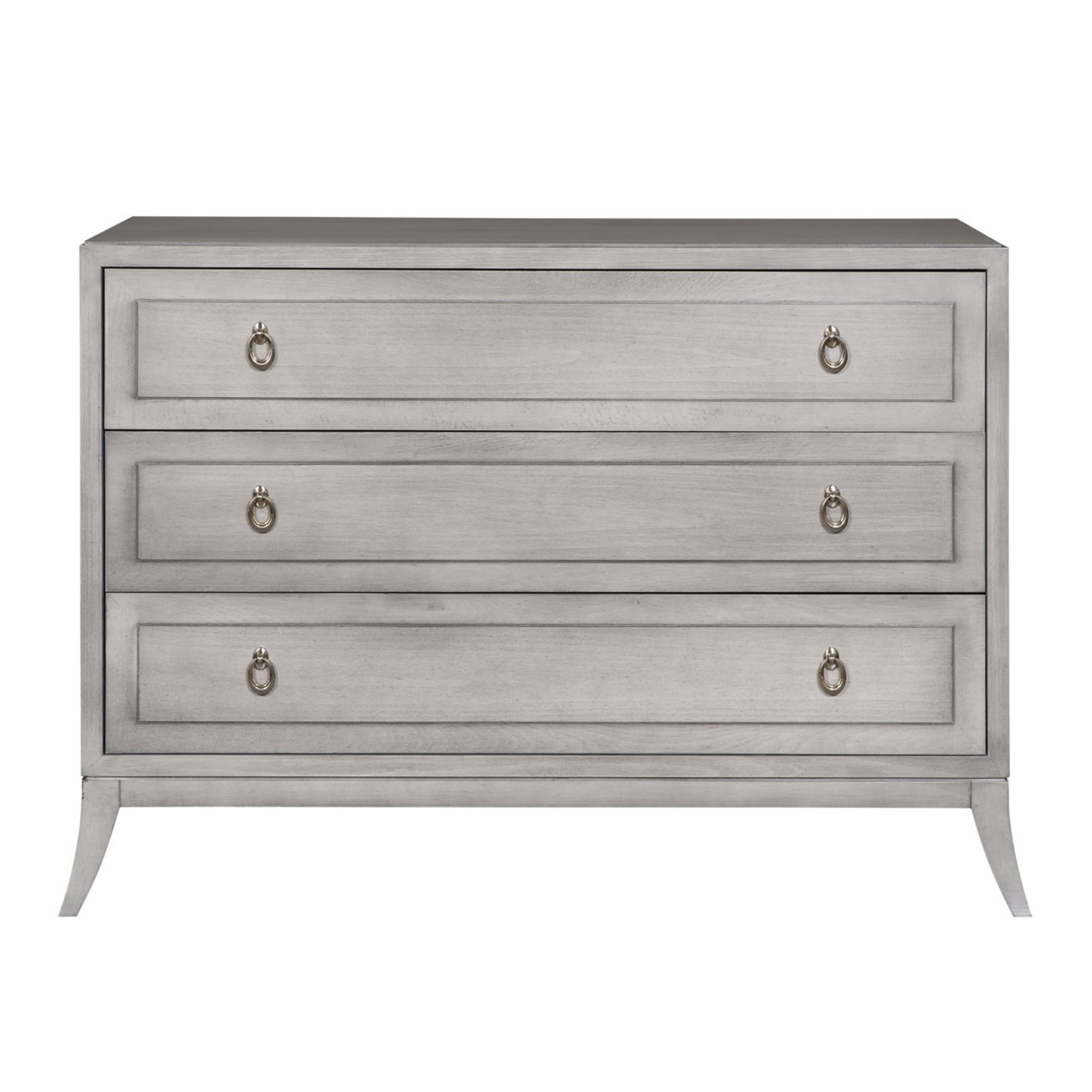 Options de finition disponibles. Tel qu’illustré en – Finition – Blanc pur. Pieds en console, face en tissu gazon, poignées Midas de qualité supérieure en nickel brossé (supplément de prix) / une centrée sur chaque tiroir.