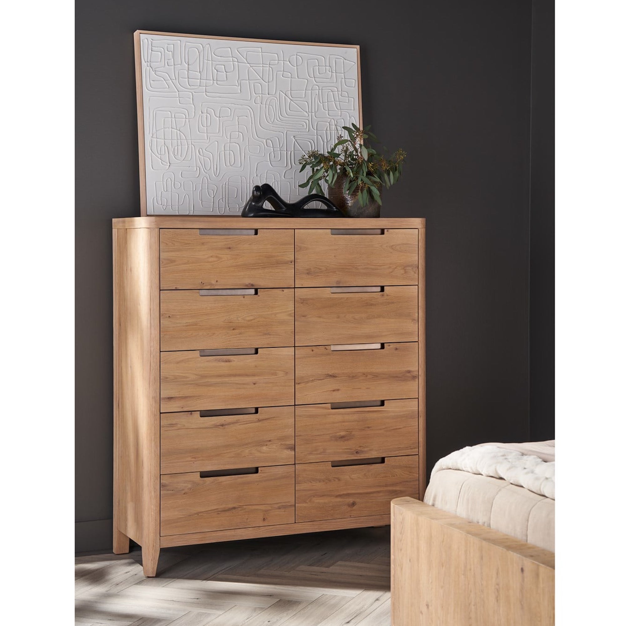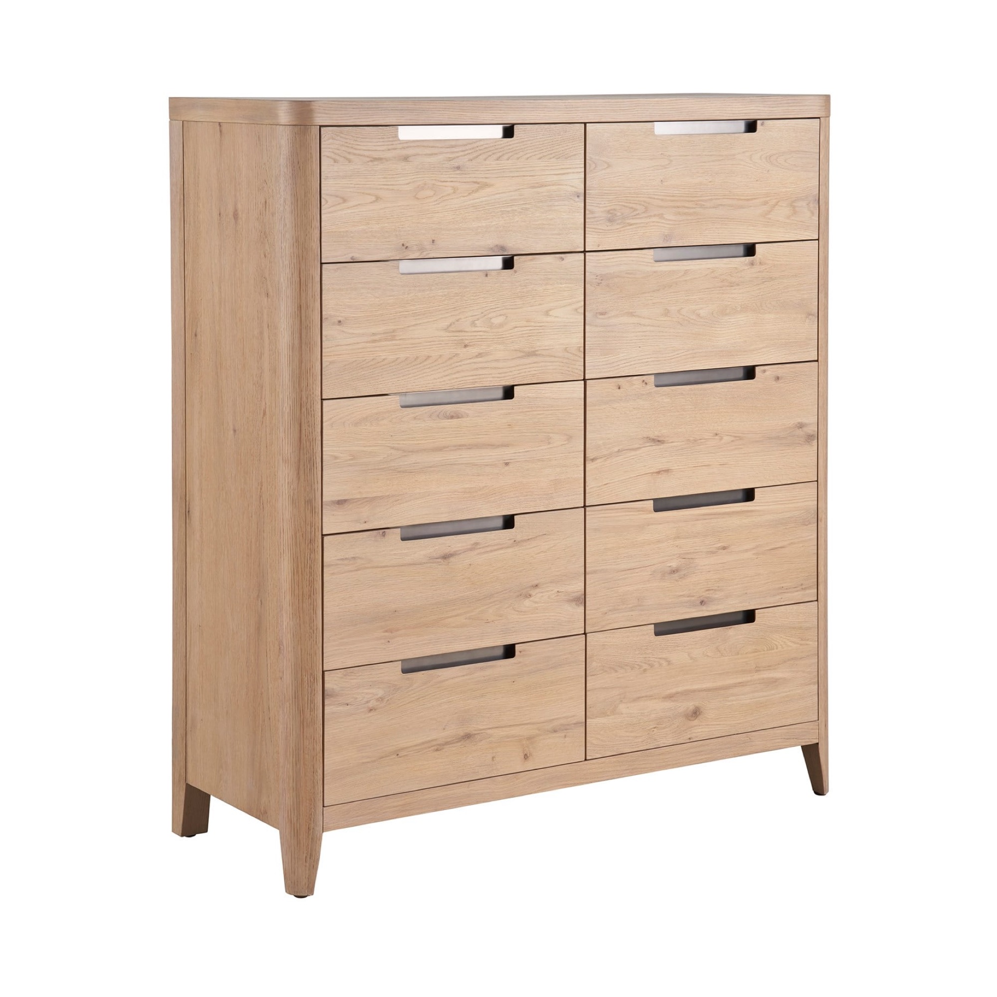 La commode Walker, avec ses dix tiroirs, présente une interprétation moderne de la symétrie et de l’équilibre. Revêtue d’une finition organique en chêne naturel et agrémentée de poignées élégantes aux tons foncés, cette pièce incarne une esthétique à la fois raffinée et contemporaine. Ses lignes épurées et son design minimaliste confèrent une ambiance majestueuse et moderne à tout intérieur et s’intègrent parfaitement à une décoration d’avant-garde.