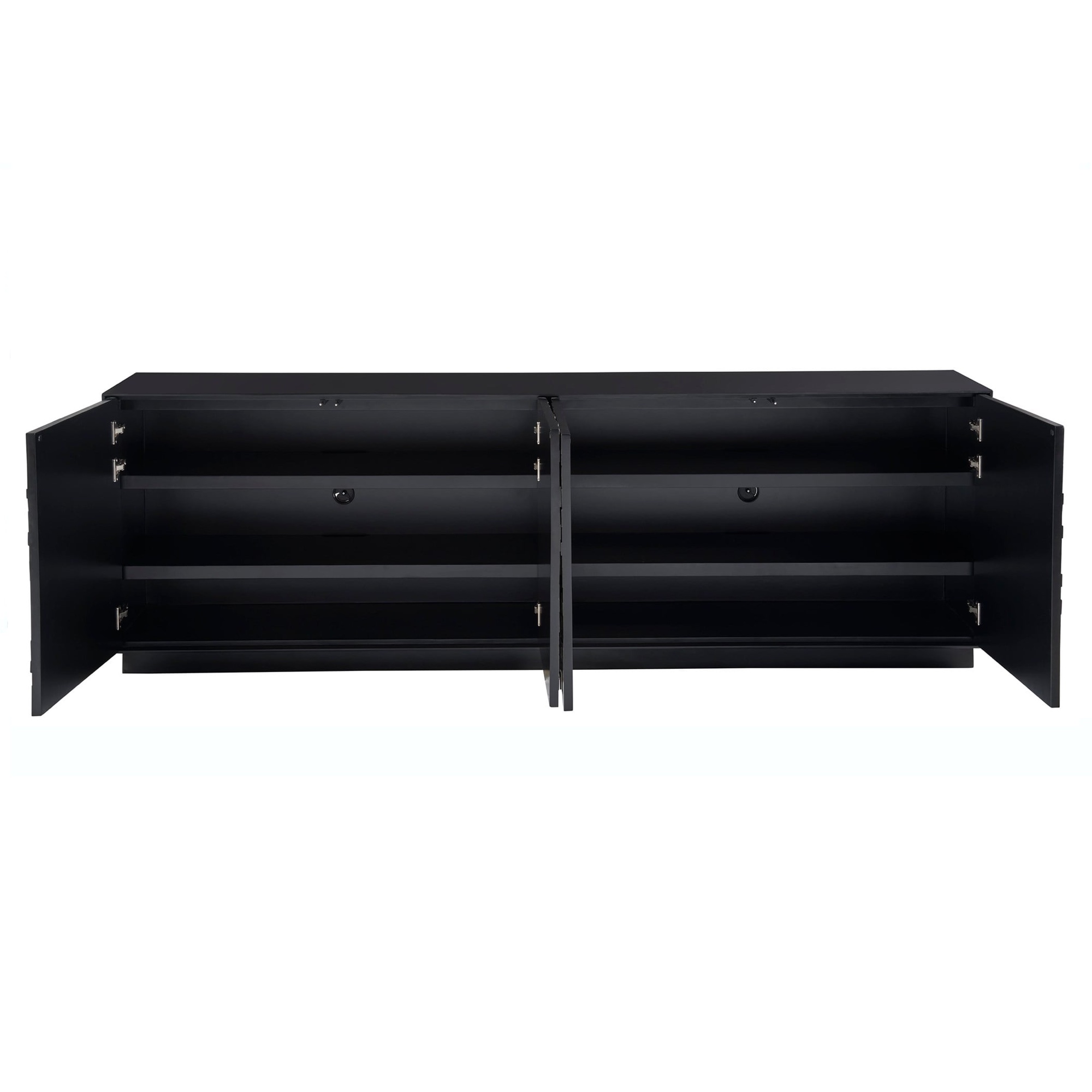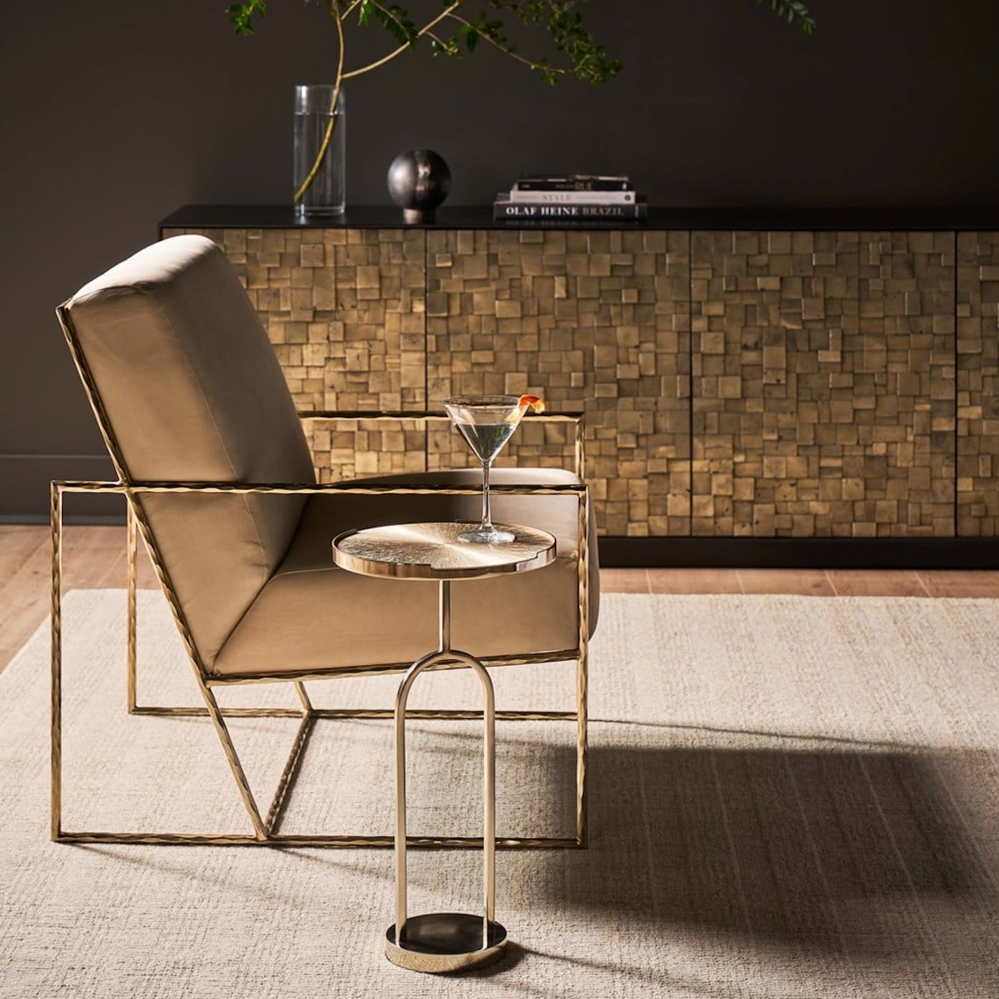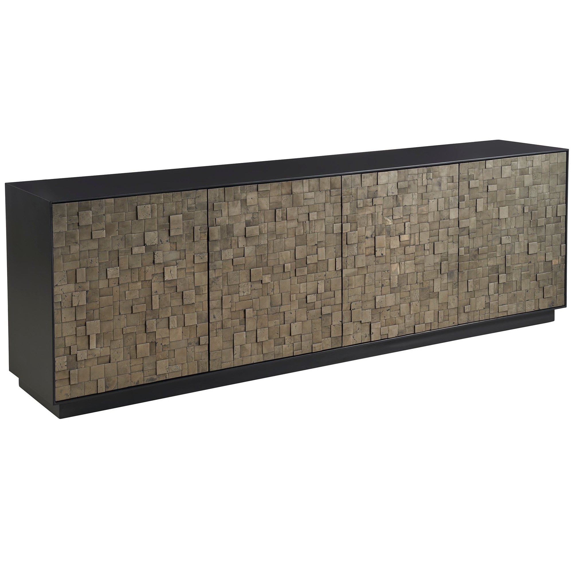 La crédence Cosmo, fabriquée en pyrite et finie en noir mat, présente une façade frappante avec ses quatre portes, rappelant une mosaïque sophistiquée. Cette pièce dégage de l’assurance grâce à ses teintes audacieuses et à sa silhouette définie, ce qui en fait une déclaration d’art et d’élégance dans tous les espaces qu’elle orne.