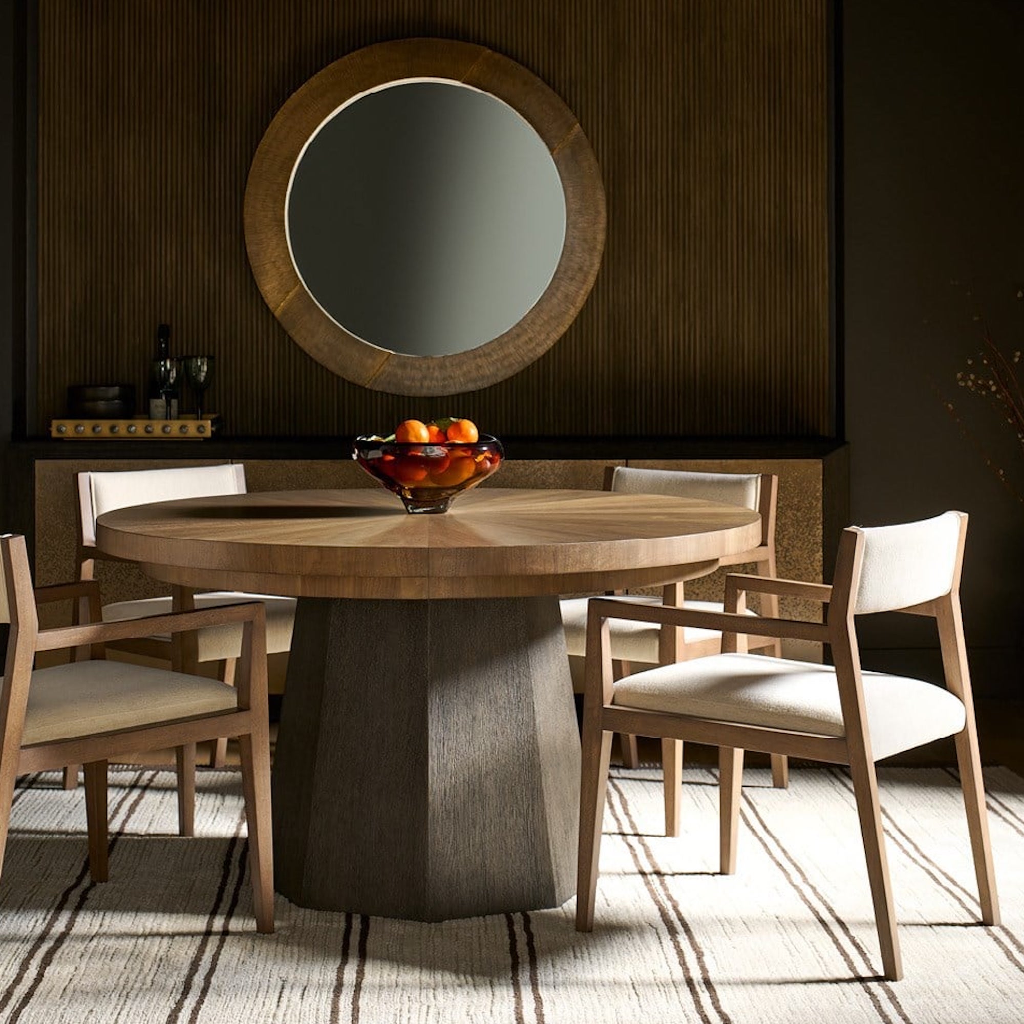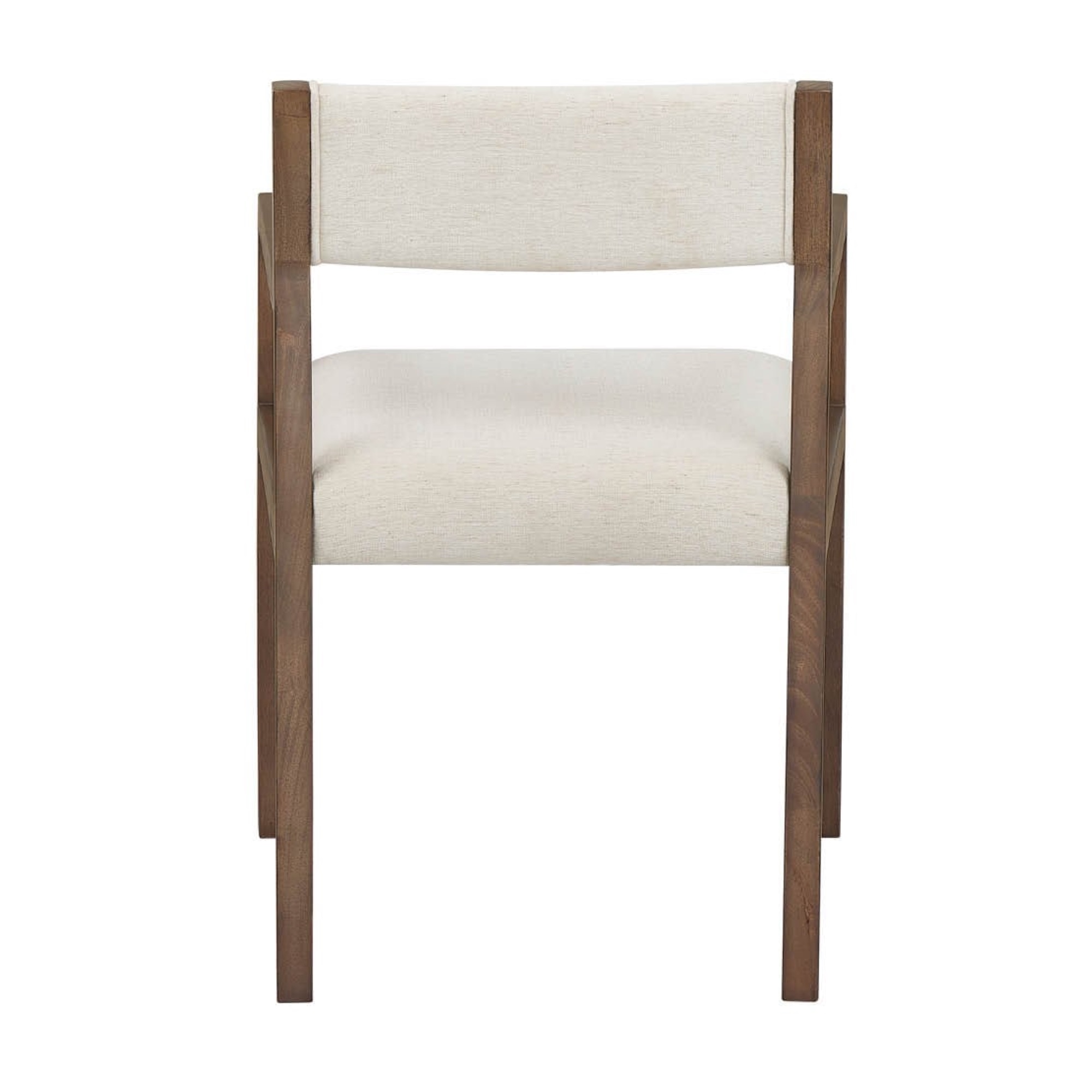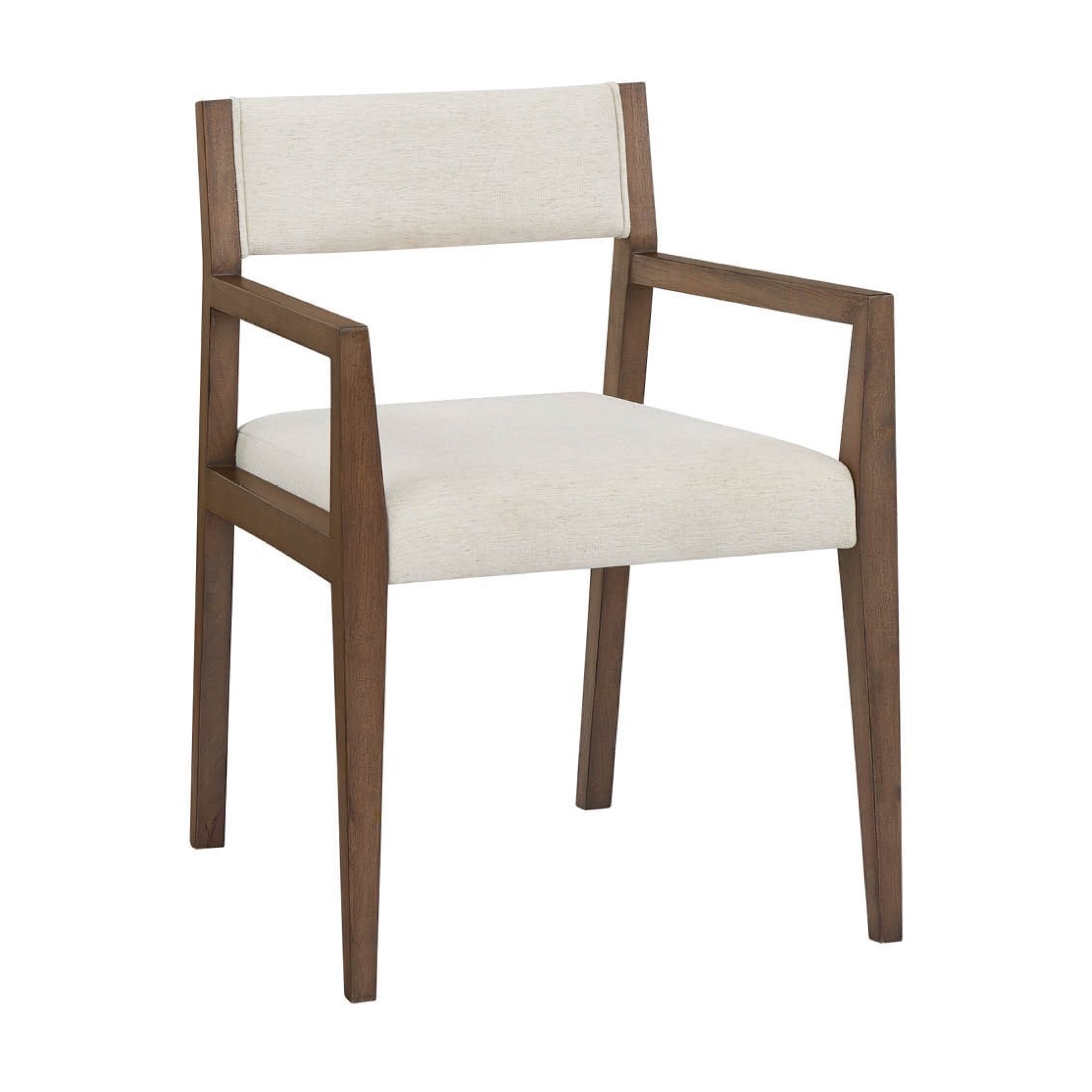 La chaise à accoudoir Haze est une élégante chaise de salle à manger à structure en bois, en noyer Haze, avec une assise confortablement rembourrée en tissu Levi Oyster. Ses lignes simples et architecturales et sa finition élégante font de la chaise Haze un complément raffiné à toute table de salle à manger.