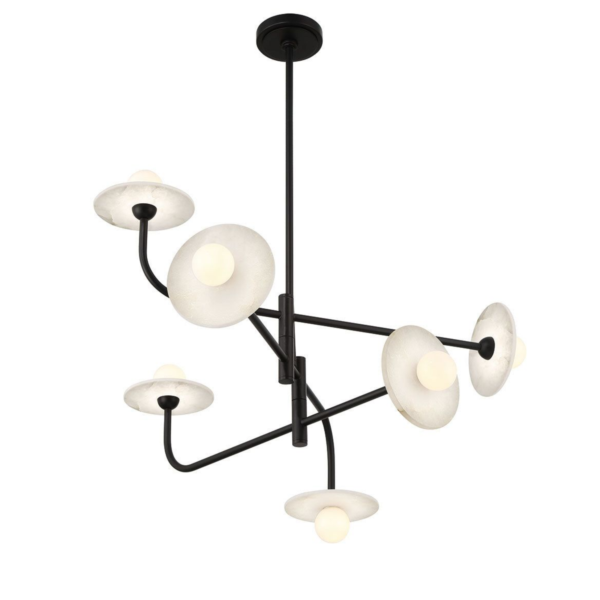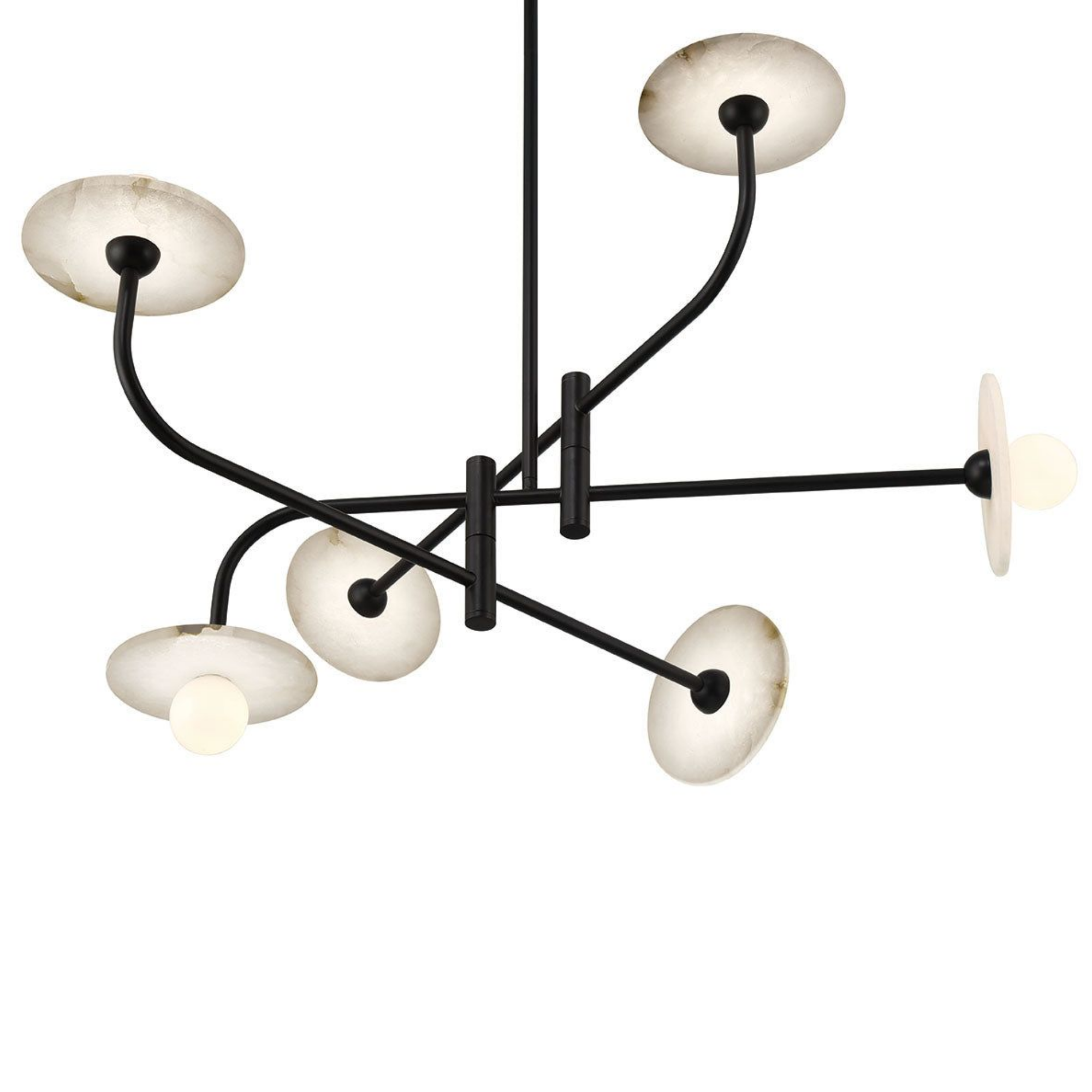 La pierre d’albâtre naturelle ajoute un élément d’une incroyable beauté à ce luminaire.