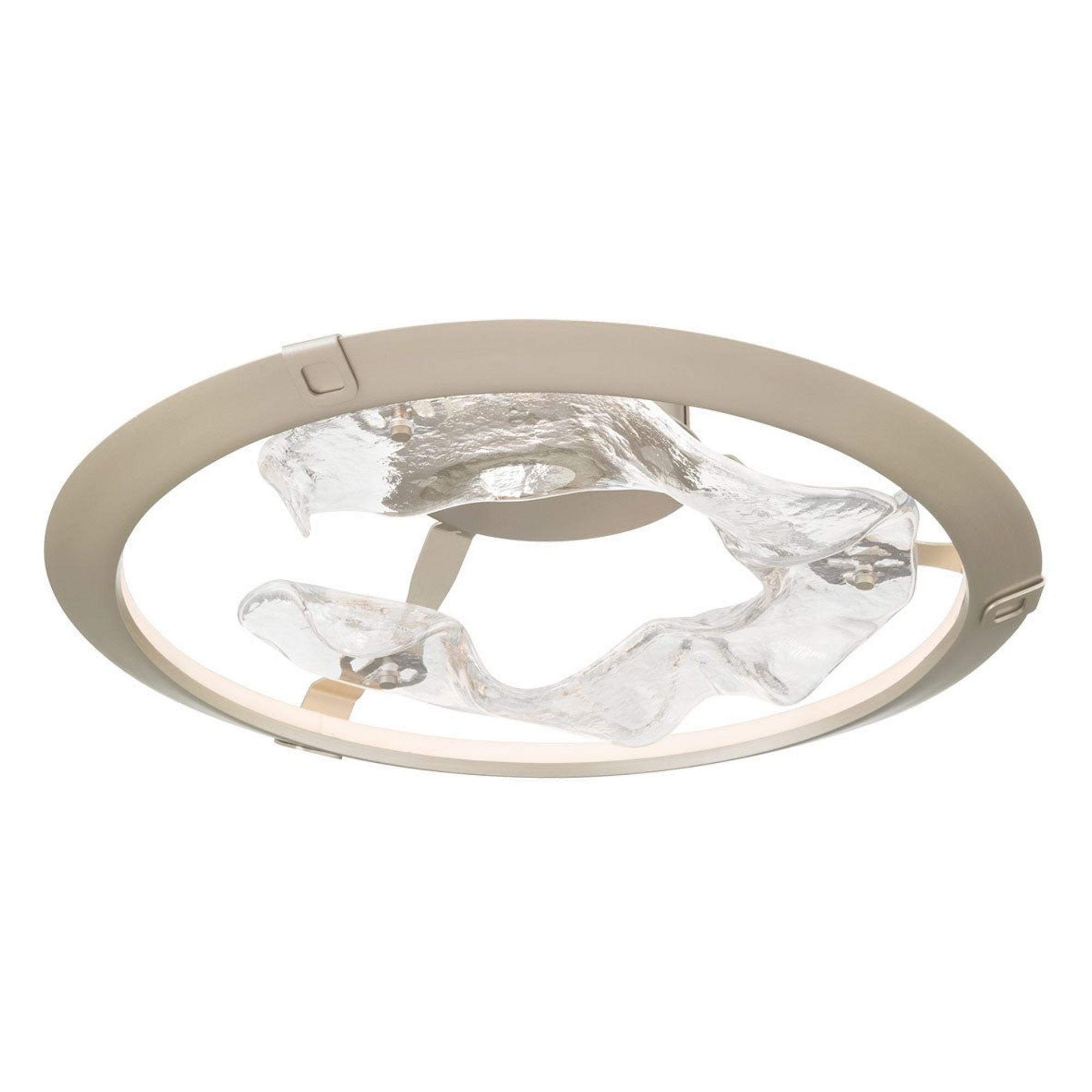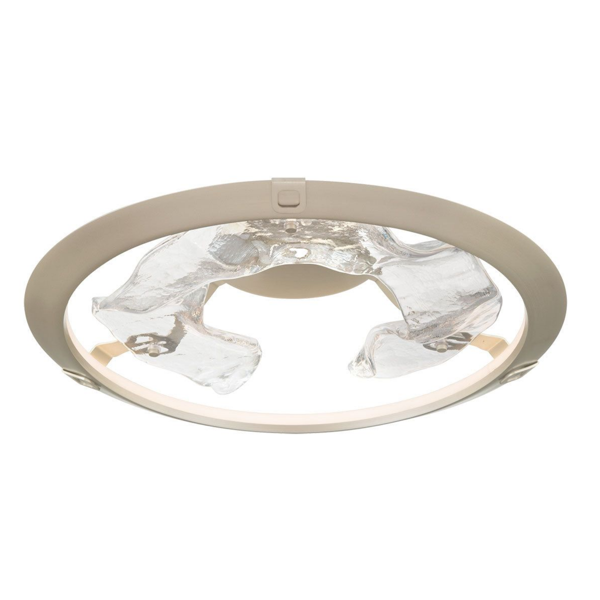 Lumière rayonnante émanant de l’intérieur d’un anneau « panier » en métal d’inspiration moderne.