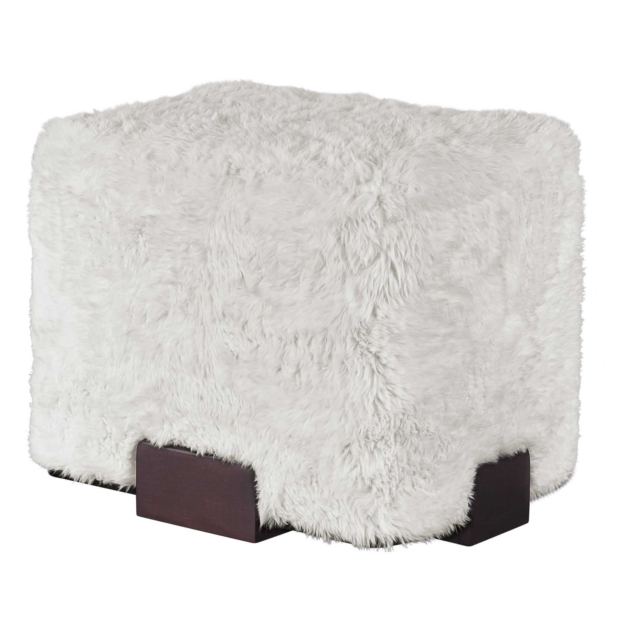 Faites une déclaration subtile avec cet ottoman super doux, recouvert de tissu Yakety Yak et accentué par une finition en noyer foncé.