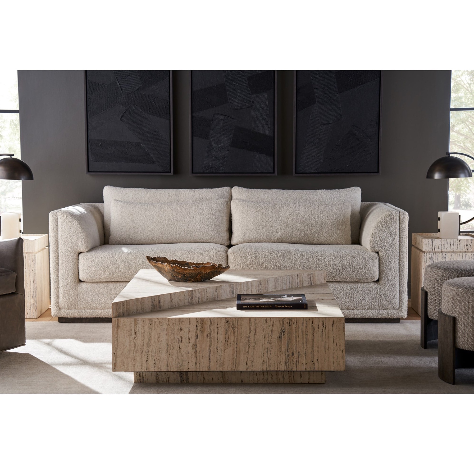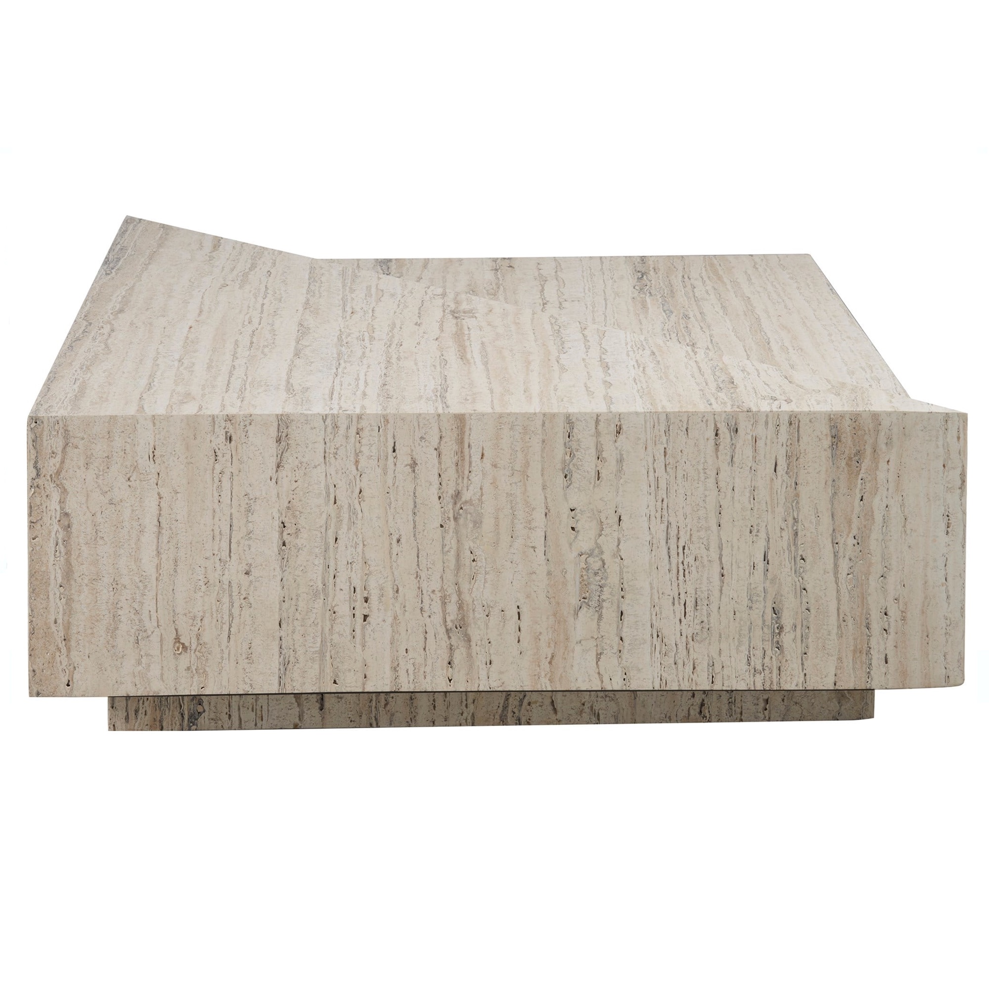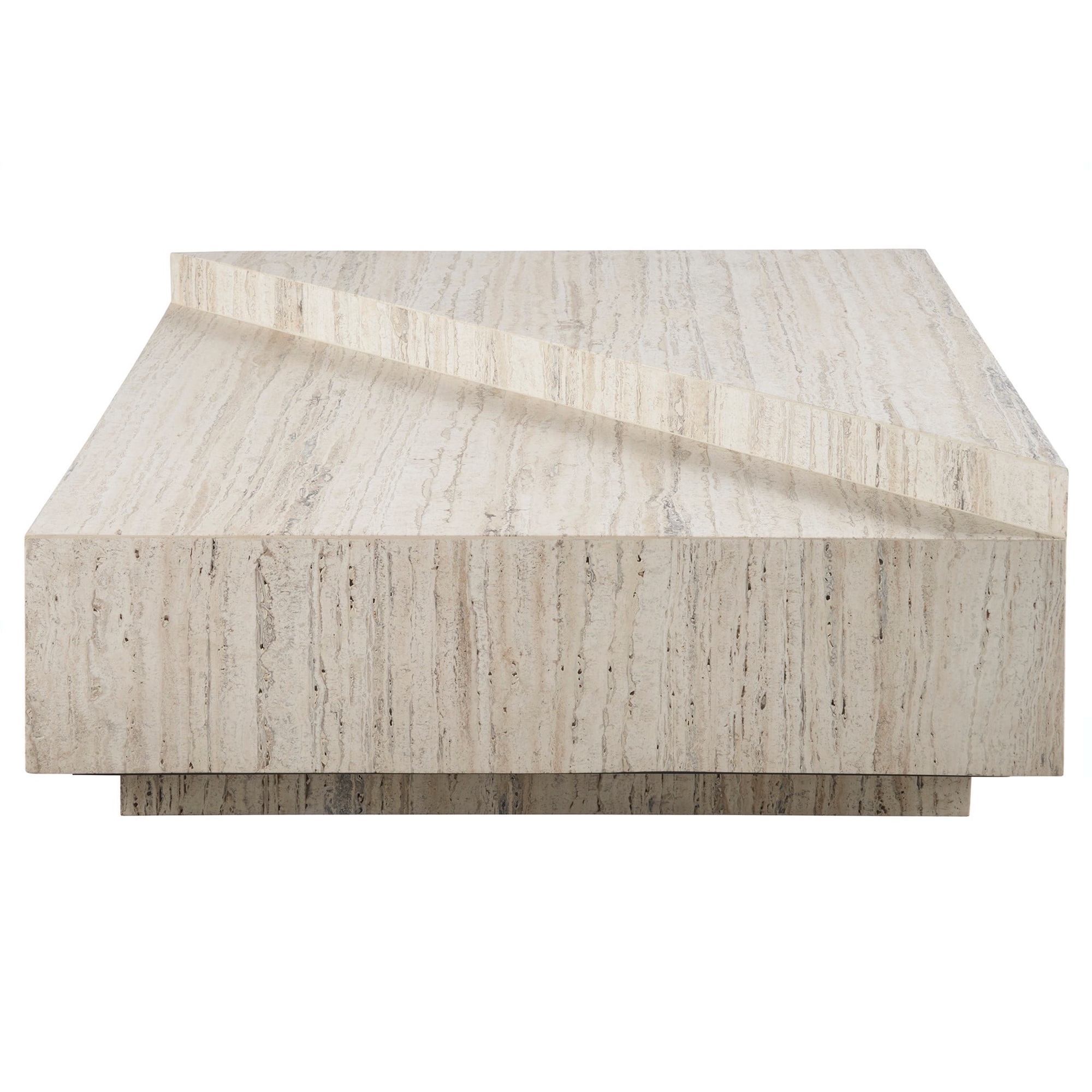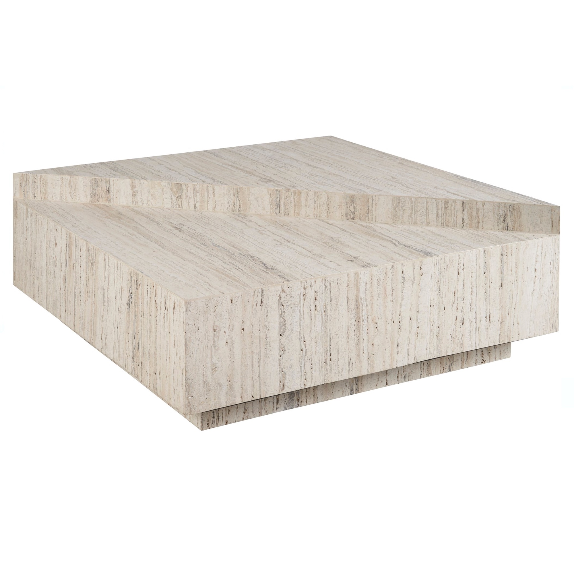La table cocktail Daxton, fabriquée en travertin blanc, allie mobilité et design moderne grâce à l’incorporation de roulettes. Son plateau de table à deux niveaux apporte une touche innovante grâce à l’angle diagonal, ajoutant un élément dynamique à la structure de la pièce et offrant à la fois un attrait esthétique et une polyvalence fonctionnelle.