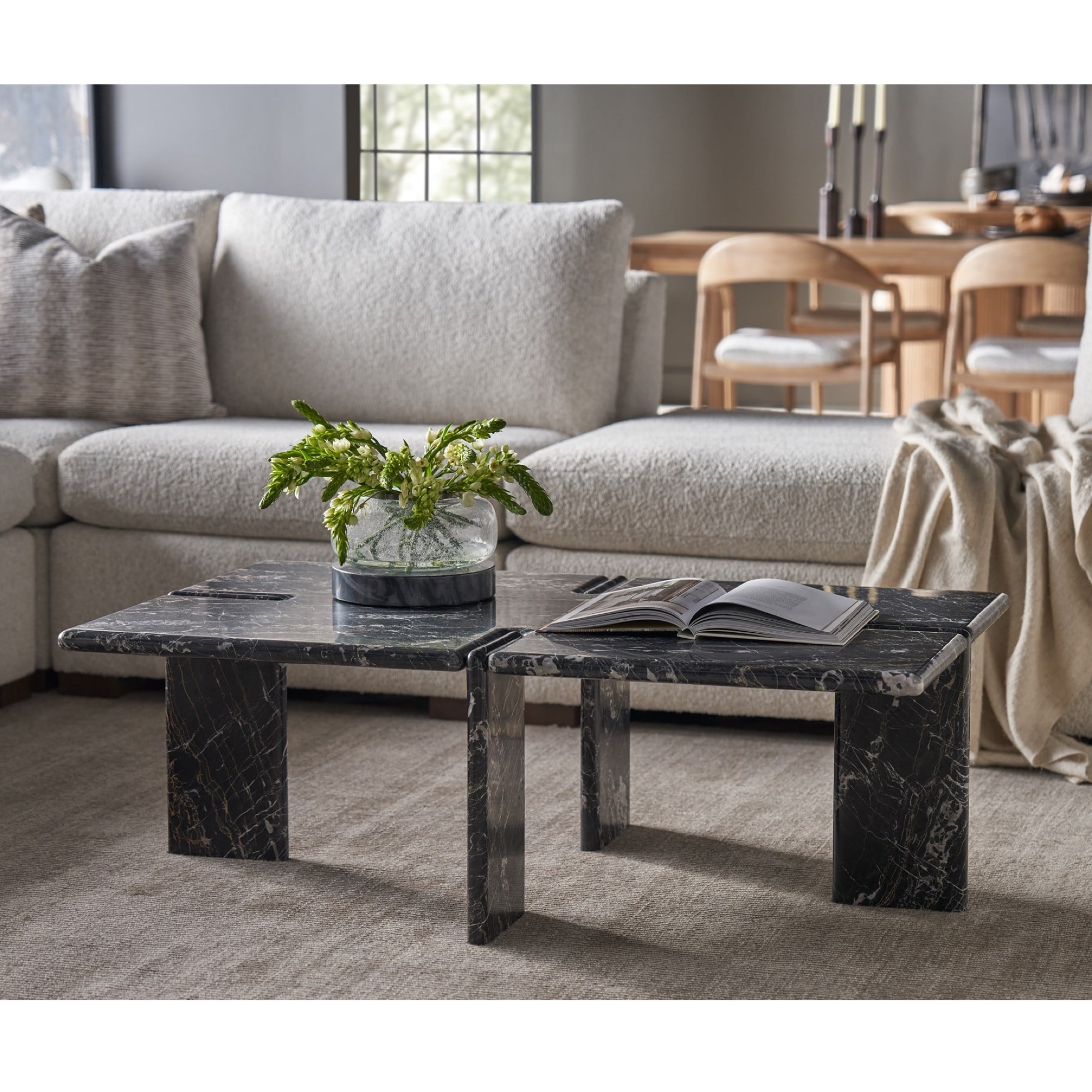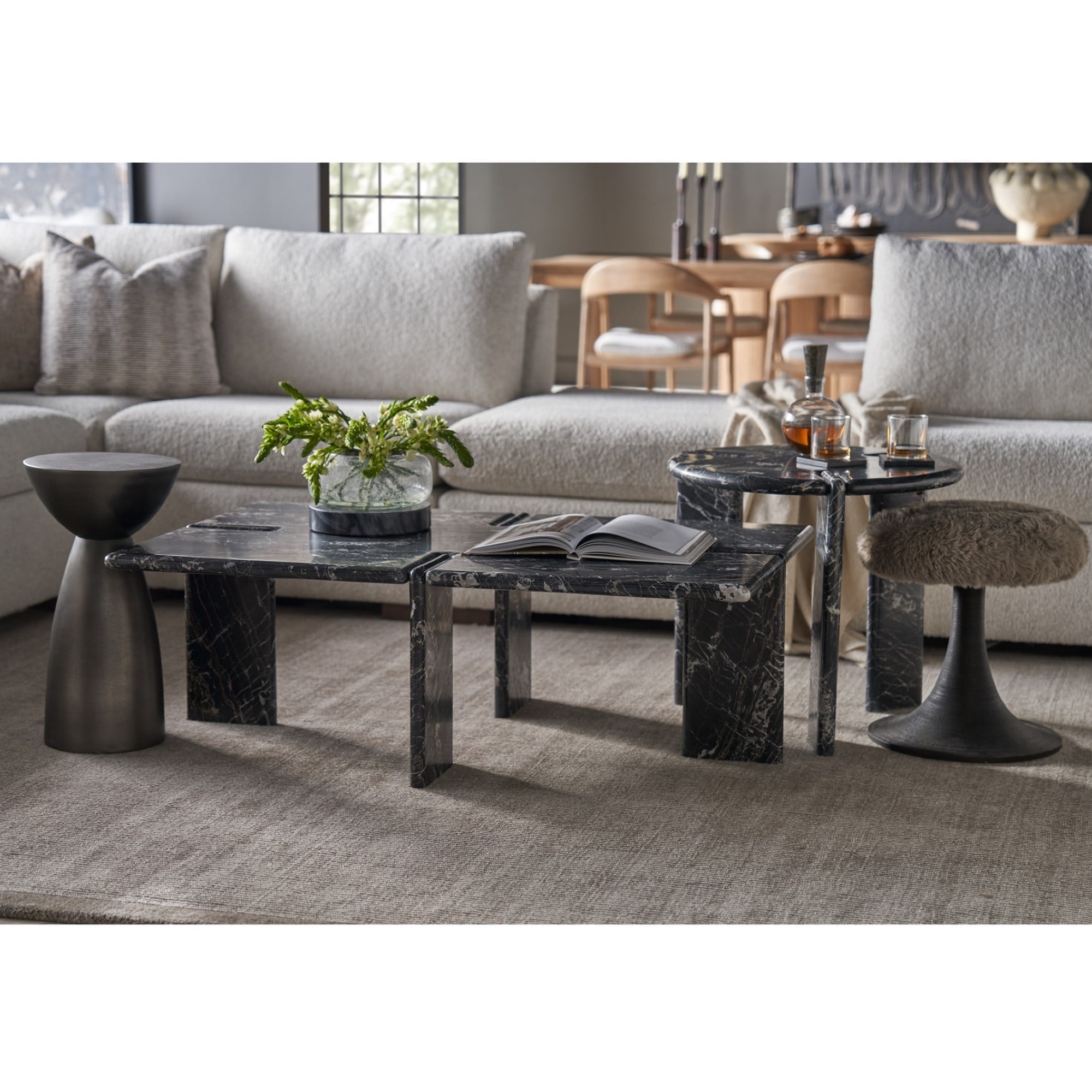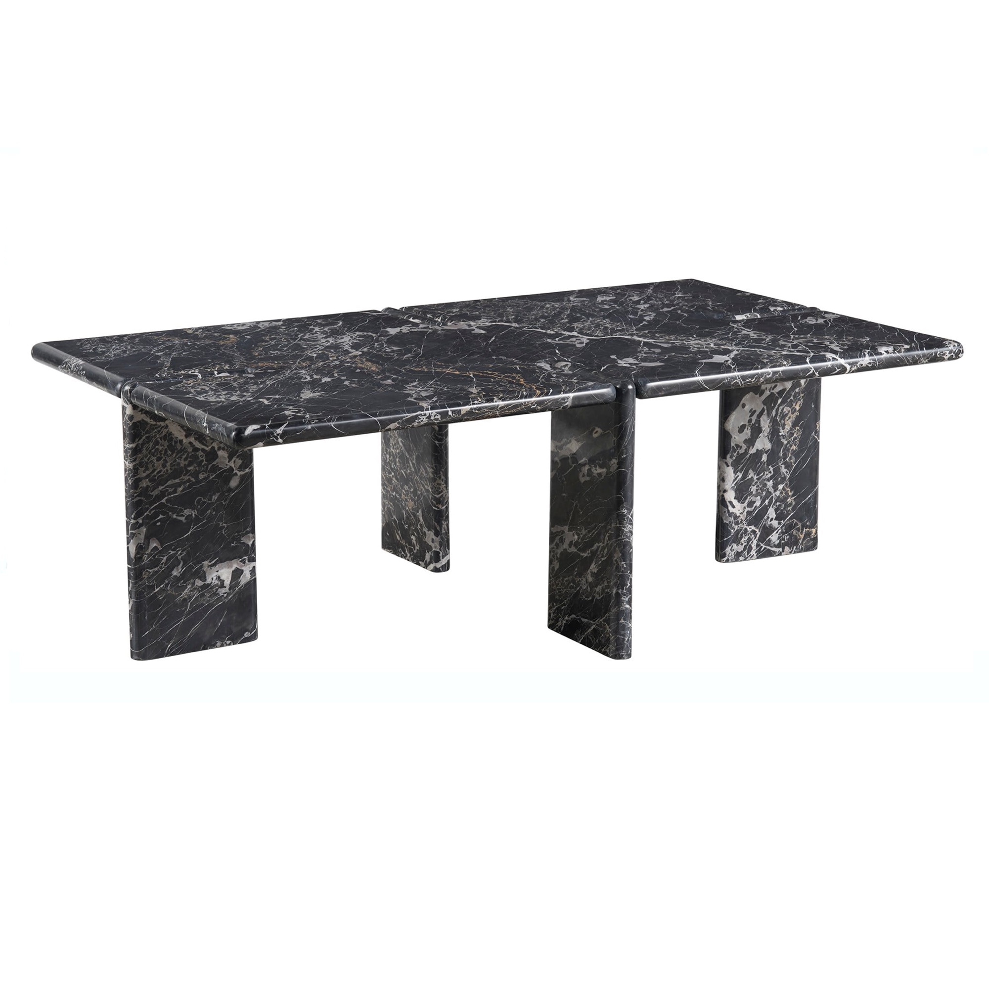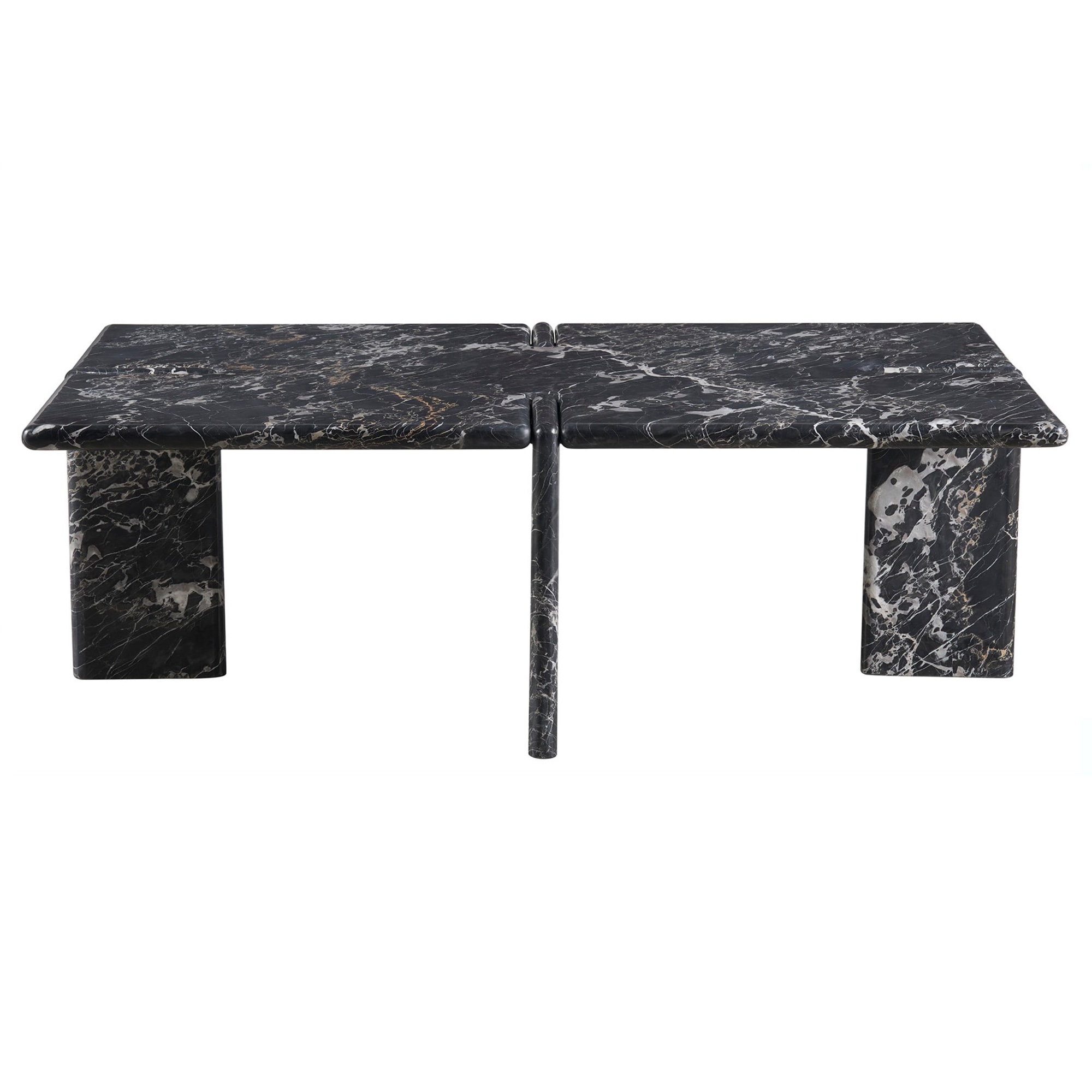 La table à cocktail Magnus est une pièce maîtresse audacieuse, fabriquée en marbre Portoro doré d’un noir profond. Sa silhouette robuste et élégante attire l’attention, avec des pieds en forme de dalle qui accentuent le jeu complexe de la pierre et de la forme. Cette table est une déclaration d’élégance et de force, alliant parfaitement des matériaux luxueux à une présence imposante.