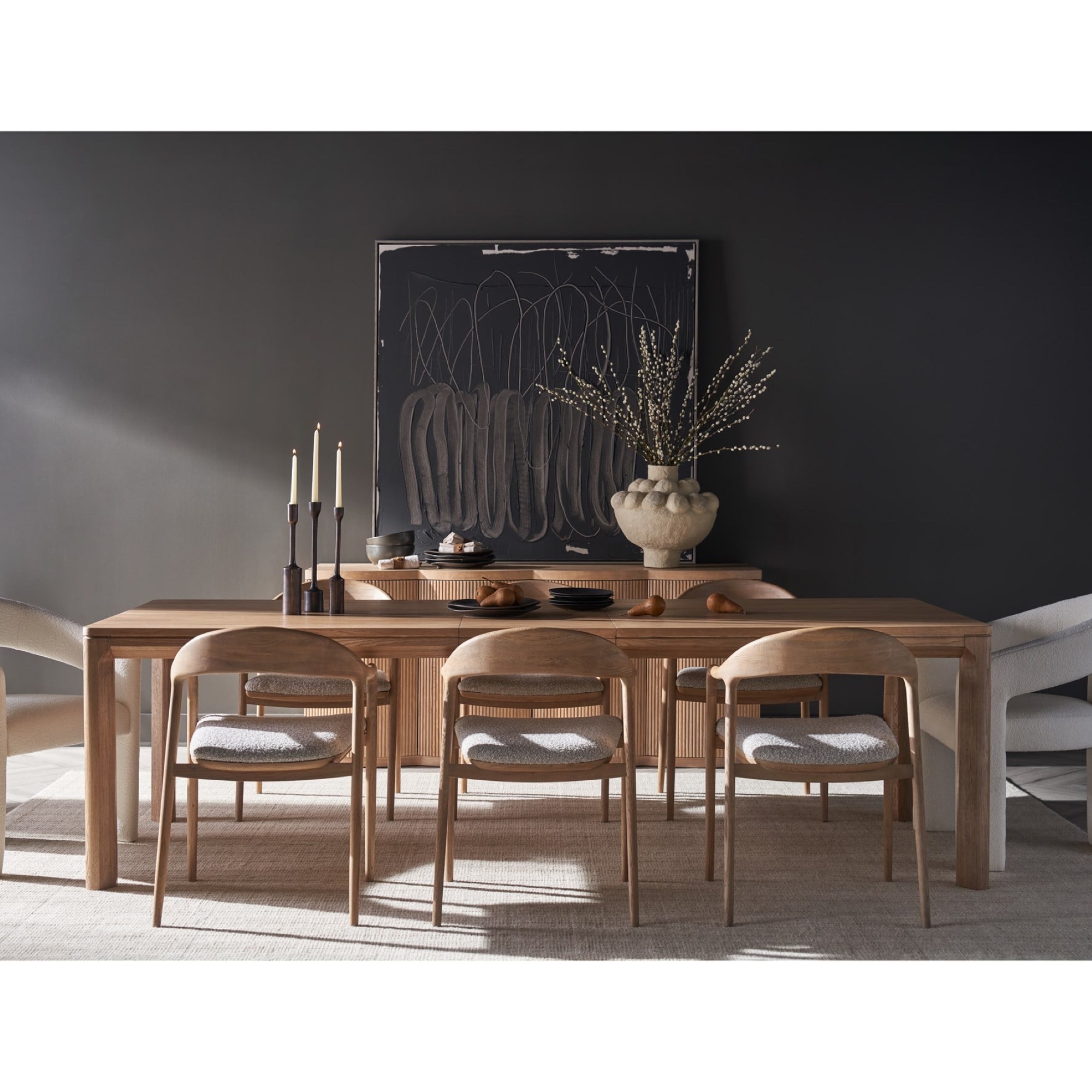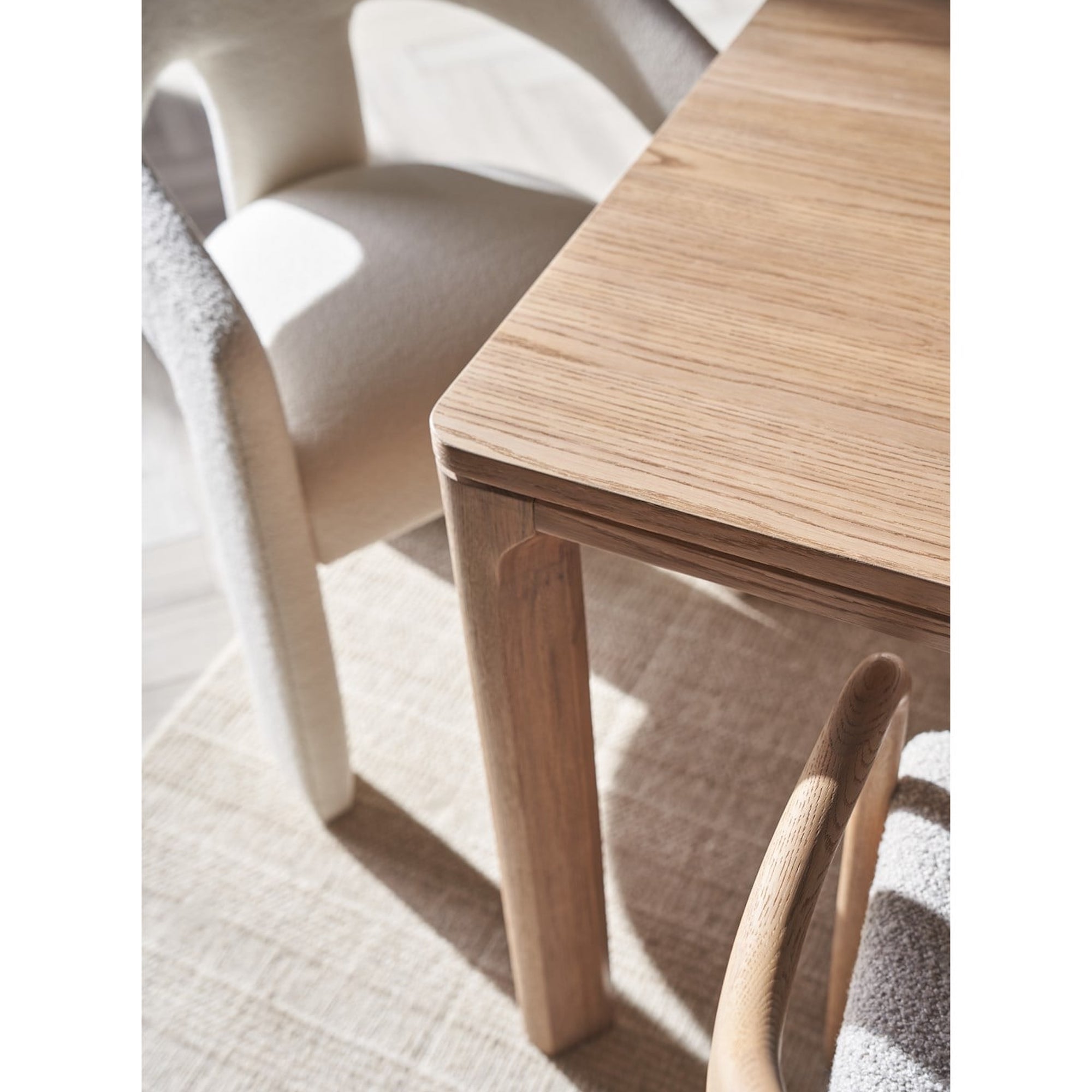 La table de salle à manger Malone, avec sa silhouette très simple et ses pieds étroits, est finie dans un chêne naturel polyvalent. Son design discret en fait un complément parfait à un large éventail de goûts intérieurs et de schémas de couleurs, incarnant une élégance minimaliste qui rehausse tout espace de repas.