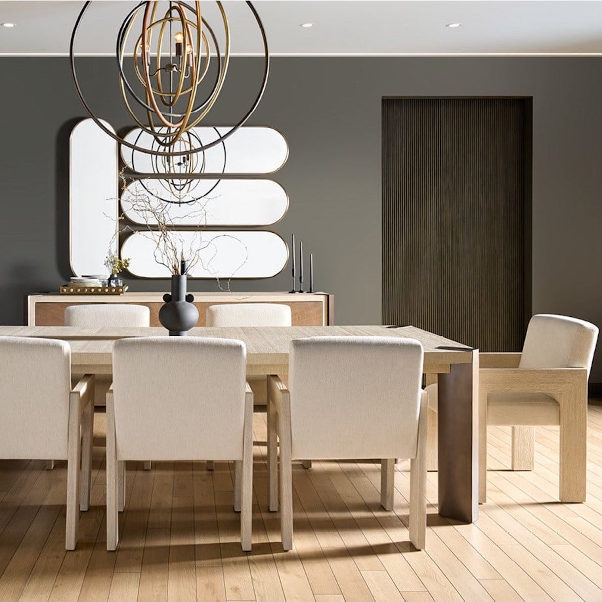 La table de salle à manger Mist est une élégante table de salle à manger à pieds extensibles finie en chêne Mist clair. Pouvant accueillir deux allonges, cette pièce assure une utilité fonctionnelle sans sacrifier sa silhouette raffinée.