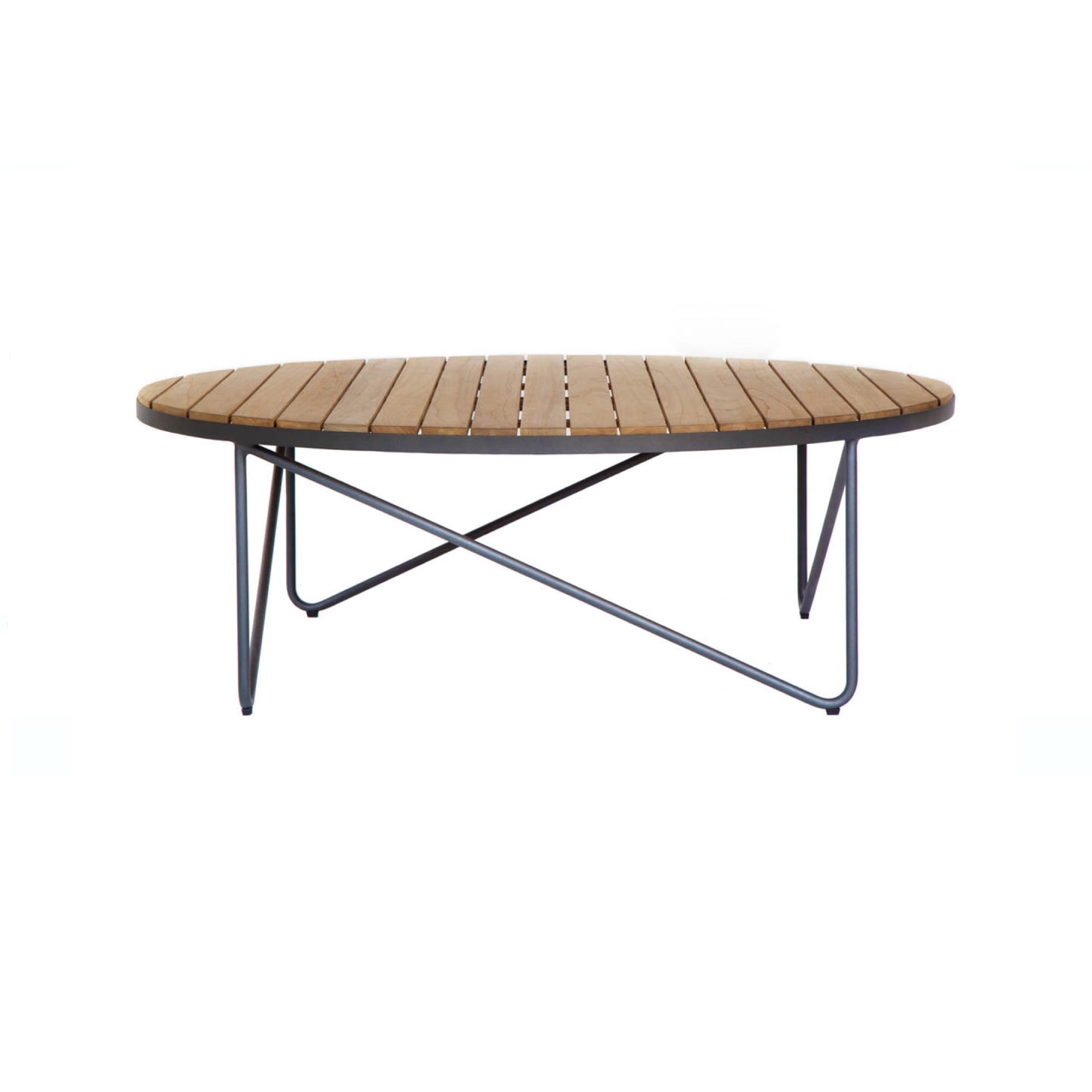Complétez votre espace de vie extérieur avec cette table basse ronde de notre collection Outdoor by SUNPAN. Elle se compose d’une structure en aluminium revêtue de poudre gris foncé et d’un plateau en bois de teck naturel lambrissé. Convient aux espaces intérieurs et extérieurs couverts