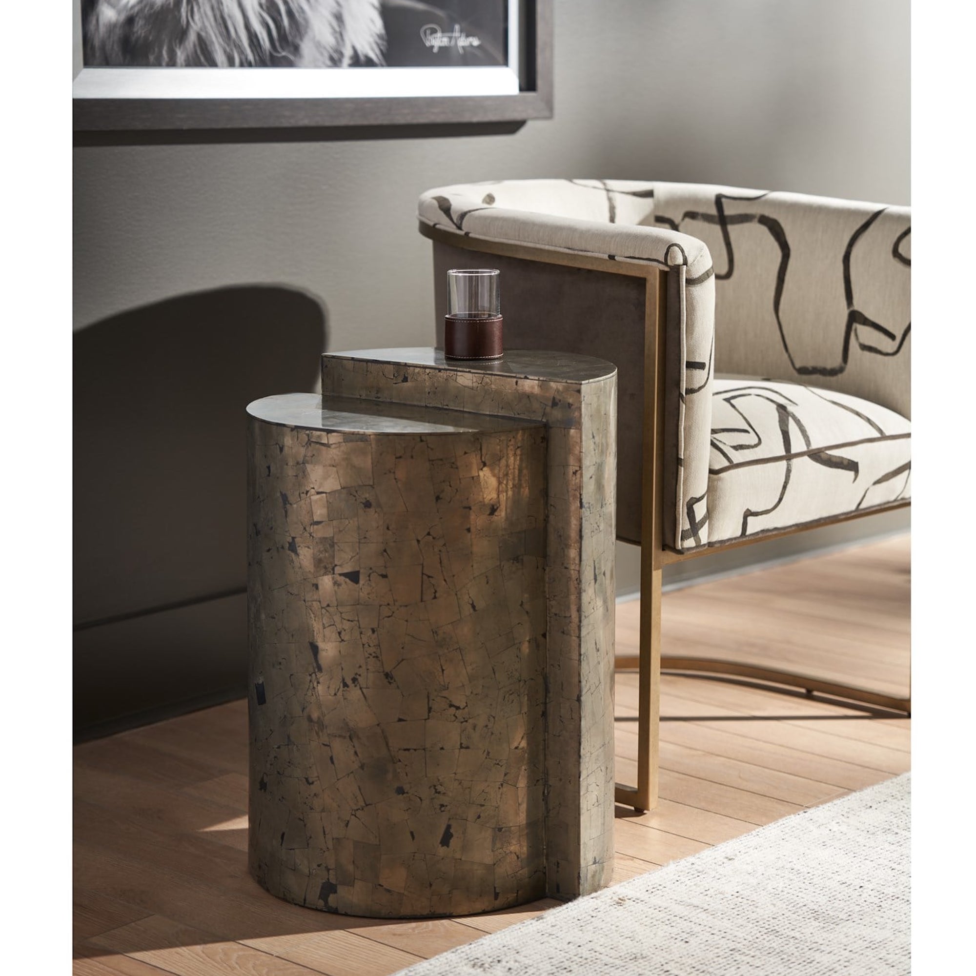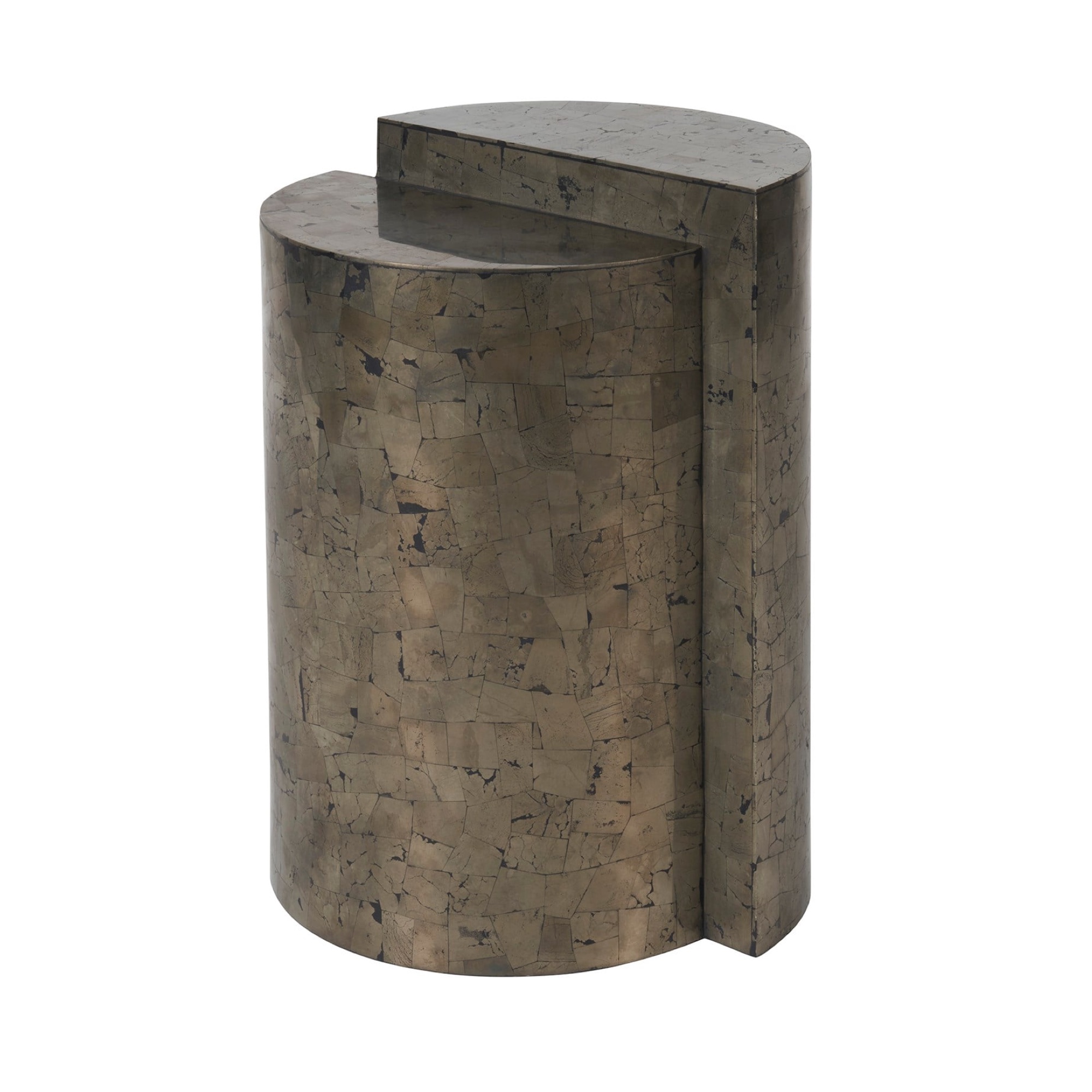 La table d’appoint Cosmo, avec sa finition Pyrite, joue astucieusement avec l’équilibre et l’asymétrie sur deux niveaux distincts. Cette pièce apporte une essence plus sombre et plus humide au design moderne, associant la fonctionnalité à une esthétique avant-gardiste qui remet en question les formes traditionnelles et invoque une ambiance contemplative et sophistiquée.