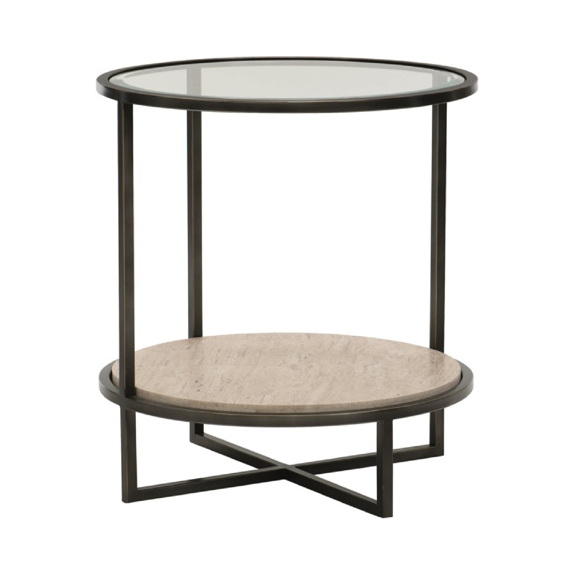 Un mélange raffiné de matériaux crée une pièce élégante avec son plateau en verre trempé et son bord biseauté. Le cadre en acier tubulaire en bronze huilé contraste magnifiquement avec l’étagère en travertin blanc, offrant à la fois une fonctionnalité et une texture sophistiquée. Ses lignes épurées et ses matériaux intemporels en font un complément élégant à tout intérieur contemporain.