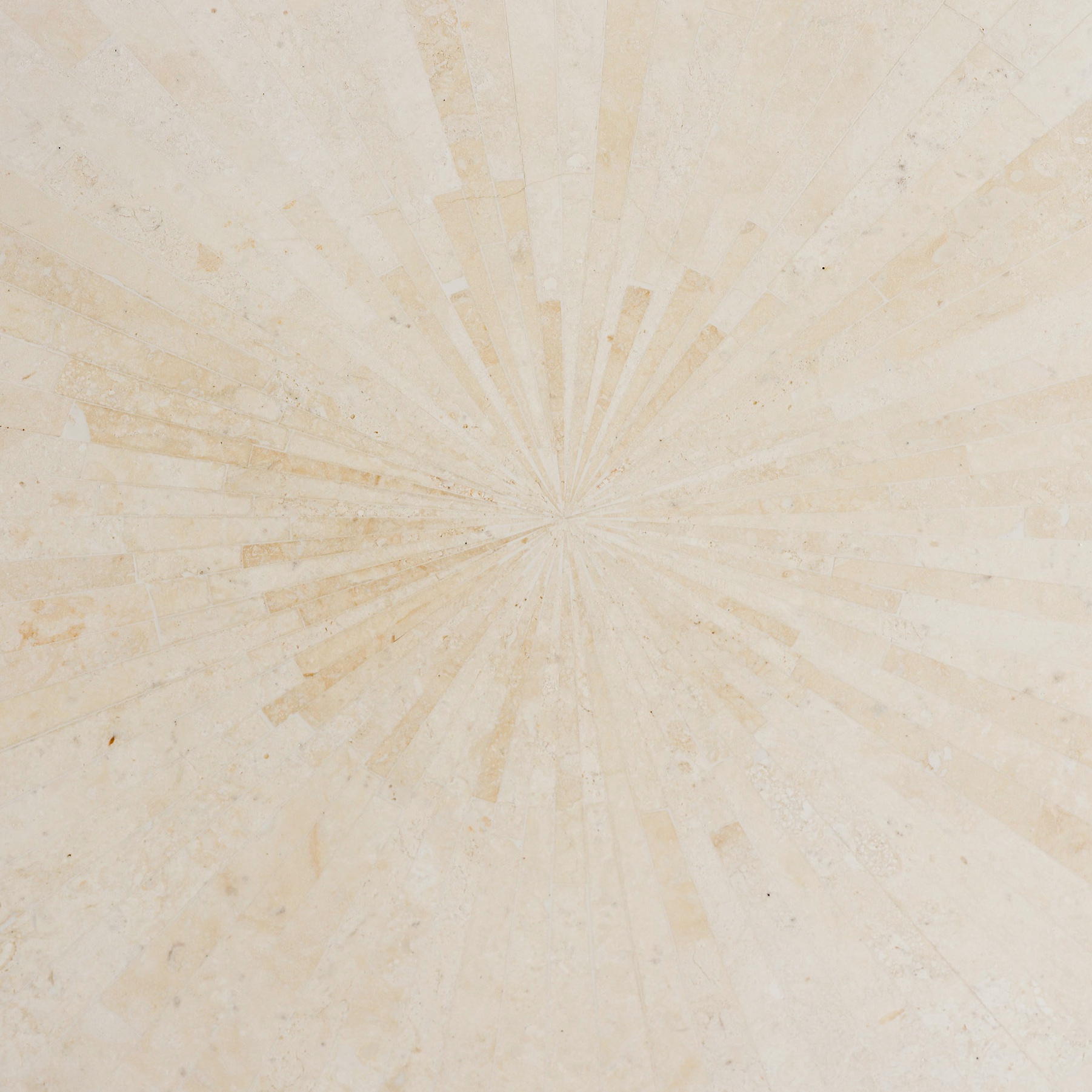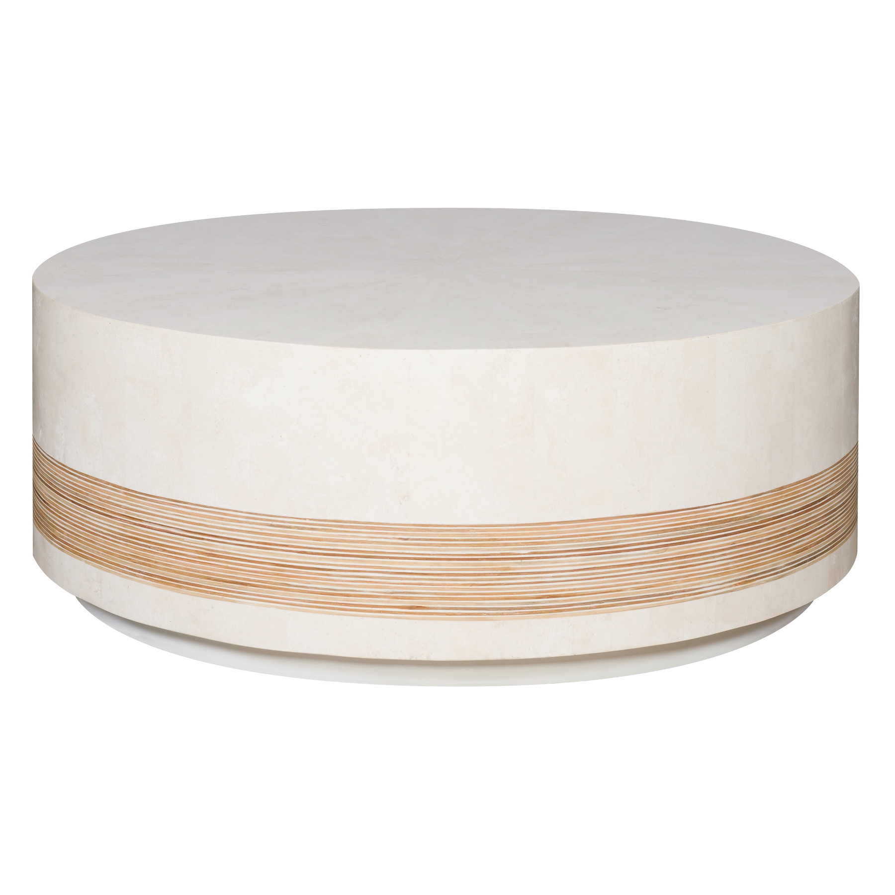 Les caractéristiques de la table à café Alba : Table plaquée d’agate blanche avec incrustation de rotin