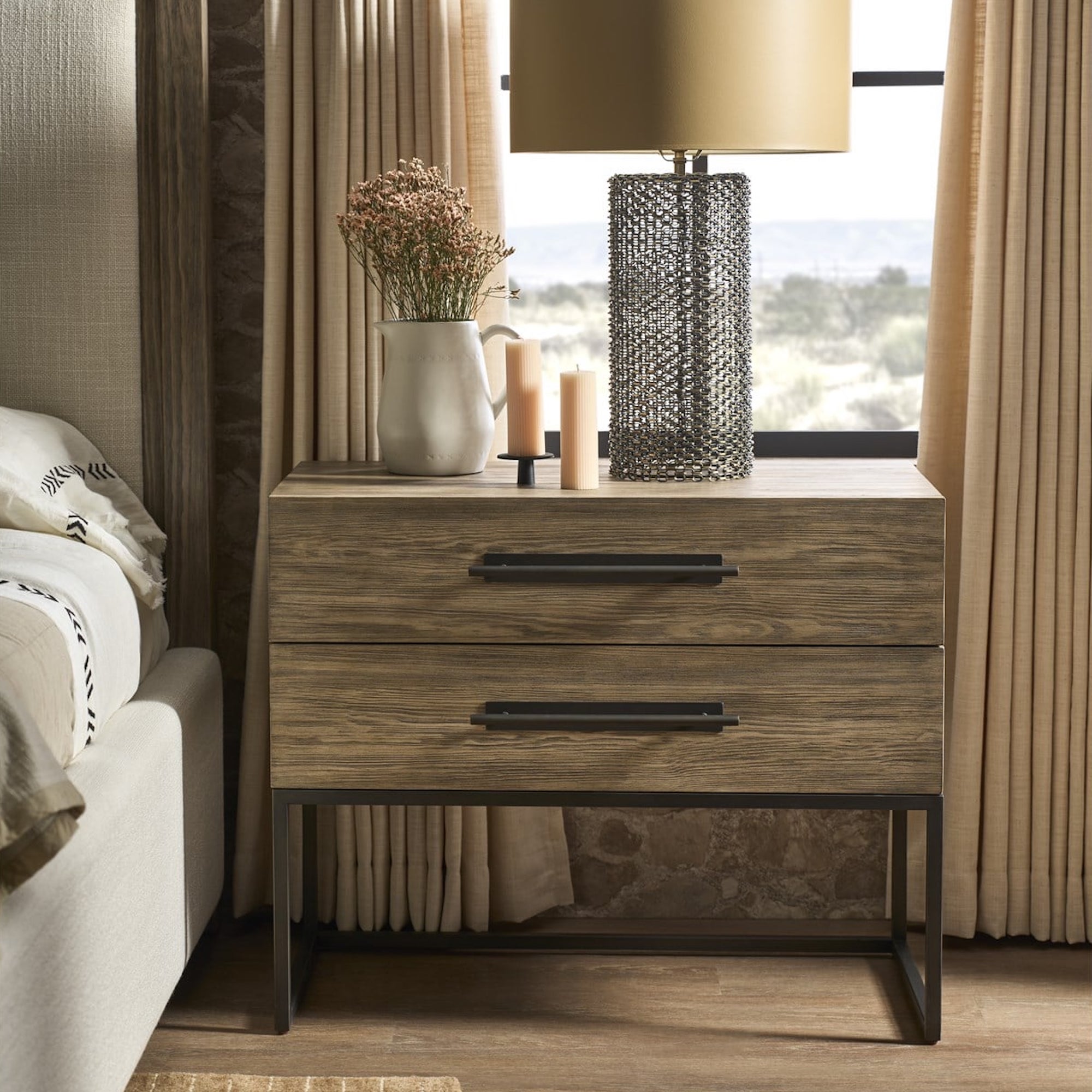 La table de nuit à base métallique Boulder présente les caractéristiques suivantes :