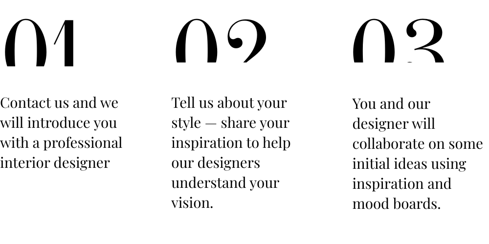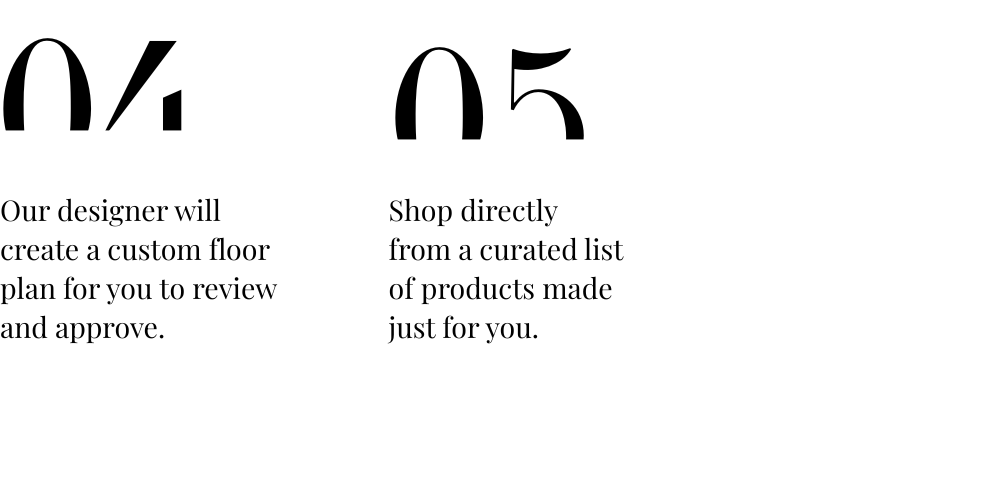 After an initial consult, our designers will develop a selection of product and color options that reflect your taste and aesthetics.