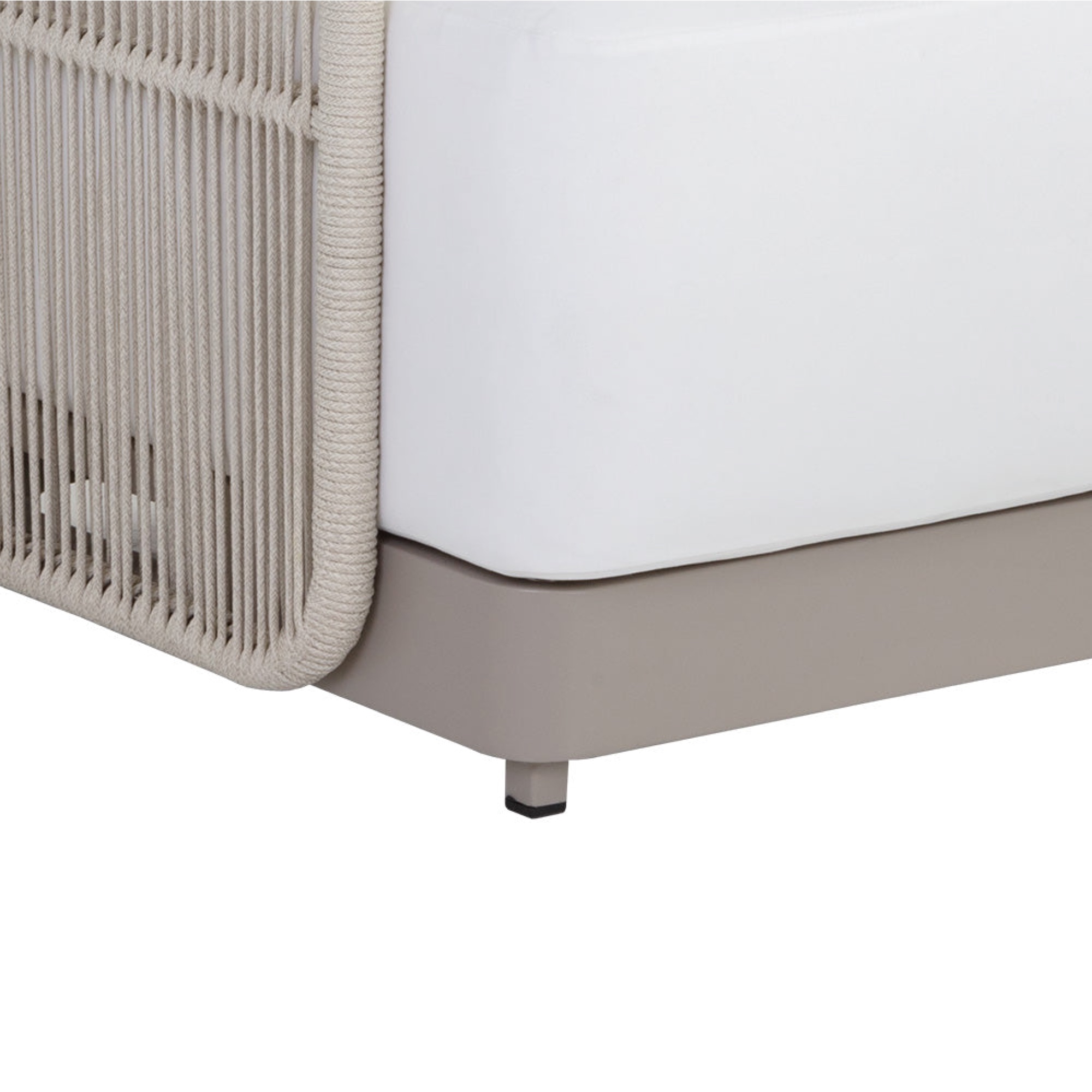 Cream Olefin Rope Weave – Synthetic all-weather rope weave is fade resistant and easy to clean.e