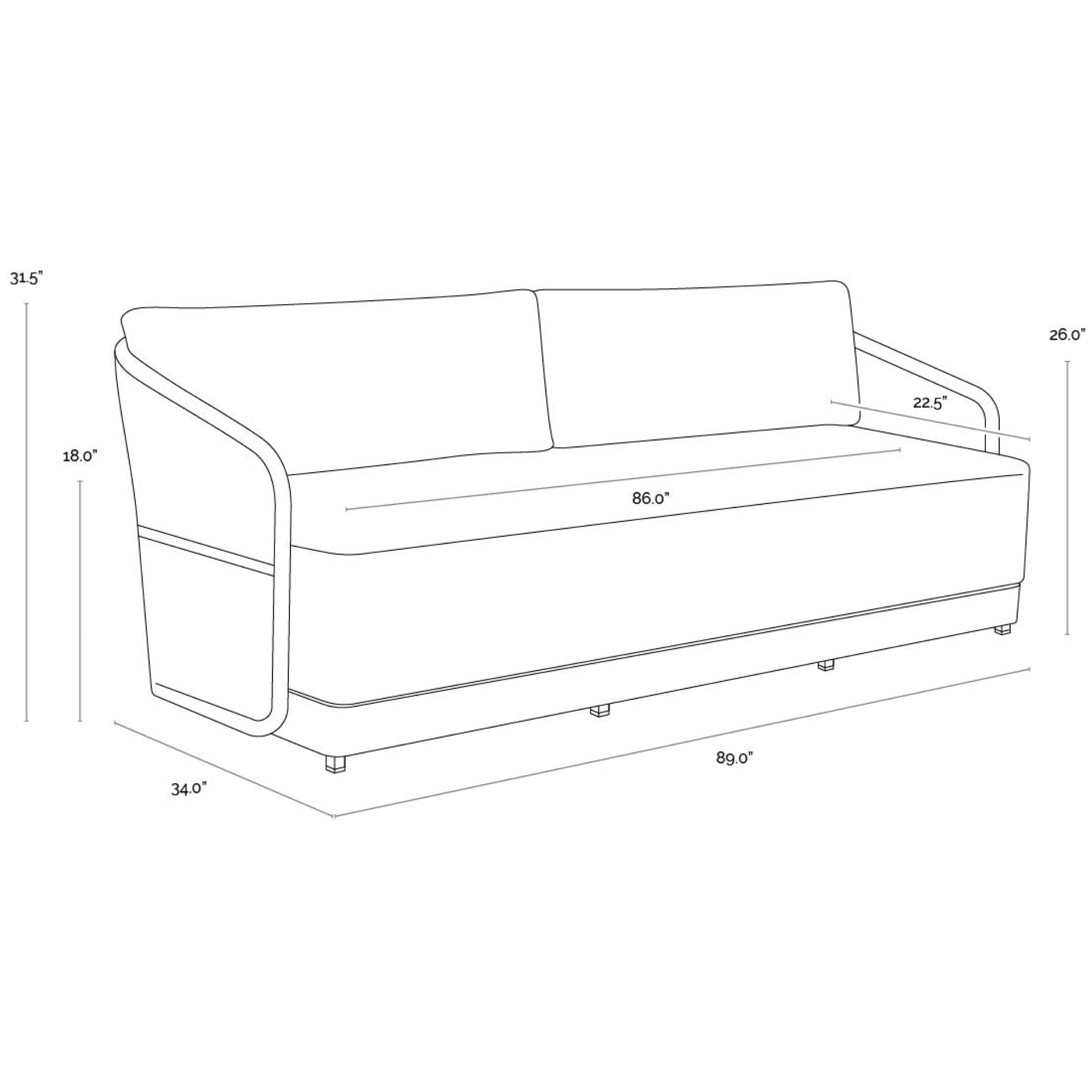 Dimensions 89 × 34 × 31.5 in