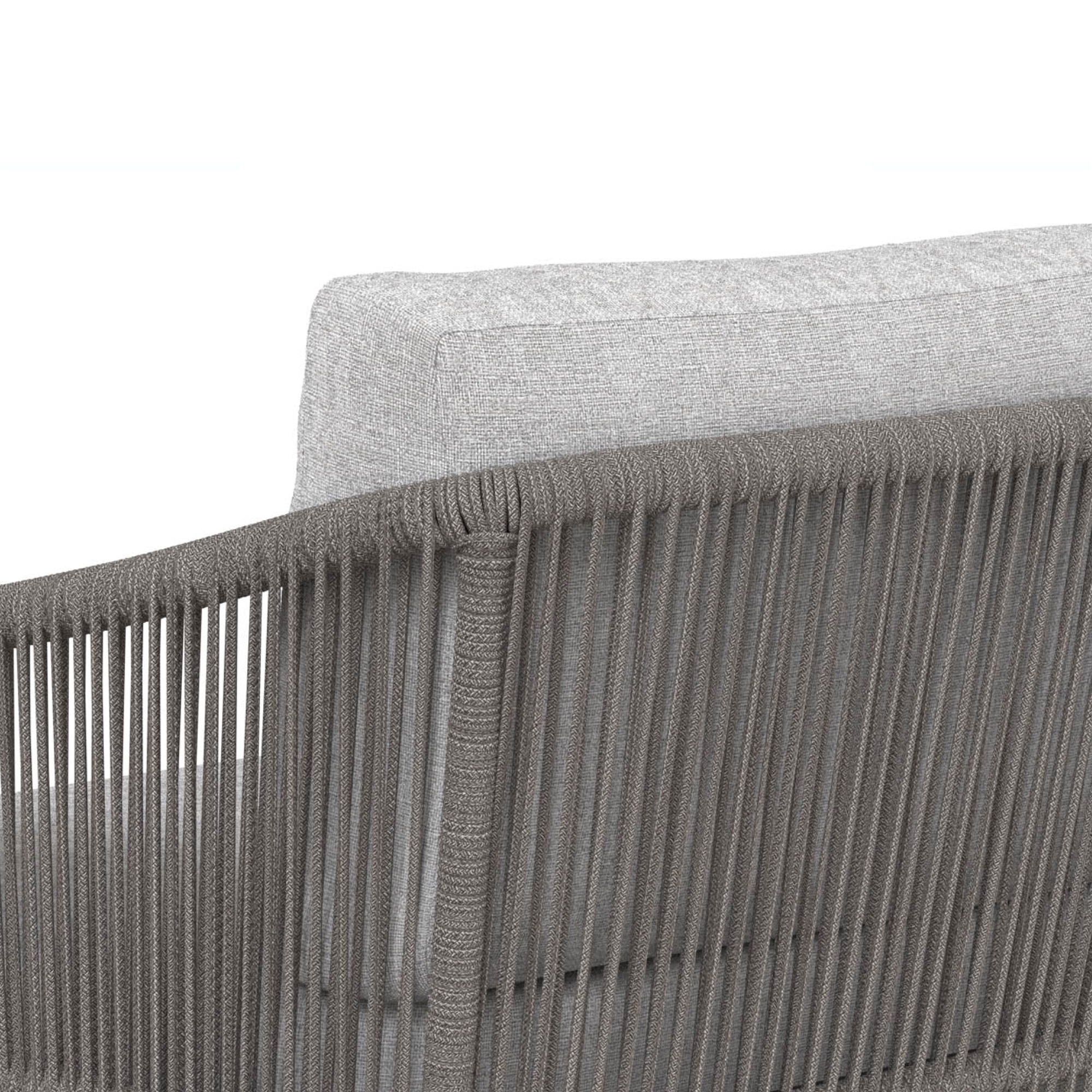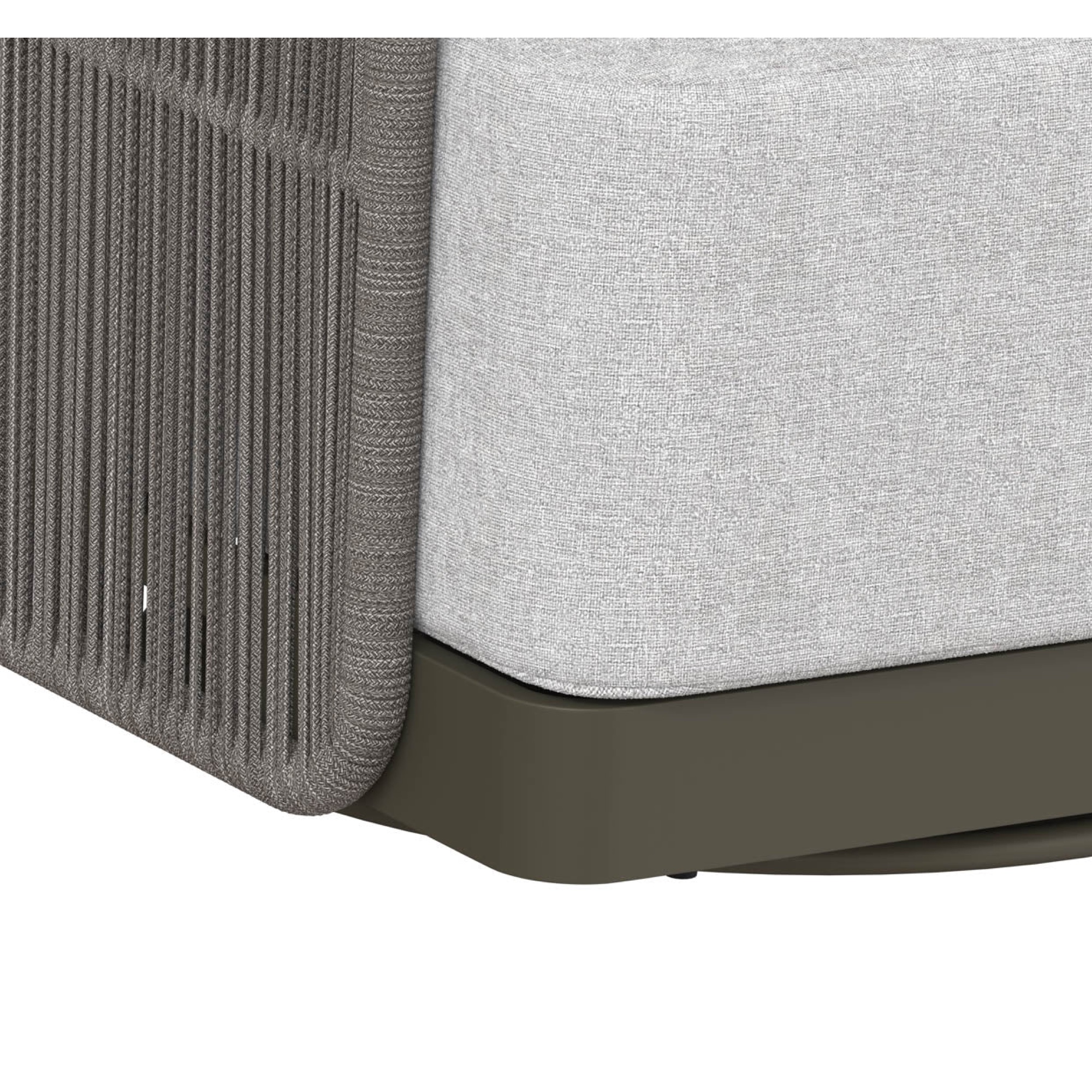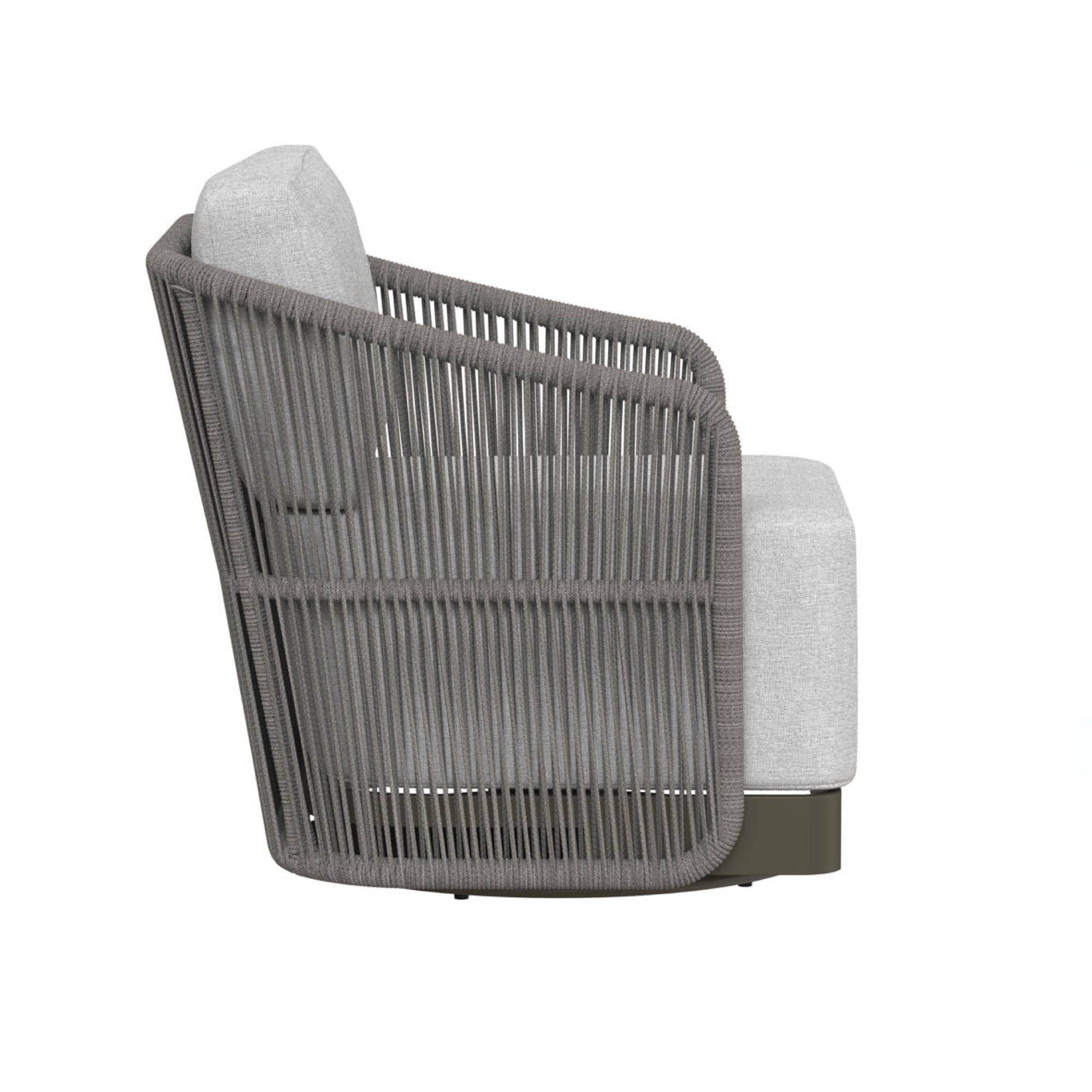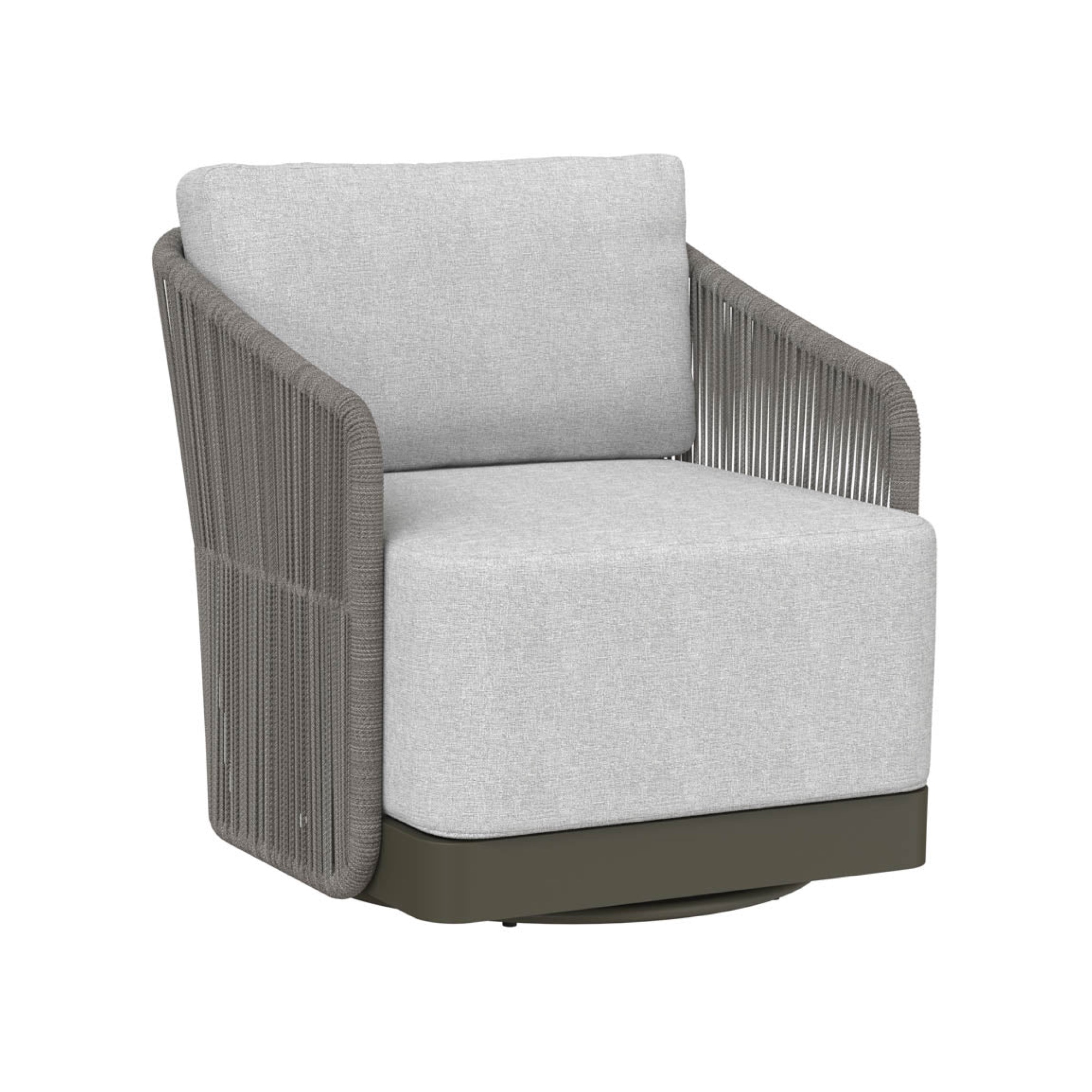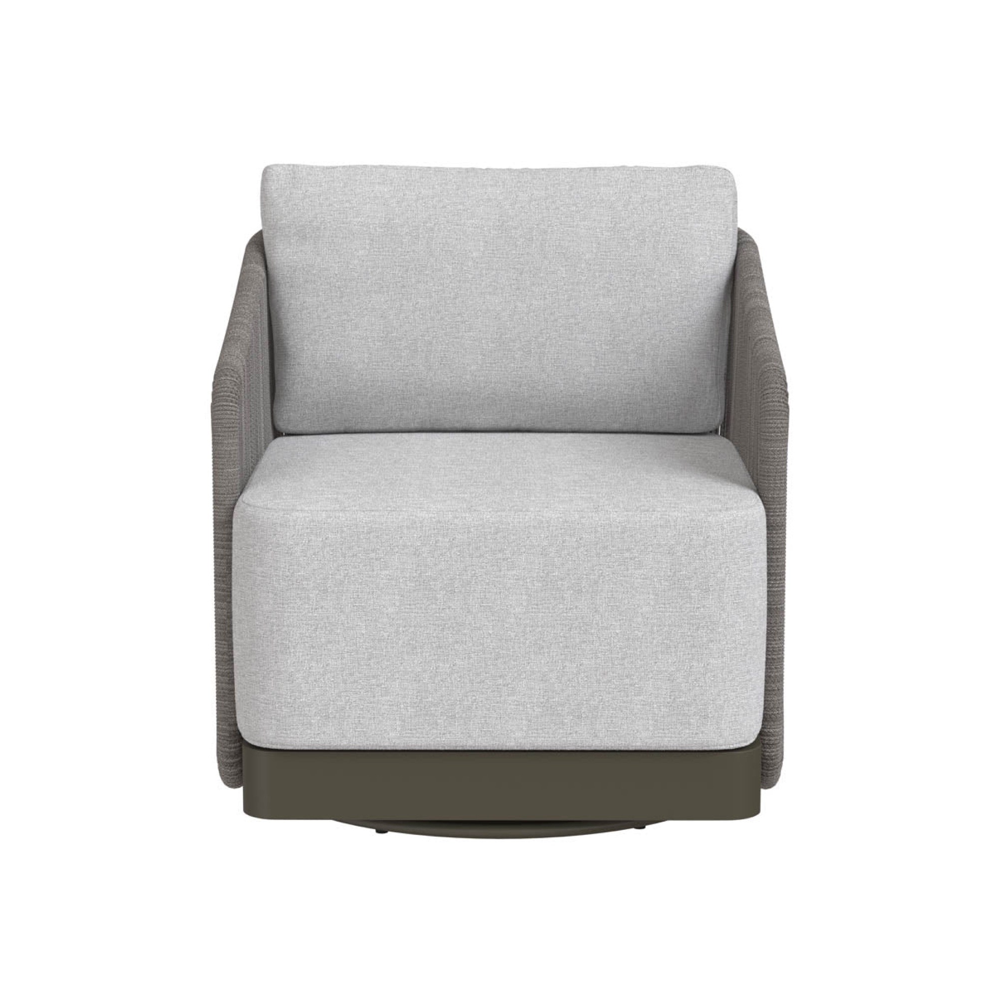 Introduce refined modern style outside with this impressive swivel armchair from our Outdoor collection. Upholstered in gracebay light grey fabric with a powder-coated warm grey aluminum frame. Completed with grey rope weaving on the seat exterior.