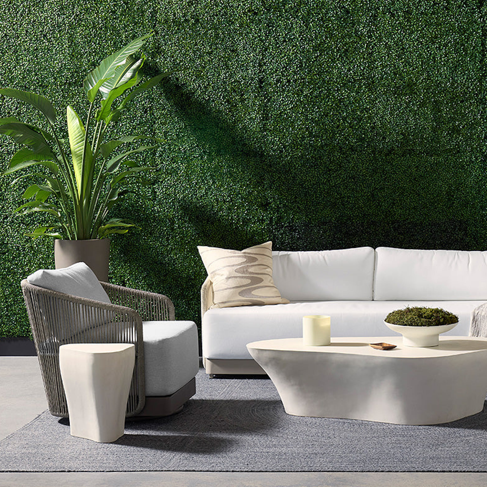 Cream Olefin Rope Weave – Synthetic all-weather rope weave is fade resistant and easy to clean.