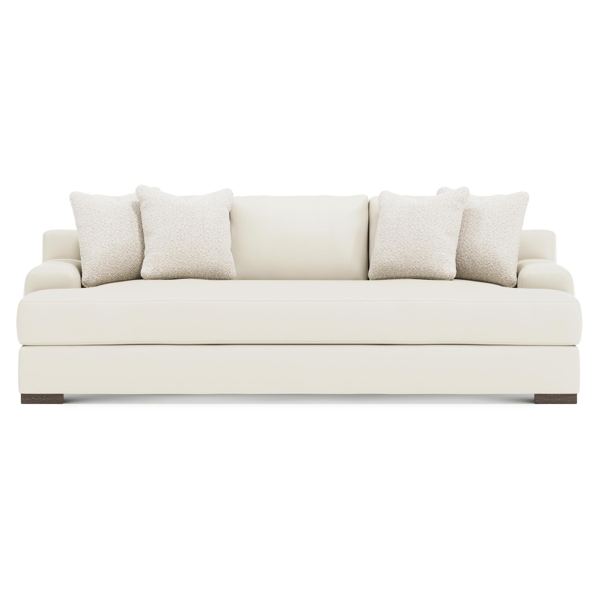 Invitingly plump with crisp stitching and recessed arms, the Andie leather sofa beckons with style and craftsmanship. The shapely design and low back make this sofa perfect to float, with an overall look that is gracious and welcoming. It’s all supported by wide, block legs that elevate this sofa to superstar status.