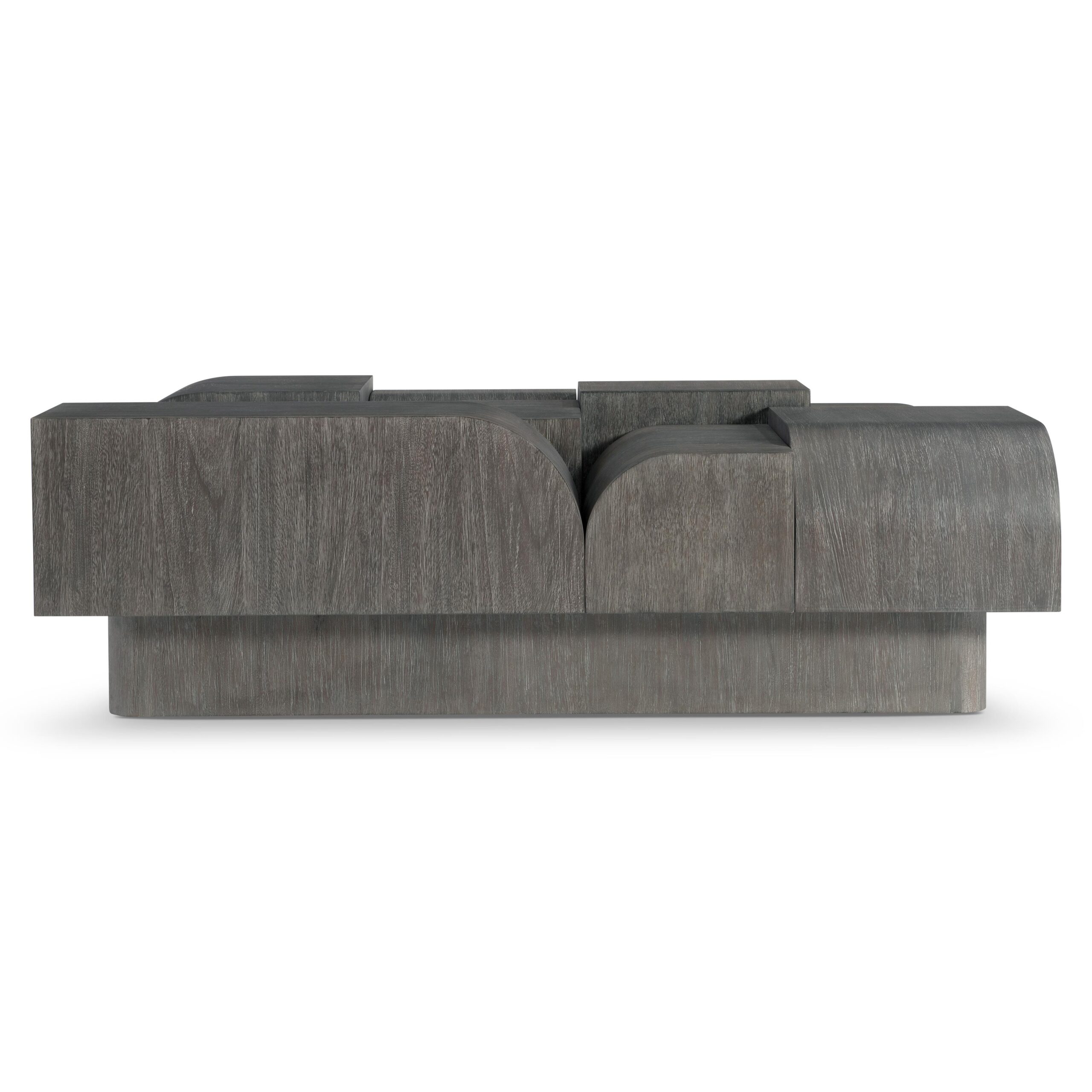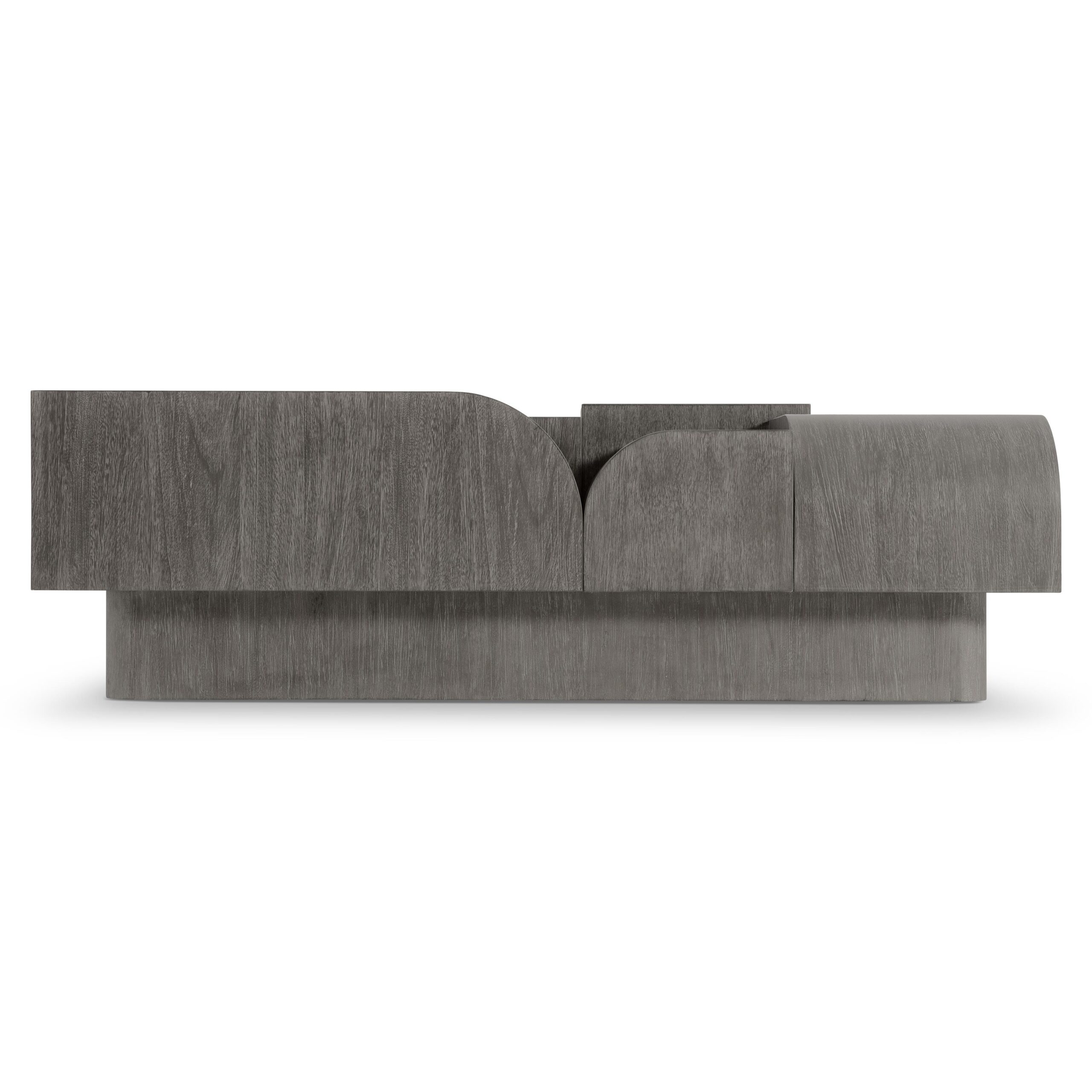 Waves of beautiful shapes rise and fall on the Basi cocktail table, crafted of mahogany. Resting on a plinth base, the multiple surface levels allow the woodgrain to take the spotlight, showcasing shadows and visual interest in Bracken finish.