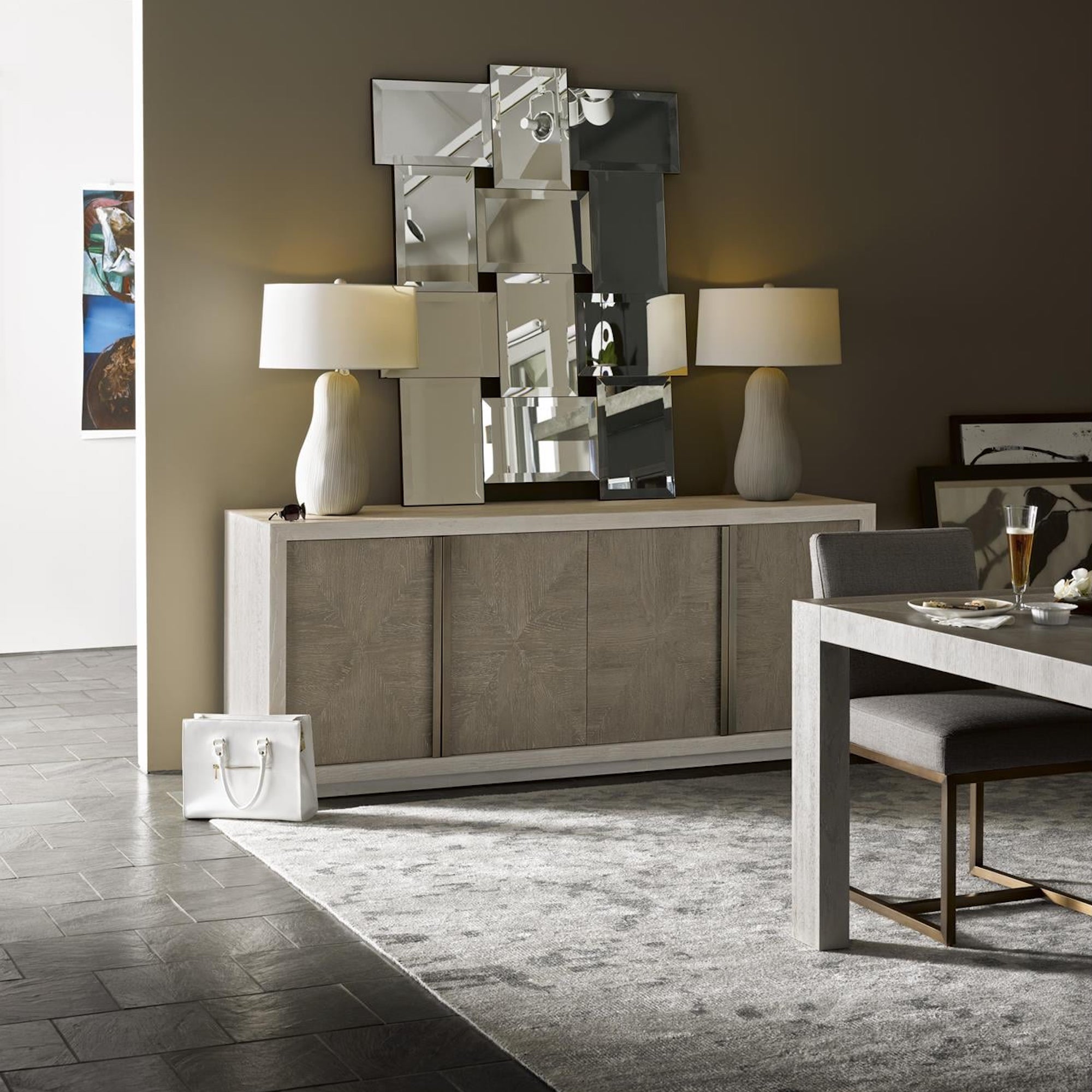 Adding a two-toned interest to dining spaces, the Brinkley Credenza delicately positions a light wooden frame around a medium-hued body to create a bold statement piece.