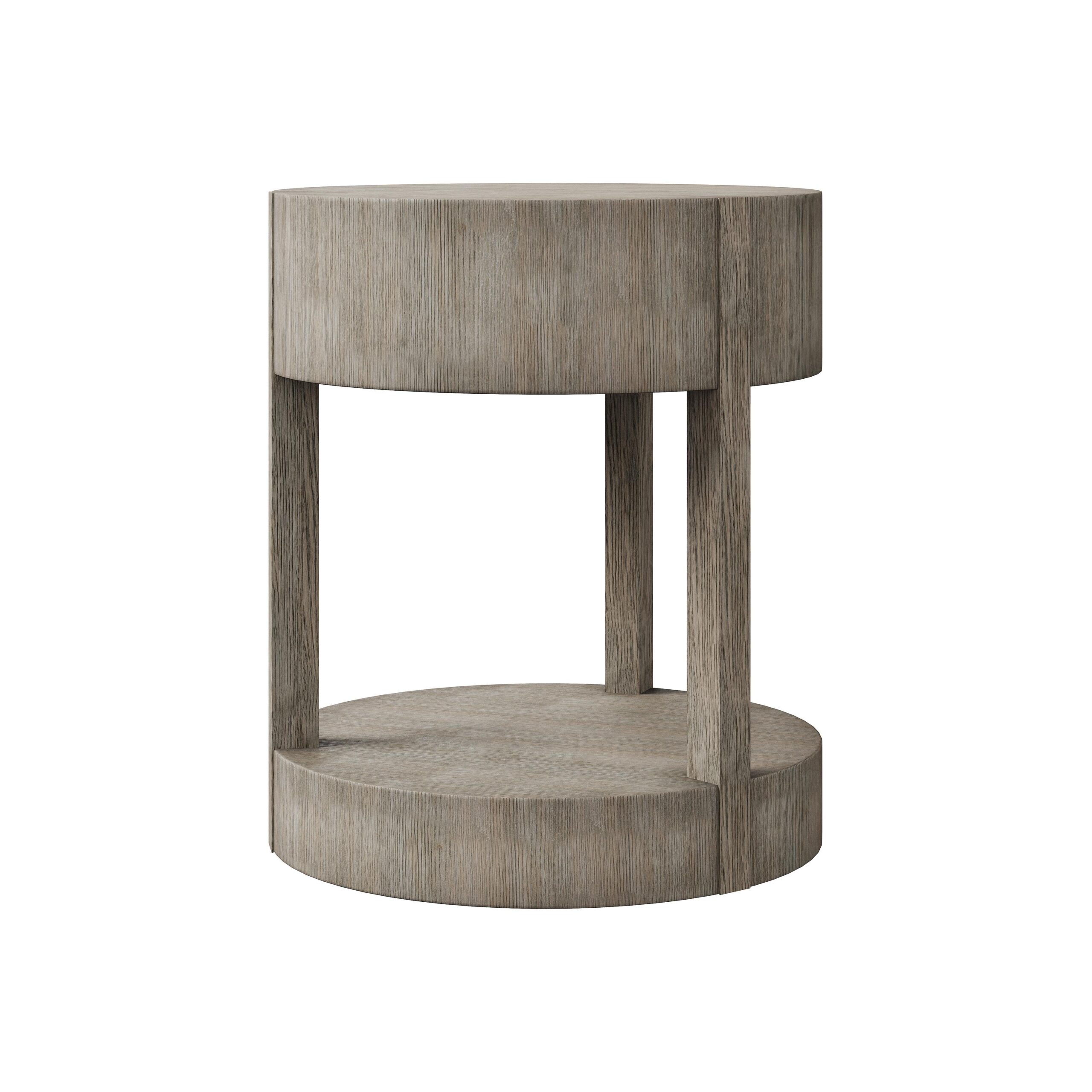 Bernhardt Interiors offers high-design furniture with an eclectic edge. With an emphasis on modern simplicity, the Calder nightstand marries function with form. A bottom shelf creates additional surface space, while a hidden drawer provides storage with minimalist style. Featuring quartered white oak veneers in a Rustic Gray finish, this piece brings a natural, relaxed look to the bedroom.