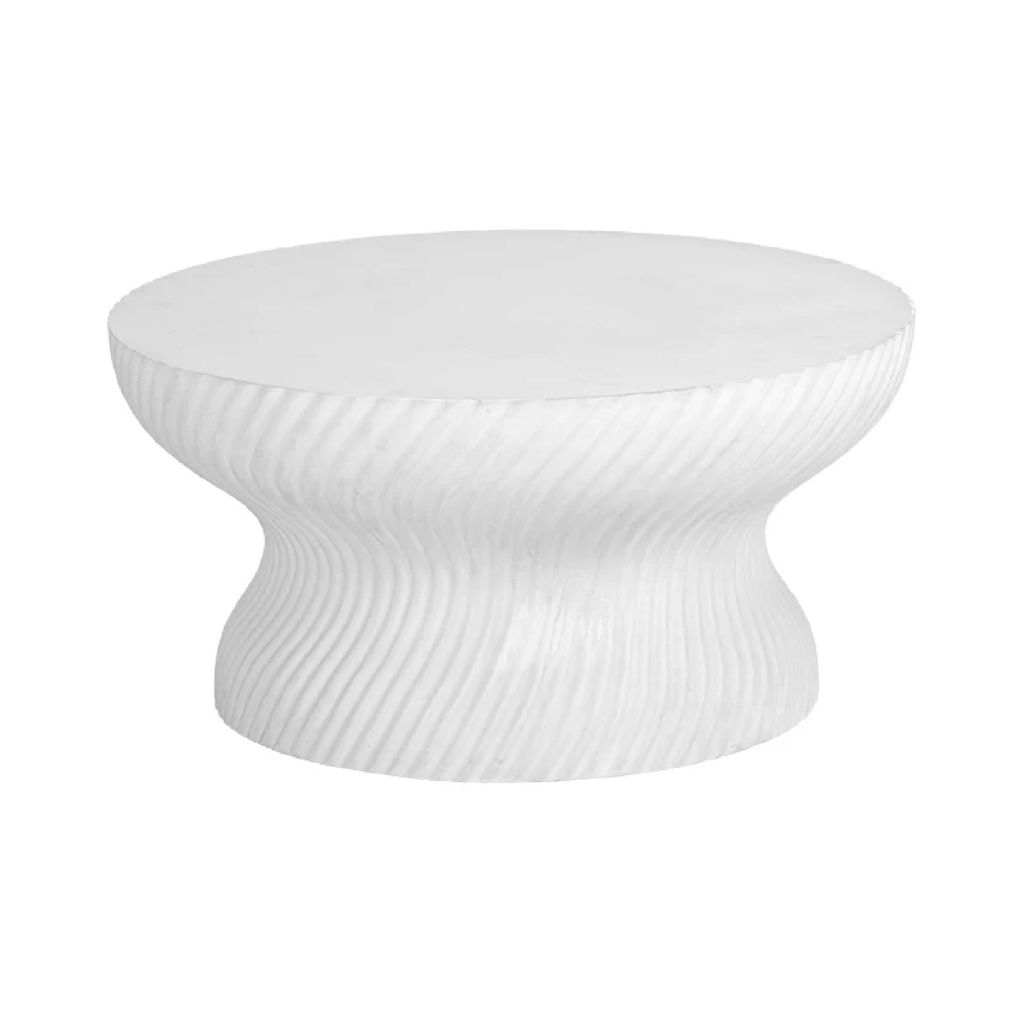 With a mesmerizing shape, this round ccocktail table is well defined by its stunning swirl indentation on the base.