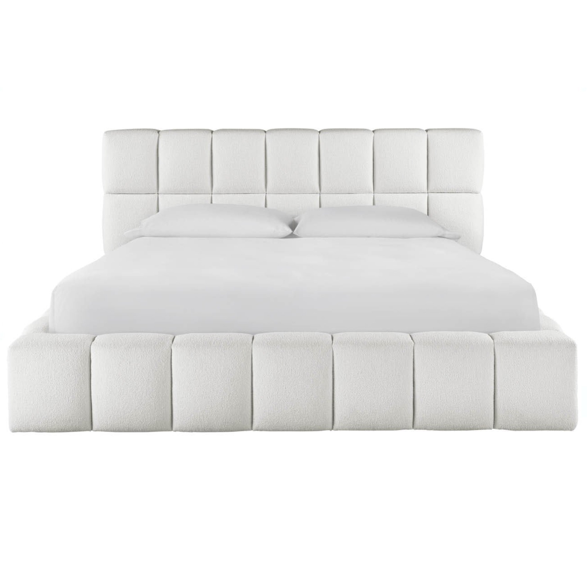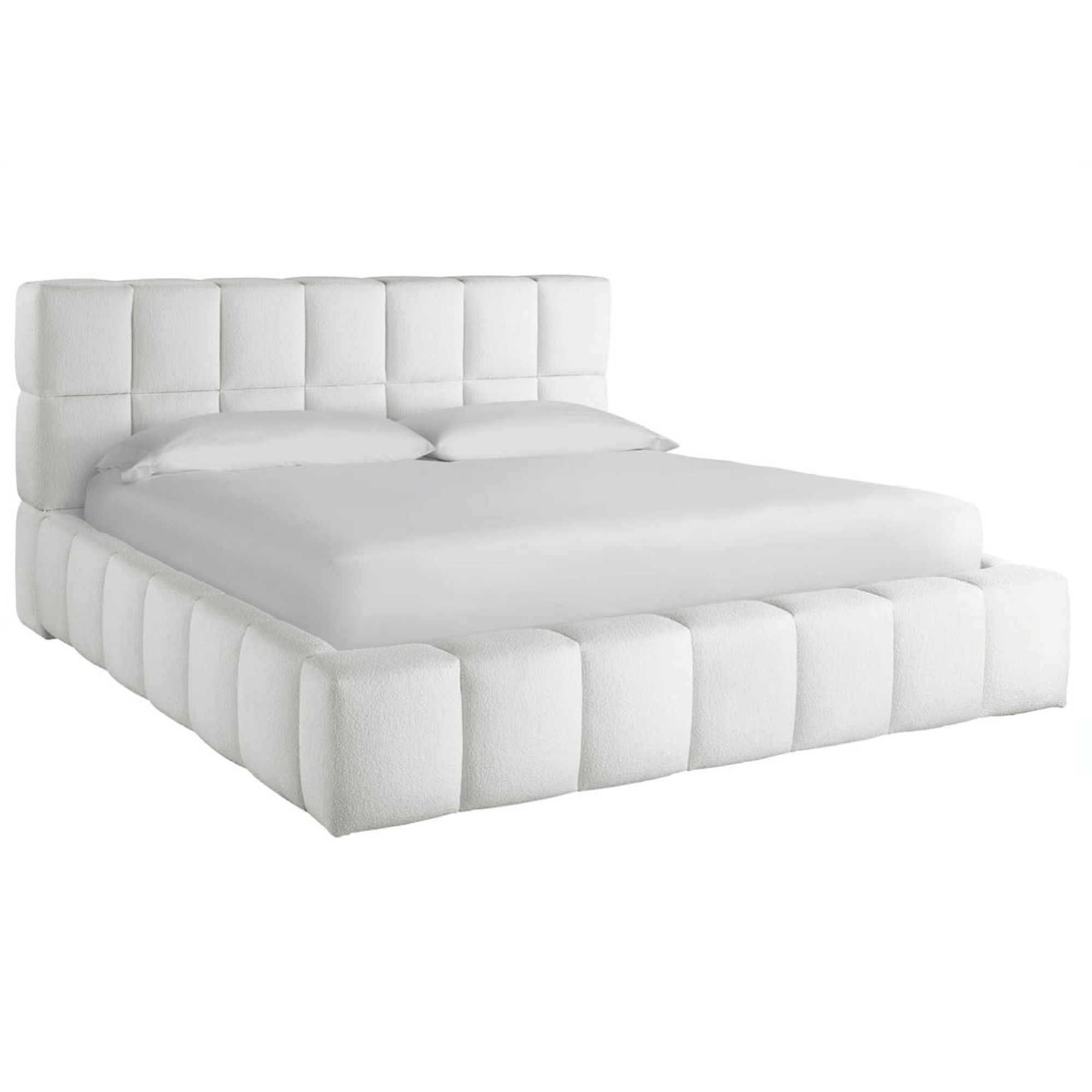 Center bedroom dwellings with the Upholstered Platform Bed, a comfort-forward piece formed with a series of rolled cubes in a plush fabric