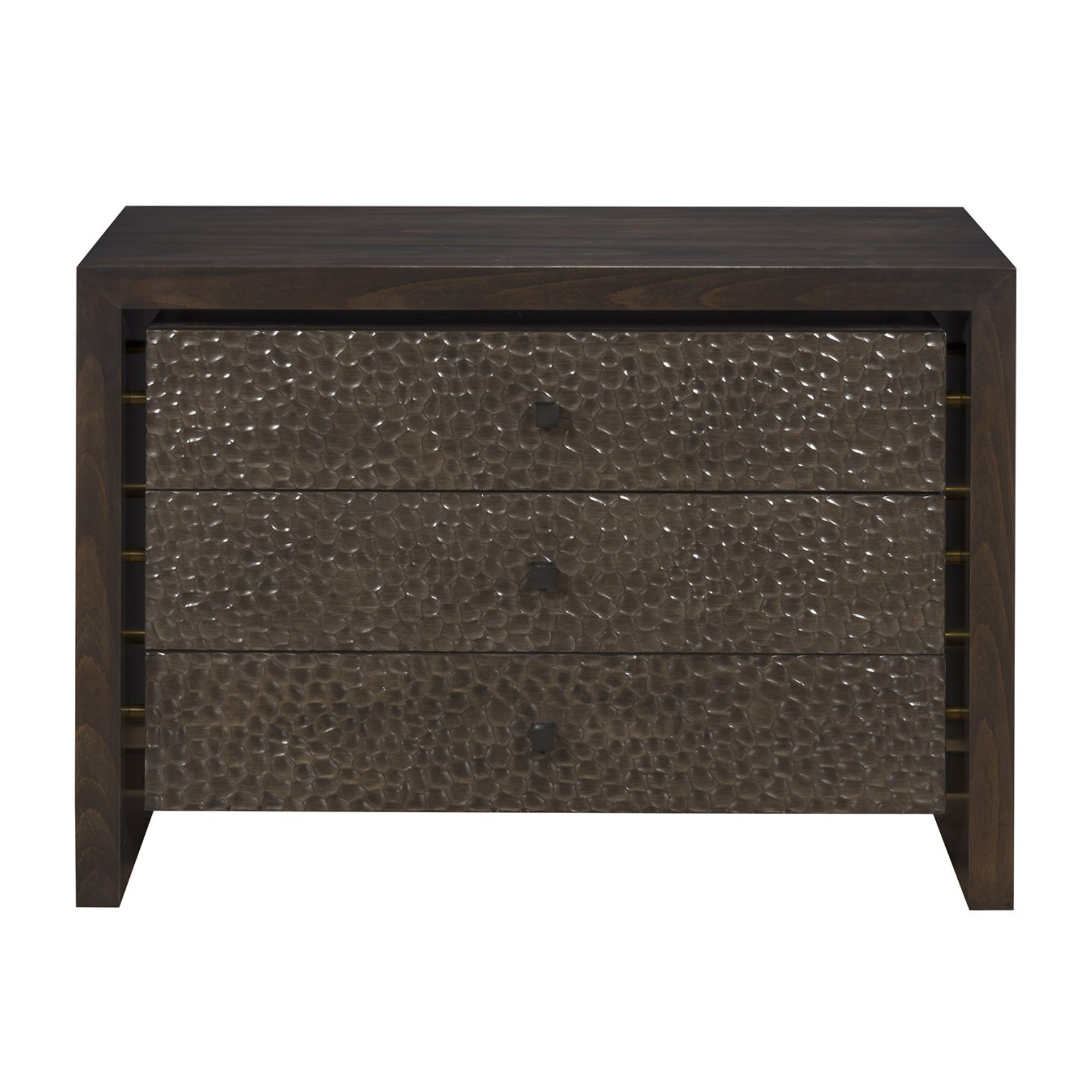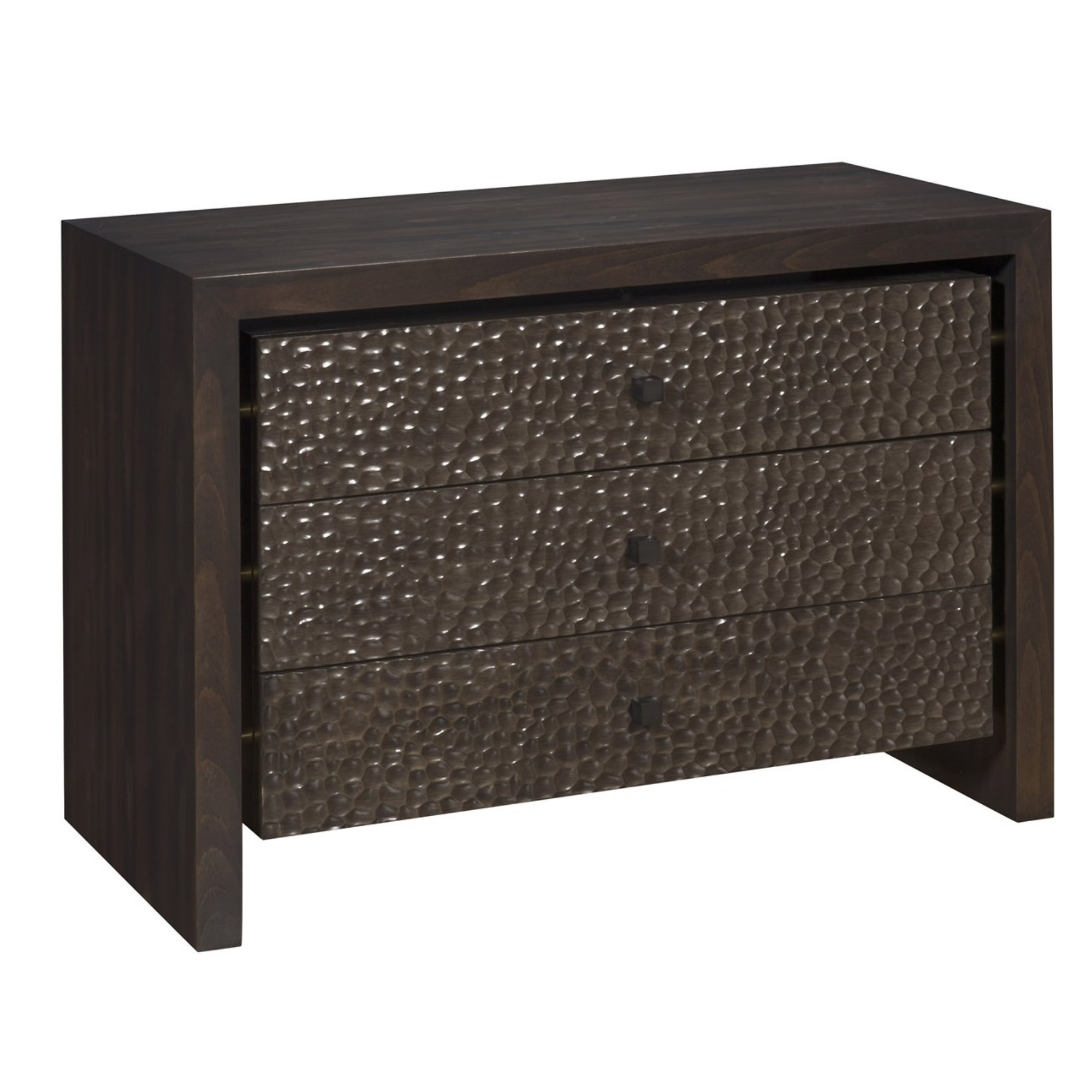 Finish Options Available. Three Drawers, Metal Spacer That Seperates Inner Box From Outer Shell. As Shown in: Finish – Amarone. Premium Carved Face (upcharge), Namaste Pulls in Antique Bronze, Metal Spacers in Antique Bronze..