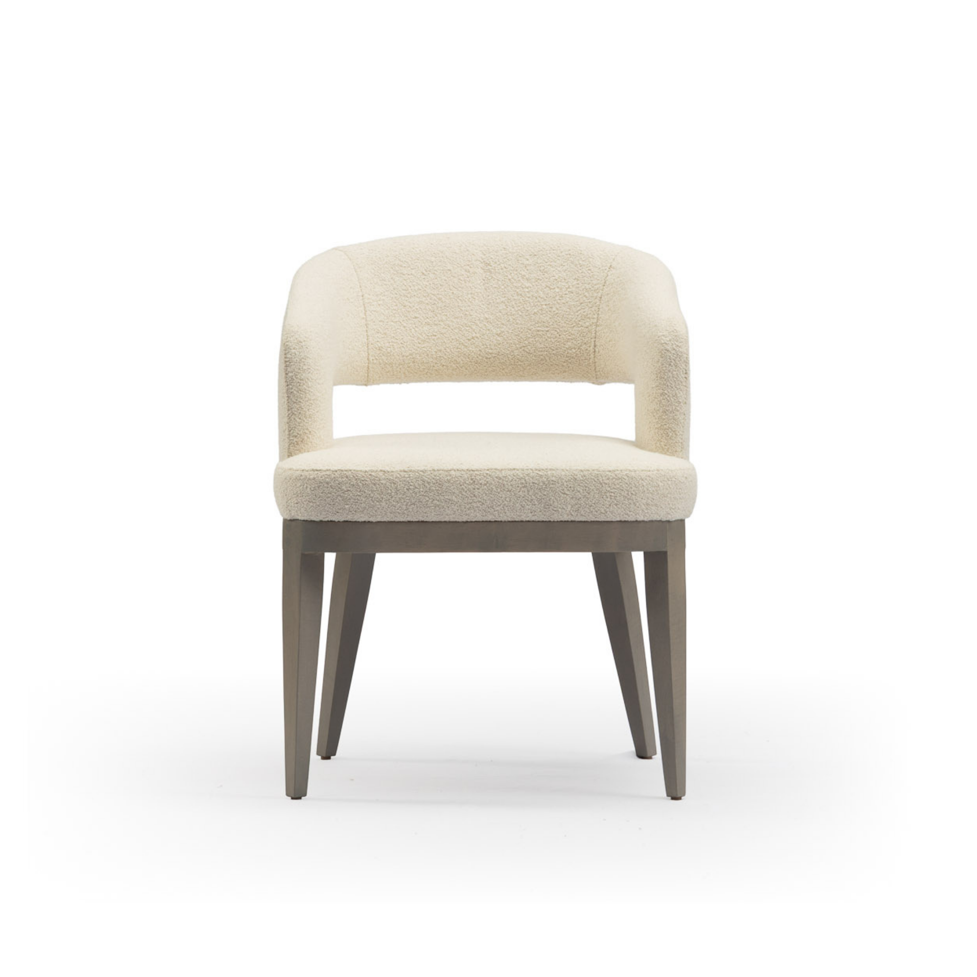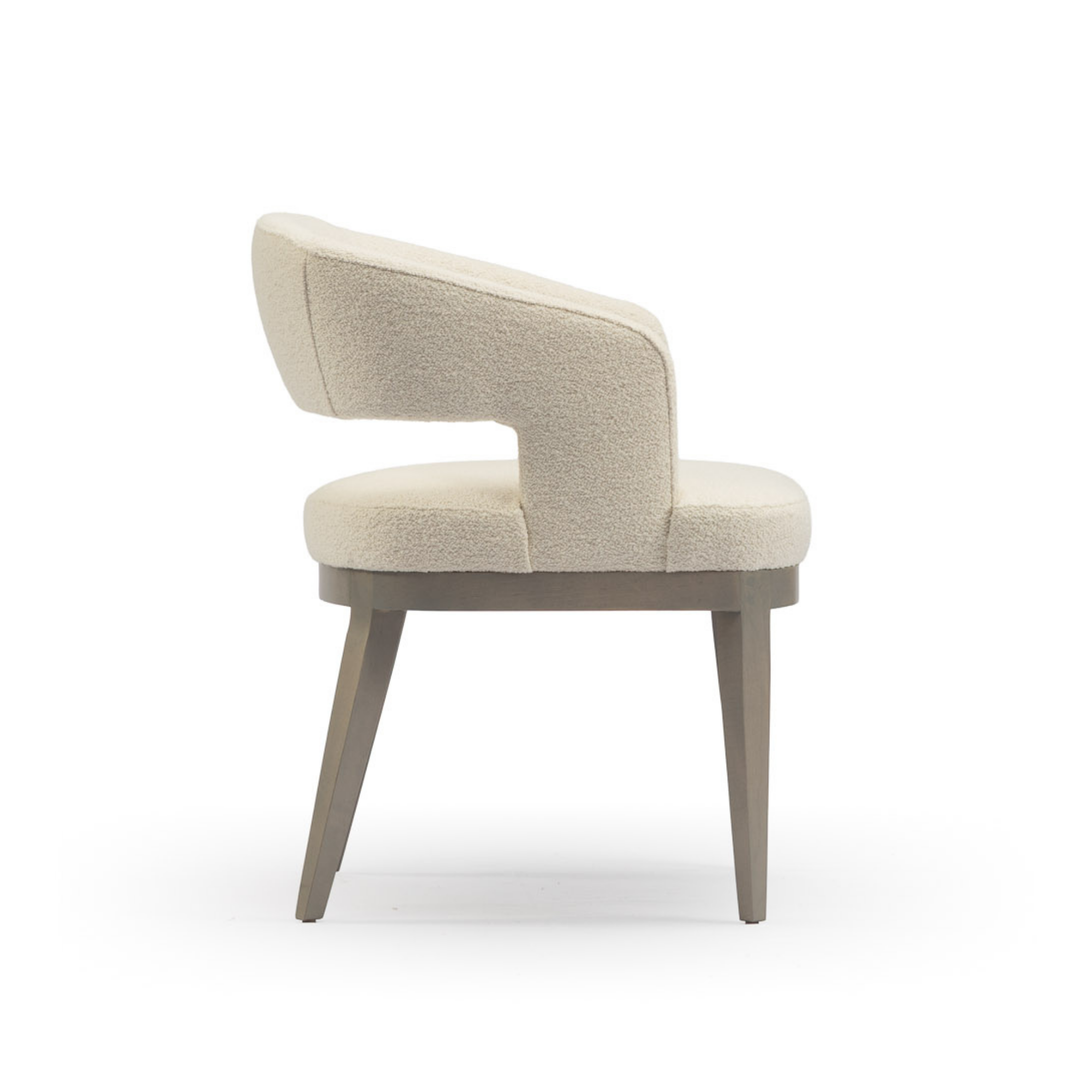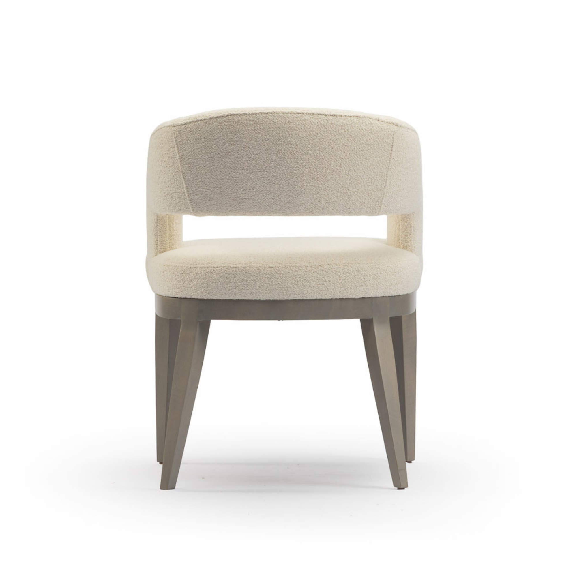 The Hunt dining chair exemplifies elegant transitional design, blending classic charm with modern simplicity. It features a rounded, curved back that provides both comfort and visual softness, creating an inviting seating experience. The sleek wood base adds warmth and natural texture, contrasting beautifully with the upholstery. Perfect for a variety of dining styles, Hunt seamlessly integrates into both traditional and contemporary settings. Its balanced proportions and refined contours make it a versatile addition to any dining space. Whether for casual family meals or more formal gatherings, the Hunt chair offers enduring style and comfort, redefining transitional elegance with timeless appeal.