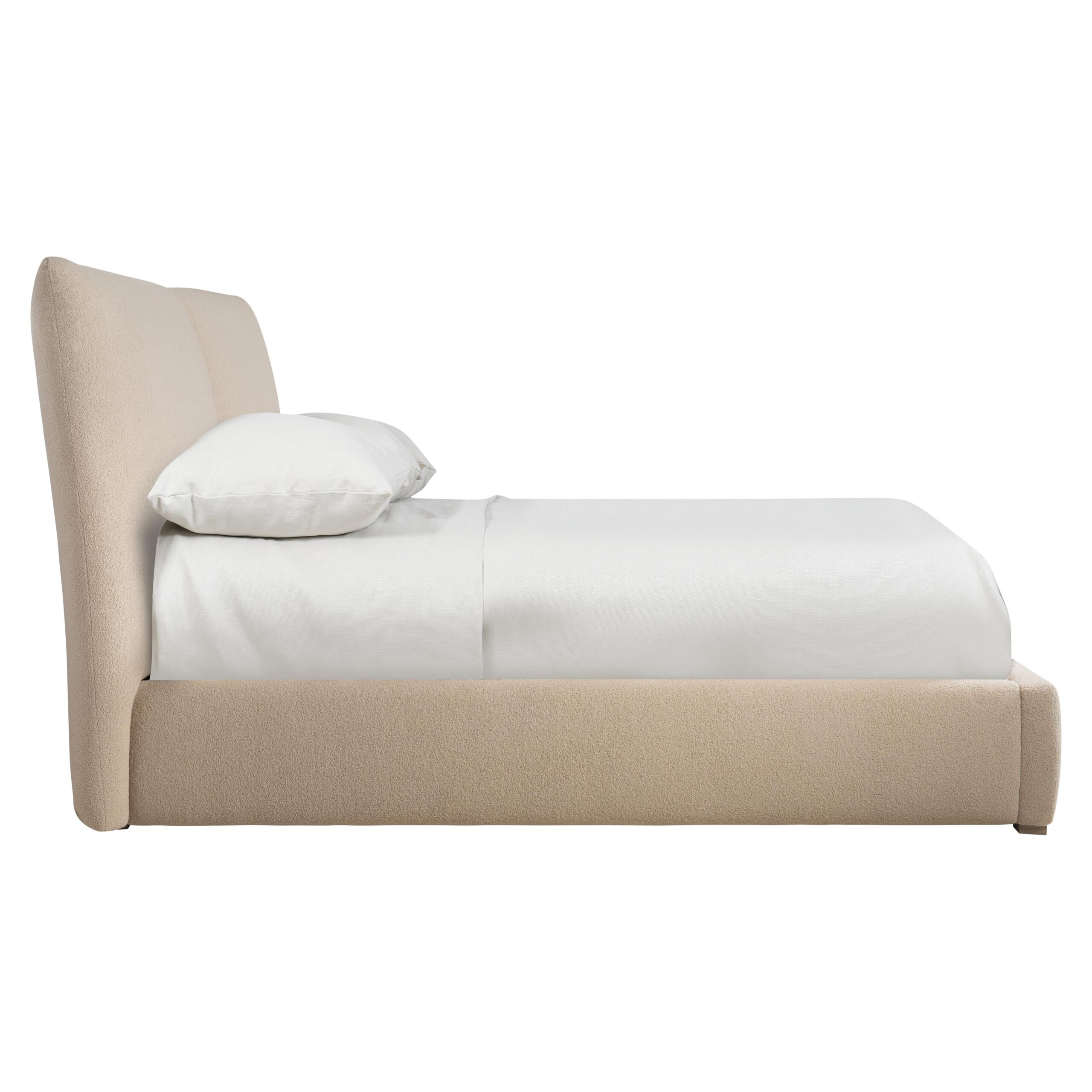 Kalo Panel Bed King features:Fully upholstered footboard and side rails and pillow-style headboard with plush knife edge supported by four ash wood feet in Sandbar finish