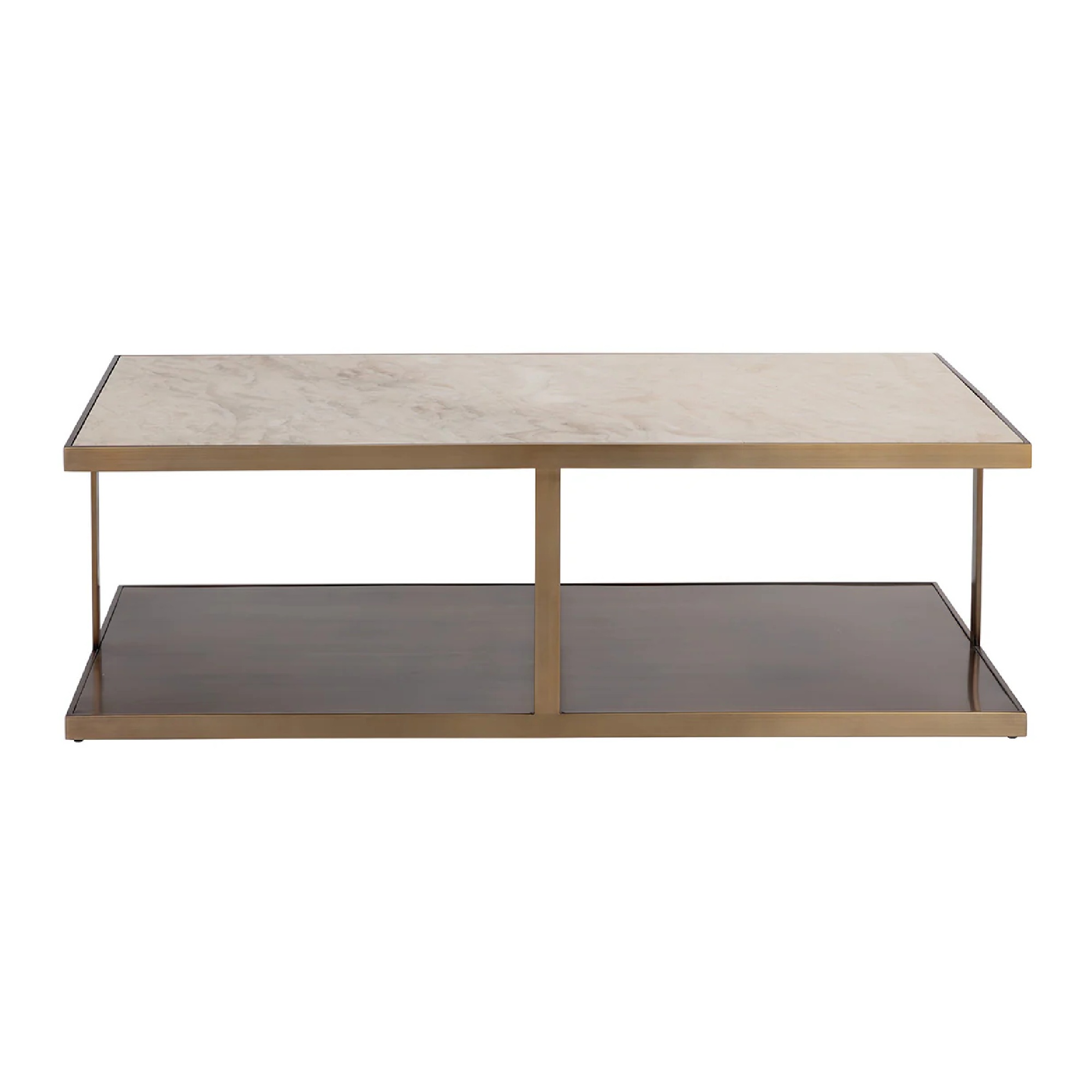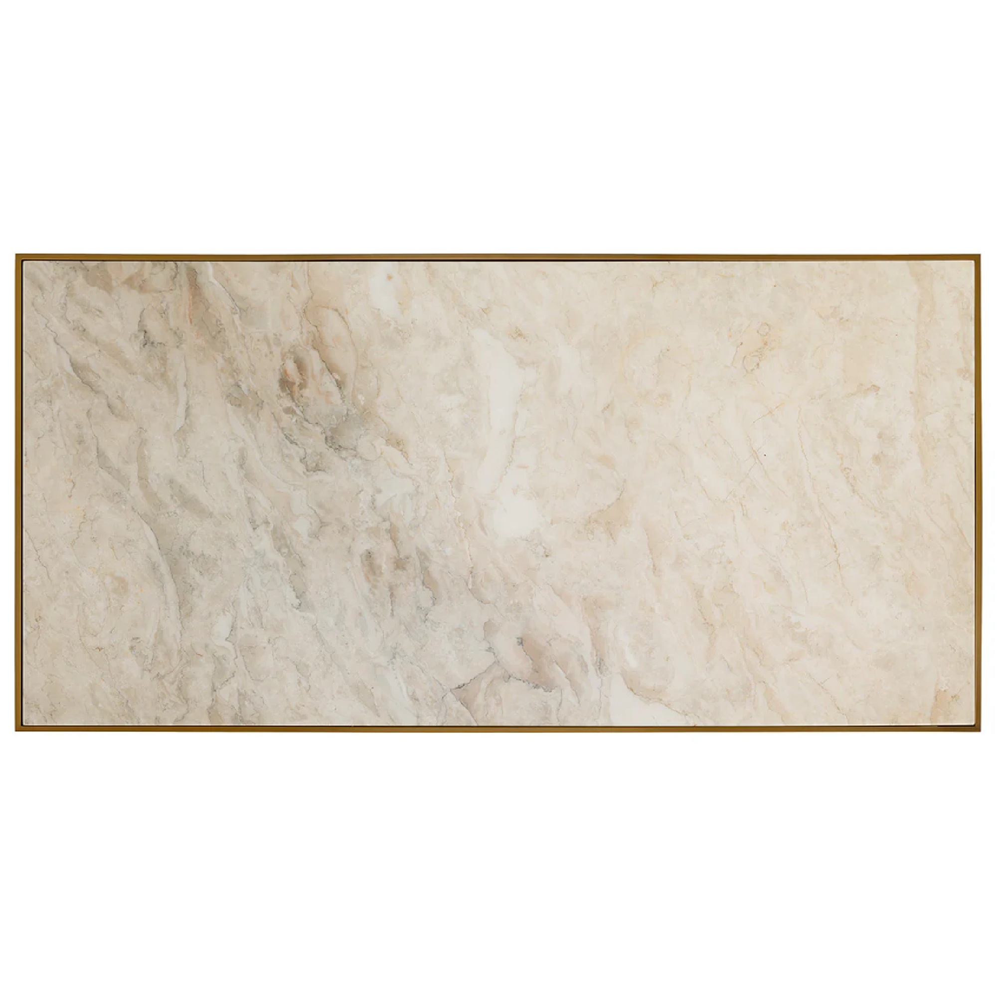 Warm tones and sleek modern lines define the Kamali Cocktail Table. The beige rectangular marble tabletop is beautifully outlined by an antique gold powder coated stainless steel base. It’s the perfect addition to any living space. Side table version also available. As marble is a natural material, unique veining, pitting, fissures, micro-cracks and colour variations are all characteristics that add to the uniqueness and beauty of each piece.