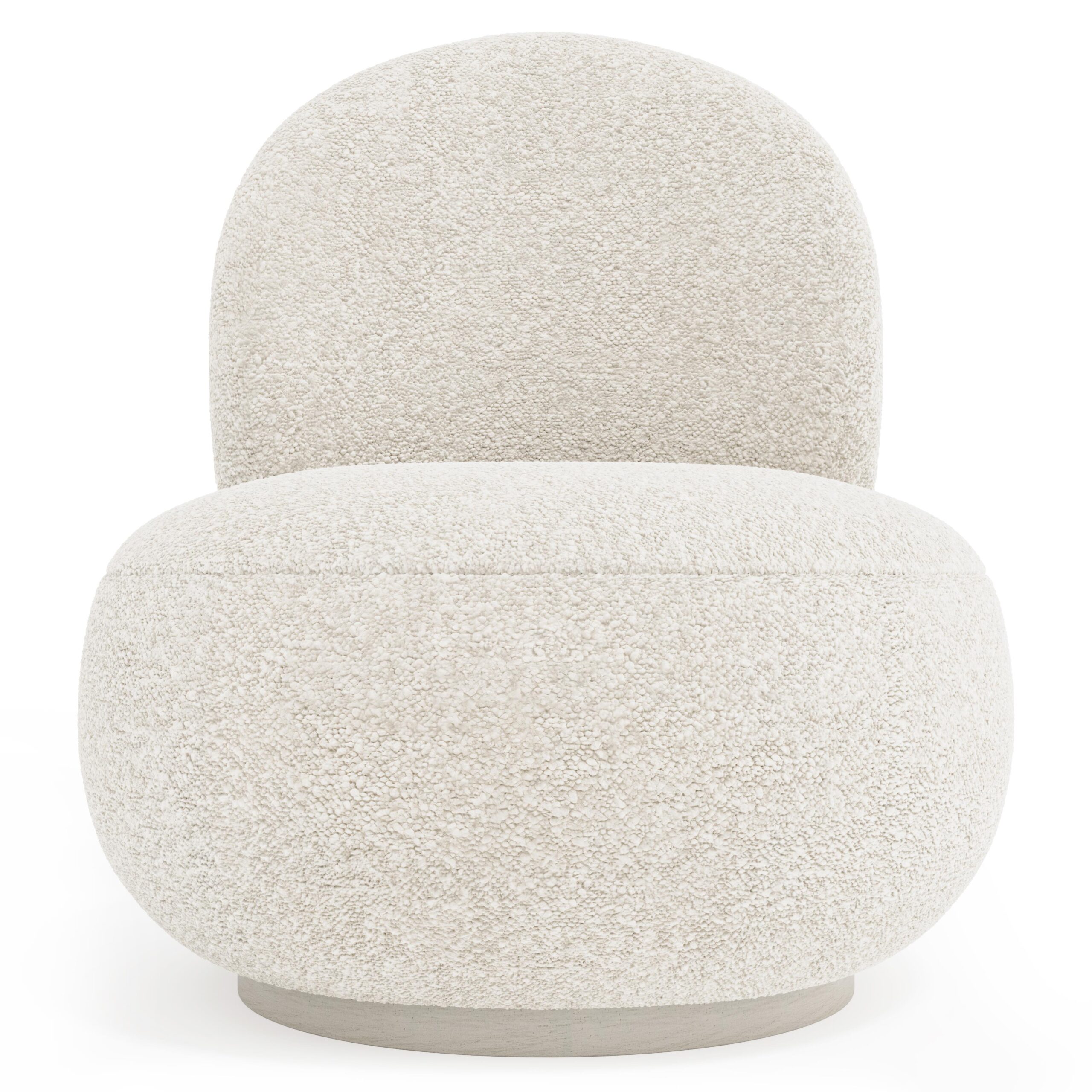 The ultimate in simple sophistication and comfort, the Lulu swivel chair showcases a beautiful armless silhouette. Set on a smooth swivel base, the Lulu is a marvelous addition to a living room or bedroom. Its plush form and full shape offer a fabulous seat for conversation or relaxation.