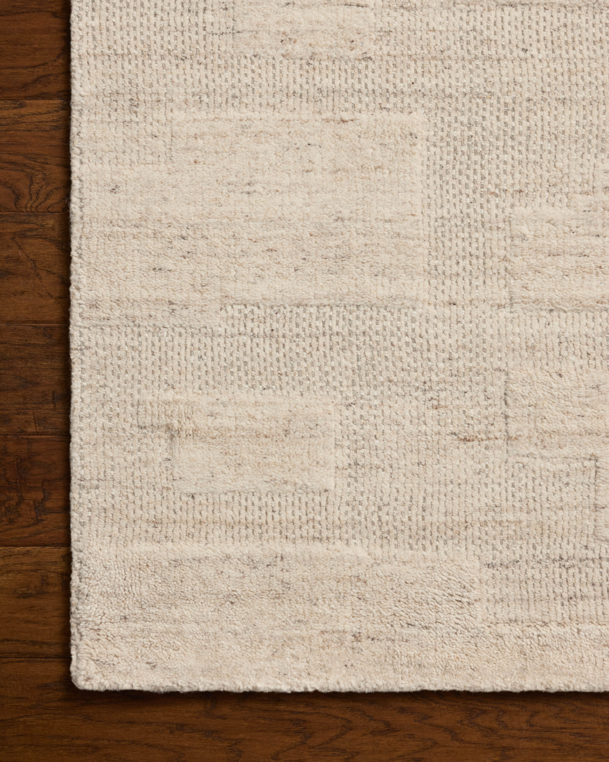 The Maren Collection is a unique handmade area rug made with a new technique that creates a dotted texture, almost like fine embroidery, but with a substantial hand-loomed feel. The pile reveals modern geometric patterns with organic shapes and natural softness, available in light, easygoing neutrals. Maren is hand-loomed of wool, cotton, and other fibers in India and GoodWeave-certified, ensuring our commitment to ethical production and the support of weavers’ communities.