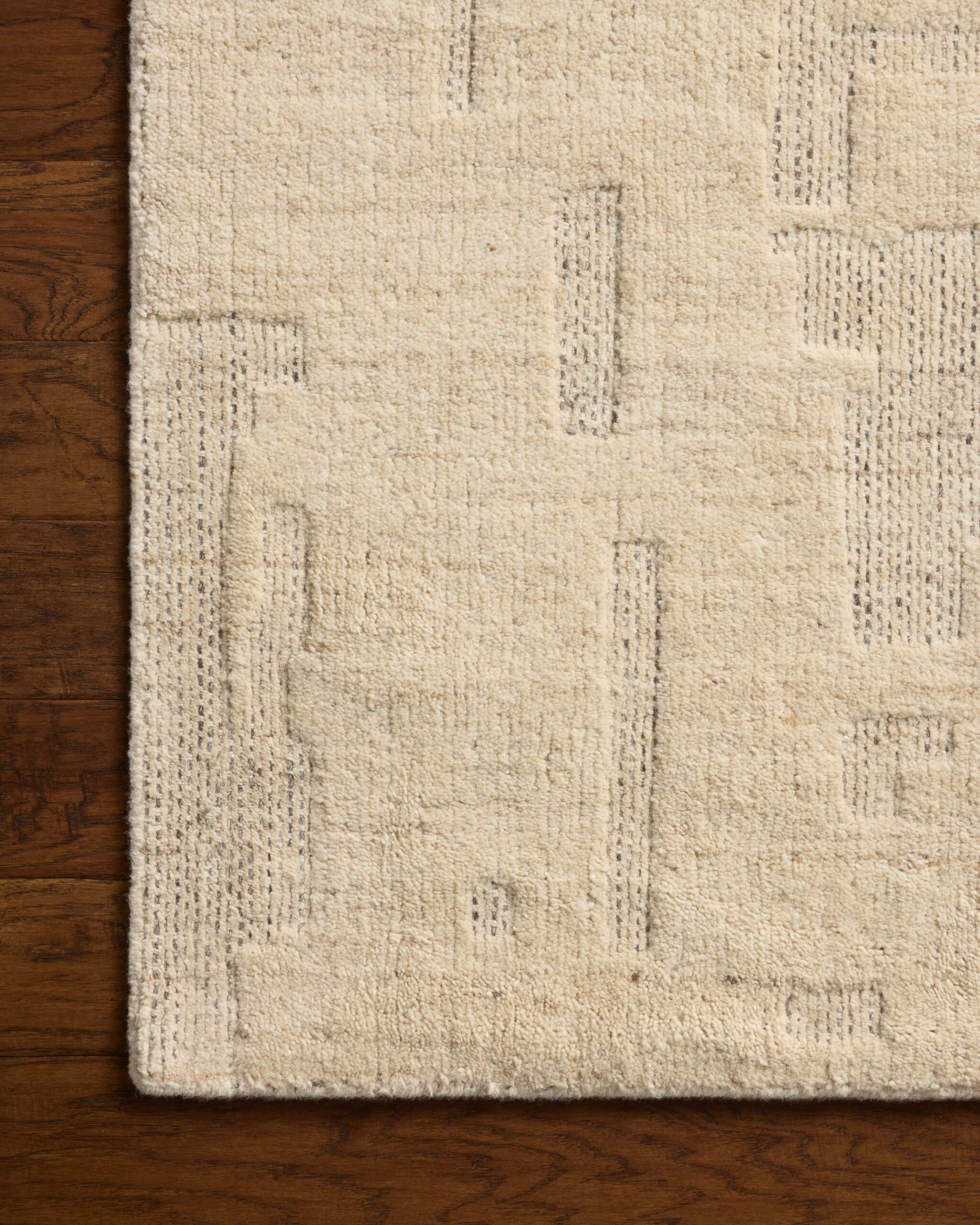The Maren Collection is a unique handmade area rug made with a new technique that creates a dotted texture, almost like fine embroidery, but with a substantial hand-loomed feel. The pile reveals modern geometric patterns with organic shapes and natural softness, available in light, easygoing neutrals. Maren is hand-loomed of wool, cotton, and other fibers in India and GoodWeave-certified, ensuring our commitment to ethical production and the support of weavers’ communities.