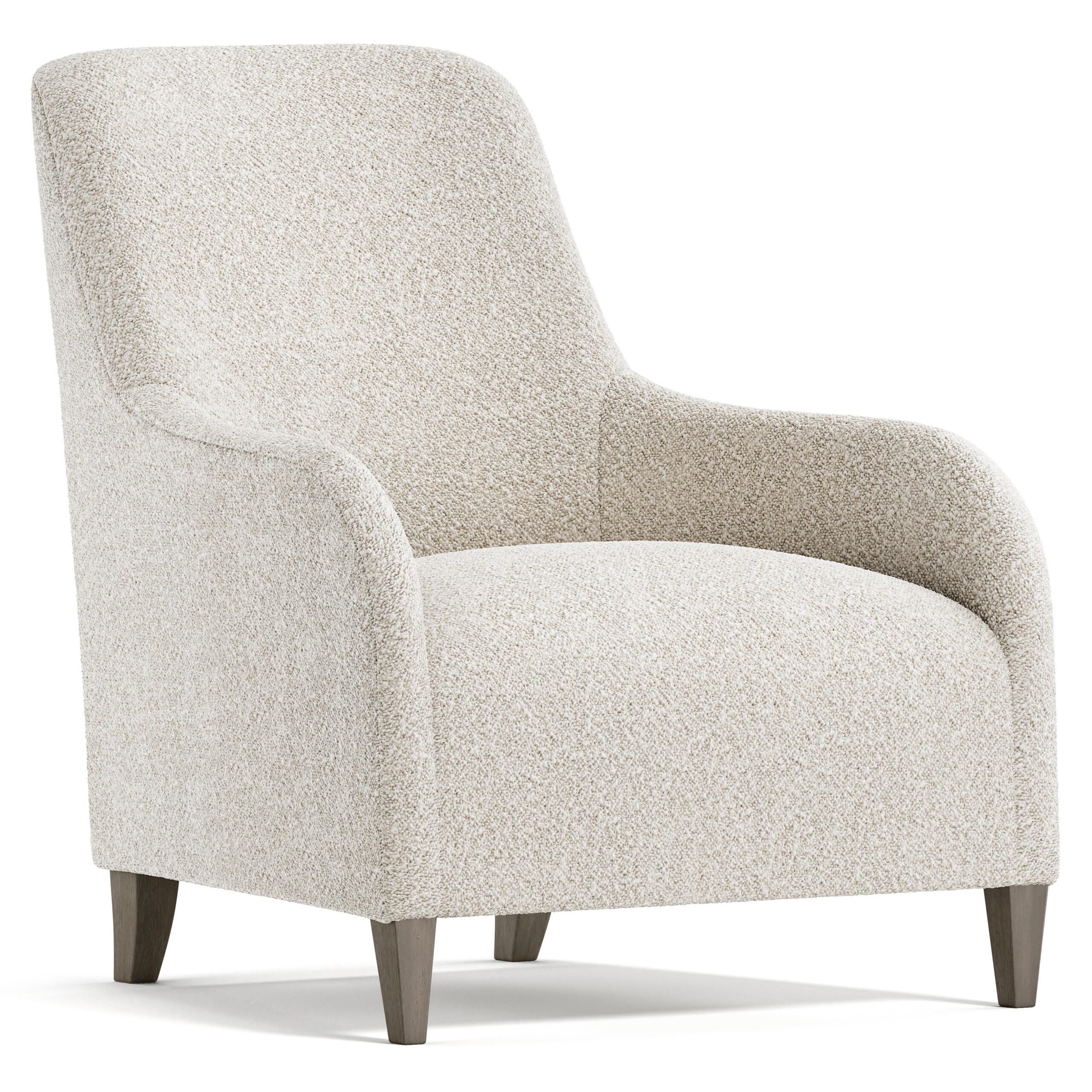 A simple, modern aesthetic defines the Naomi chair. The fluid lines of its sloped arms form an elegant silhouette, enhanced by saber back legs. With a tight seat and a subtly pitched back, this contemporary chair offers comfort and style.