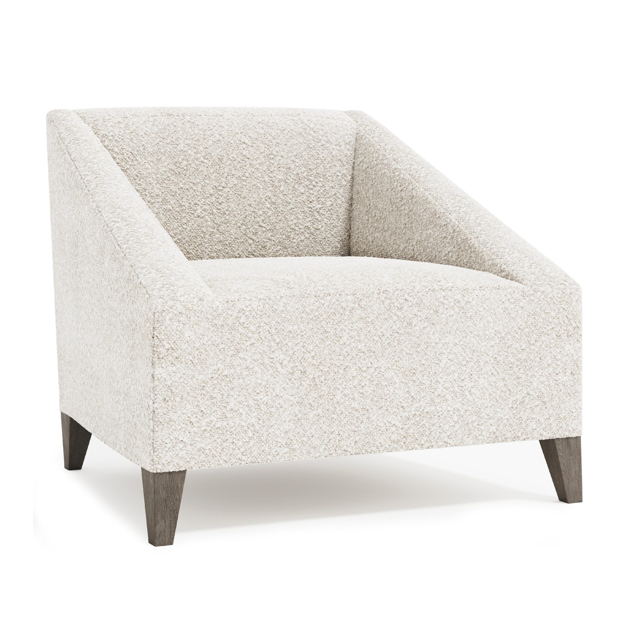 Featuring clean lines and distinct angles, the Nash chair delivers architectural structure and modern appeal. Angled track arms and tapered feet create a striking silhouette. Capturing attention from all directions, this masterful piece sets a sophisticated tone in the luxe living space.