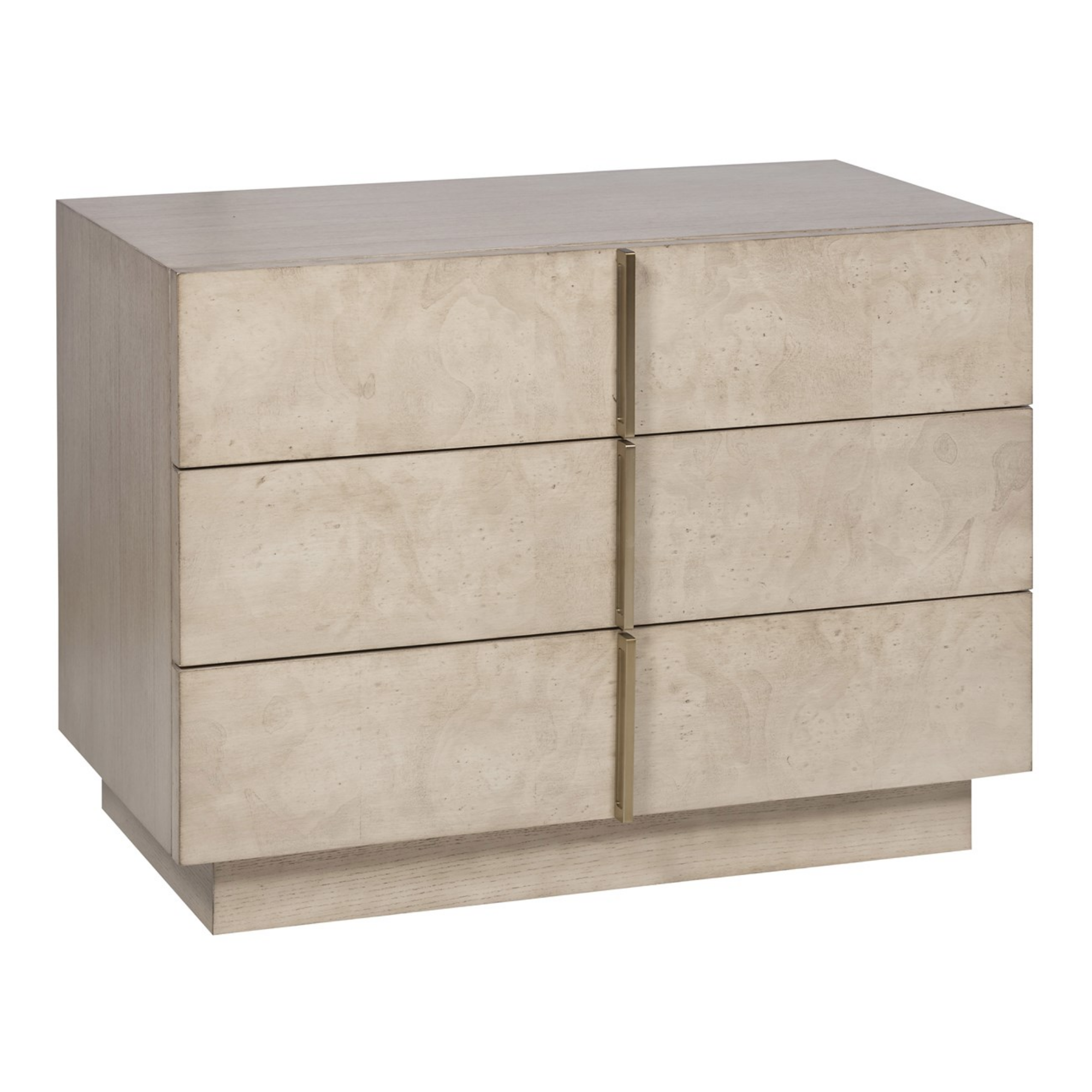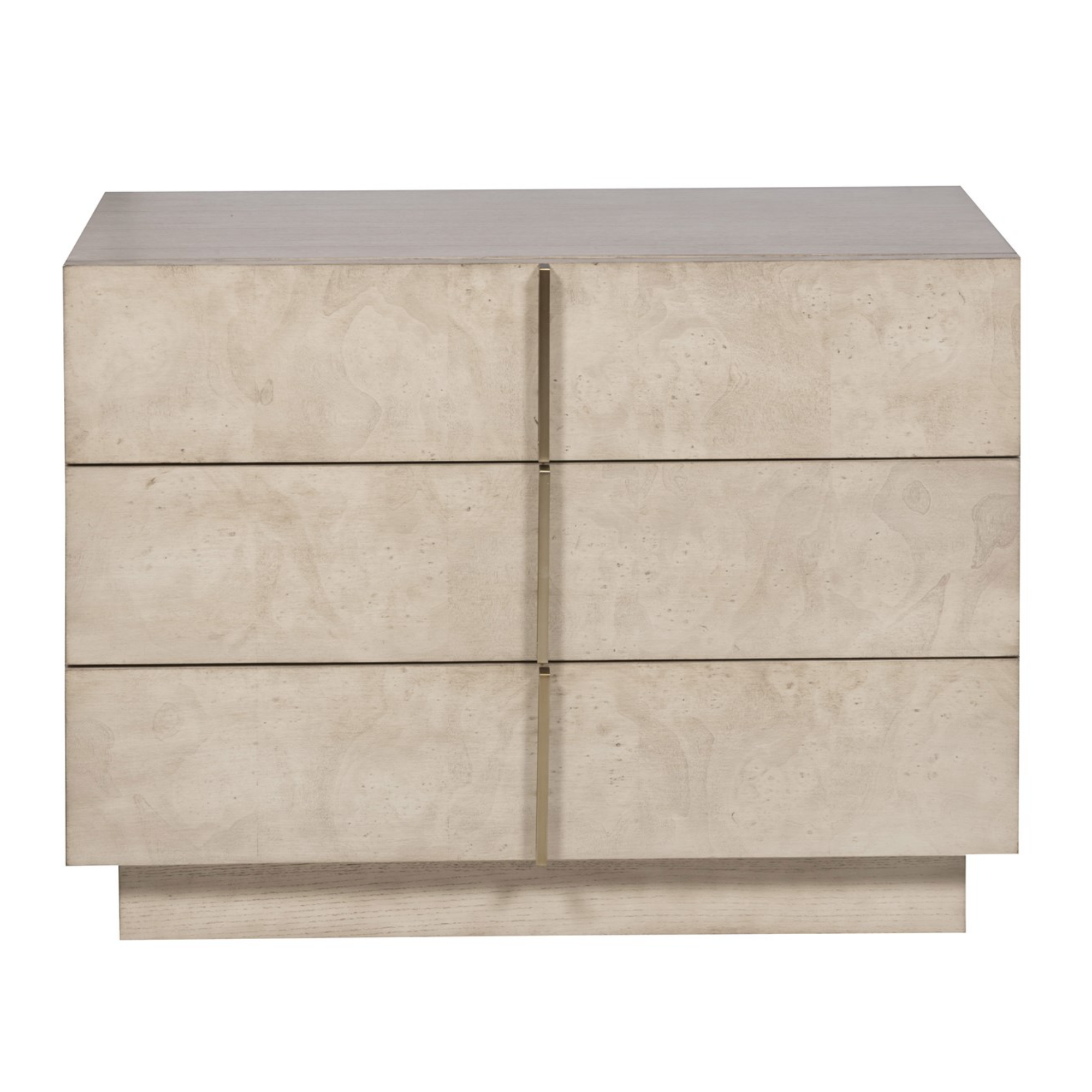 Finish options available.Three Drawers, Random Match Mapa Burl Veneer on Fronts, Satin Brass Hardware. As Shown in: Finish – Linen.