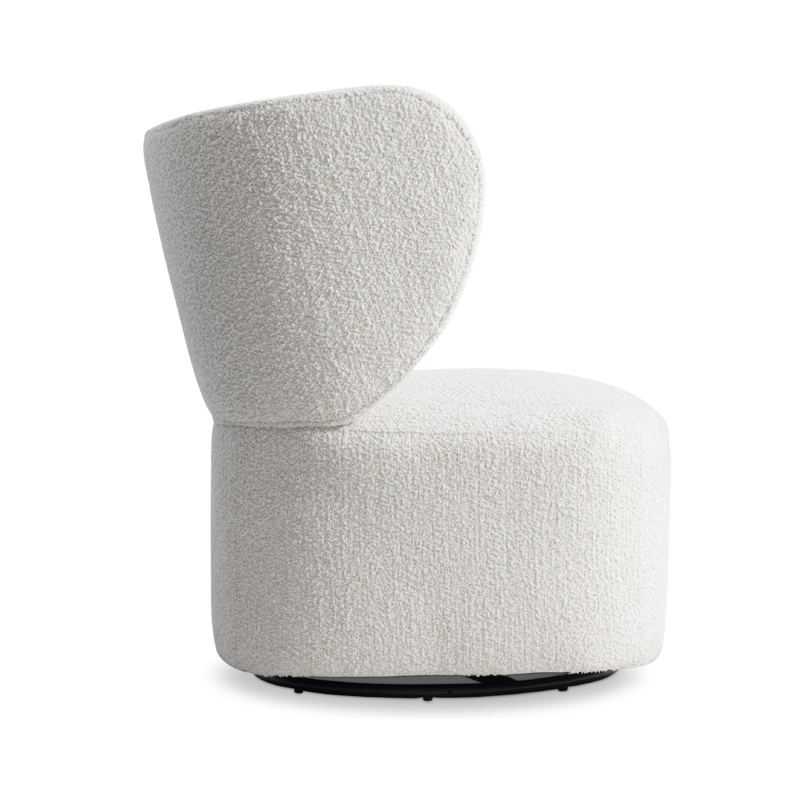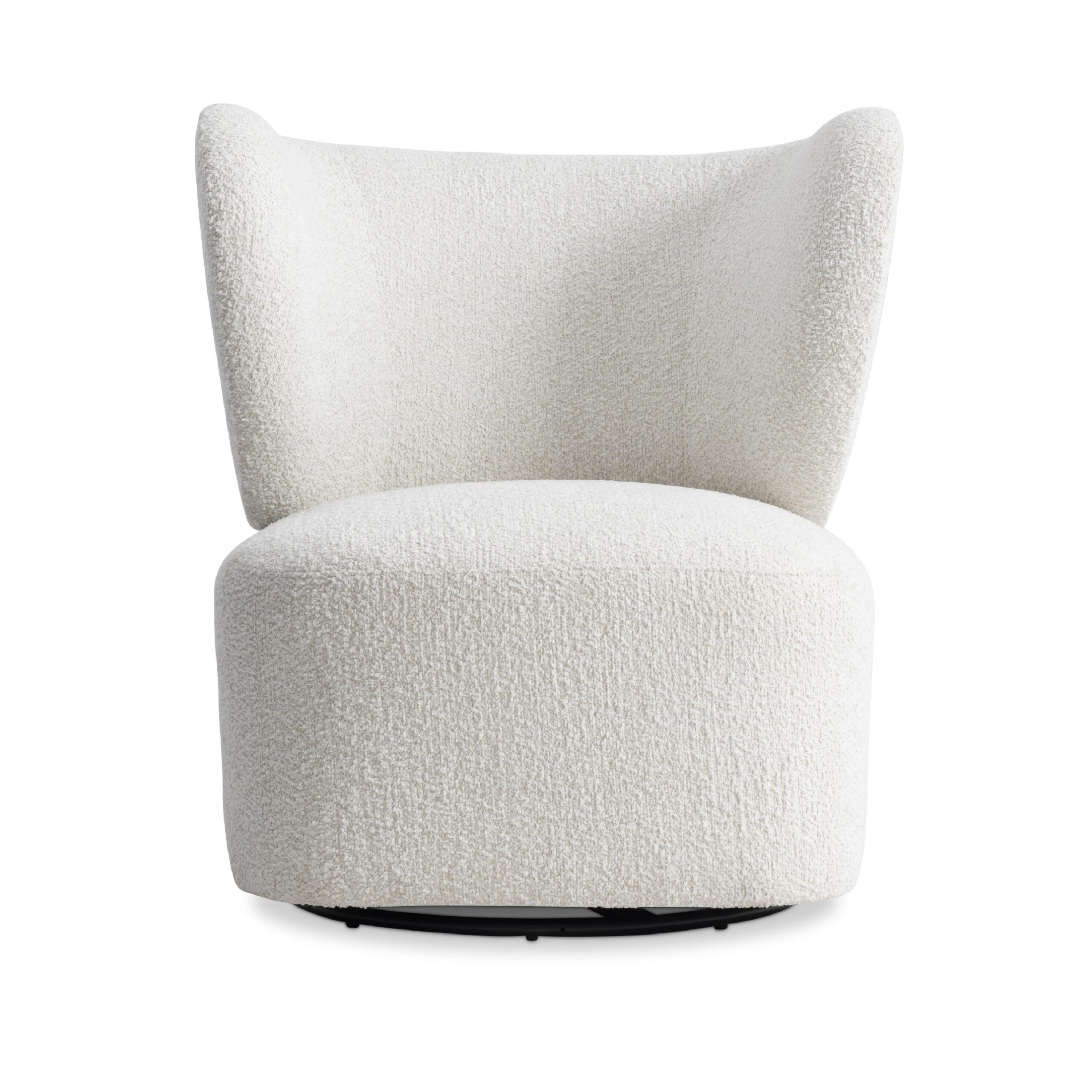A contemporary take on a classic wingback, the Oliver swivel chair has a graceful round form paired with exquisite upholstery. The sweeping curves create a chic silhouette for modern living. A smooth swivel mechanism allows for a 360-degree view.