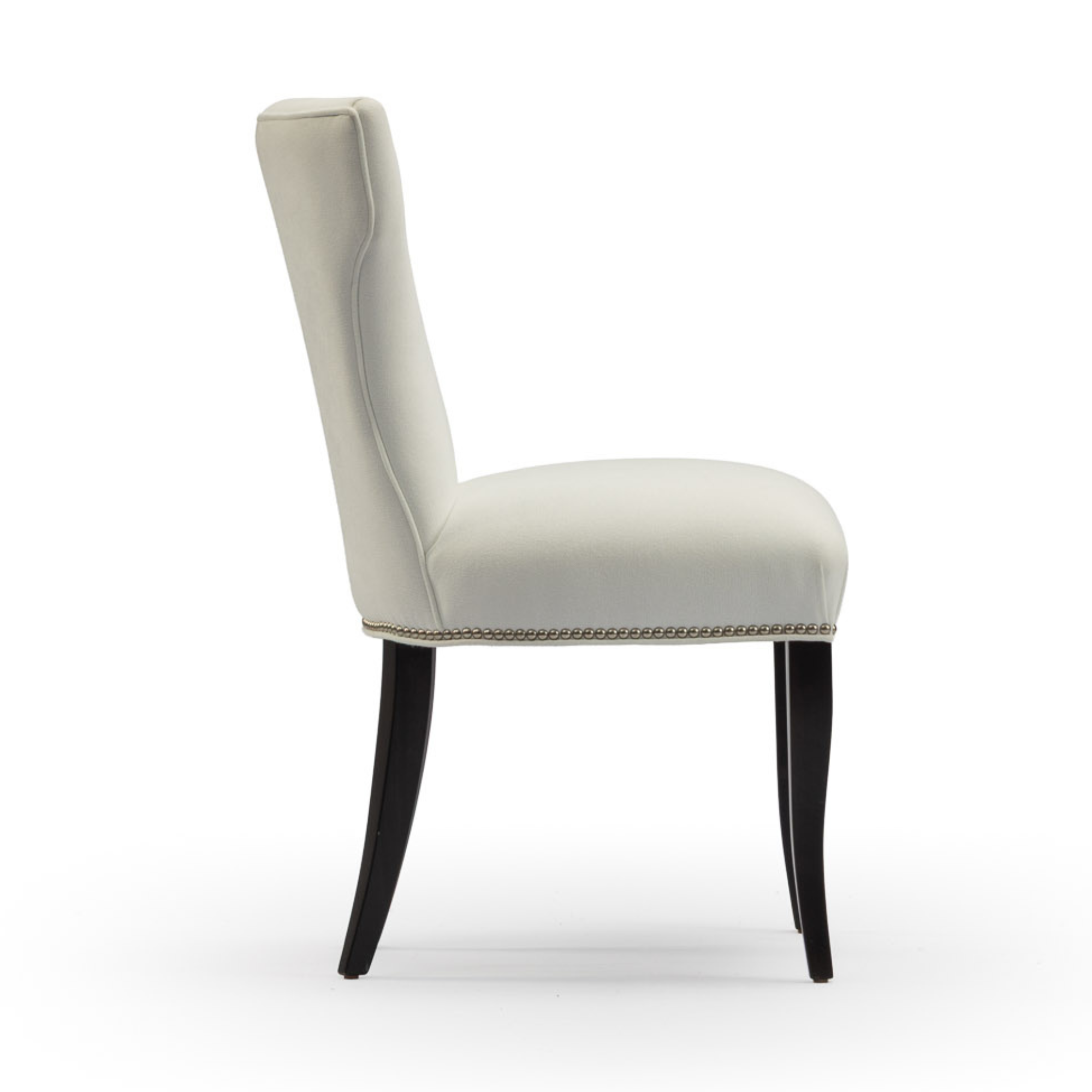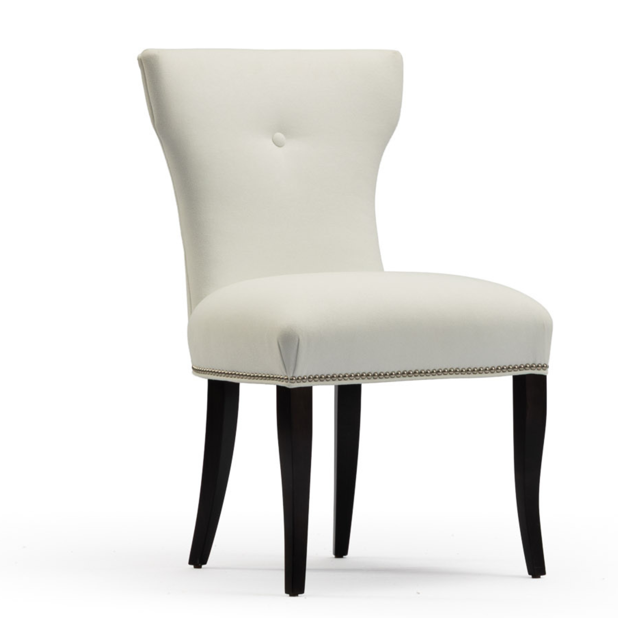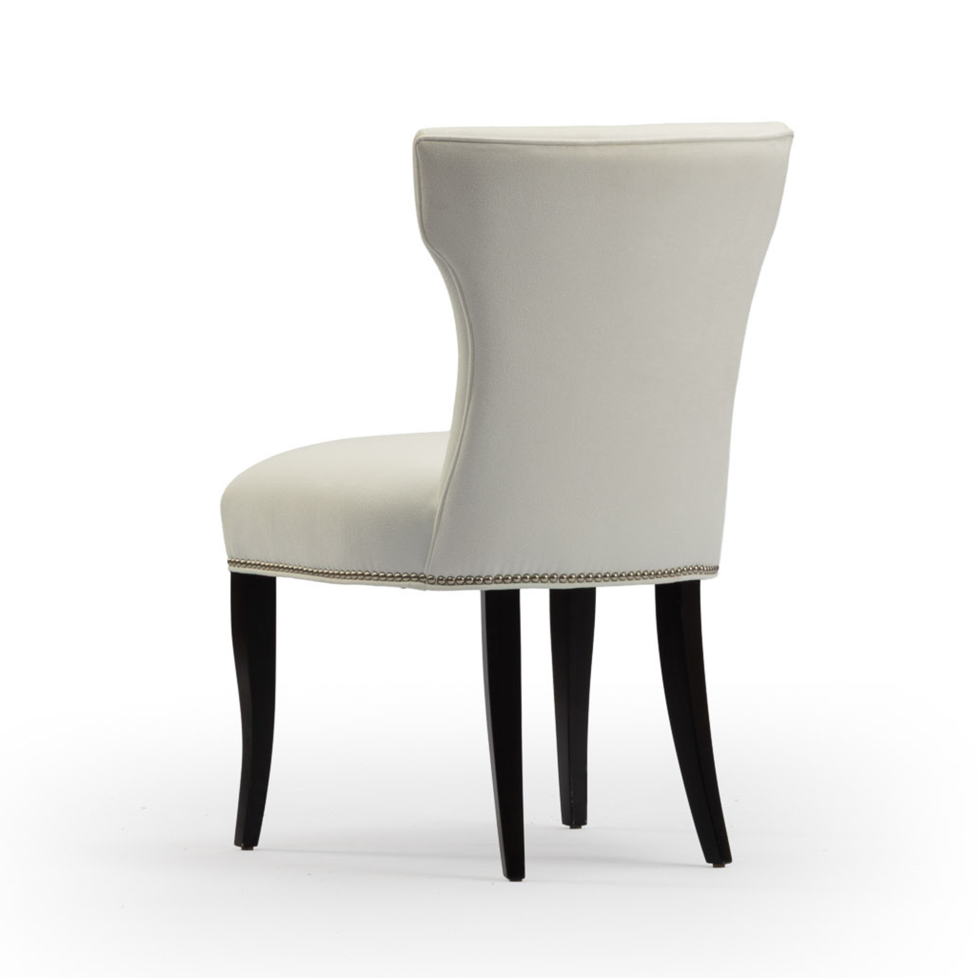 With its nail-trimmed detail and solid hardwood frame, the Paula Dining Chair brings sophistication to any dining space. Choose from multiple fabrics, leathers, wood colors, and nail finishes to make this chair uniquely yours.